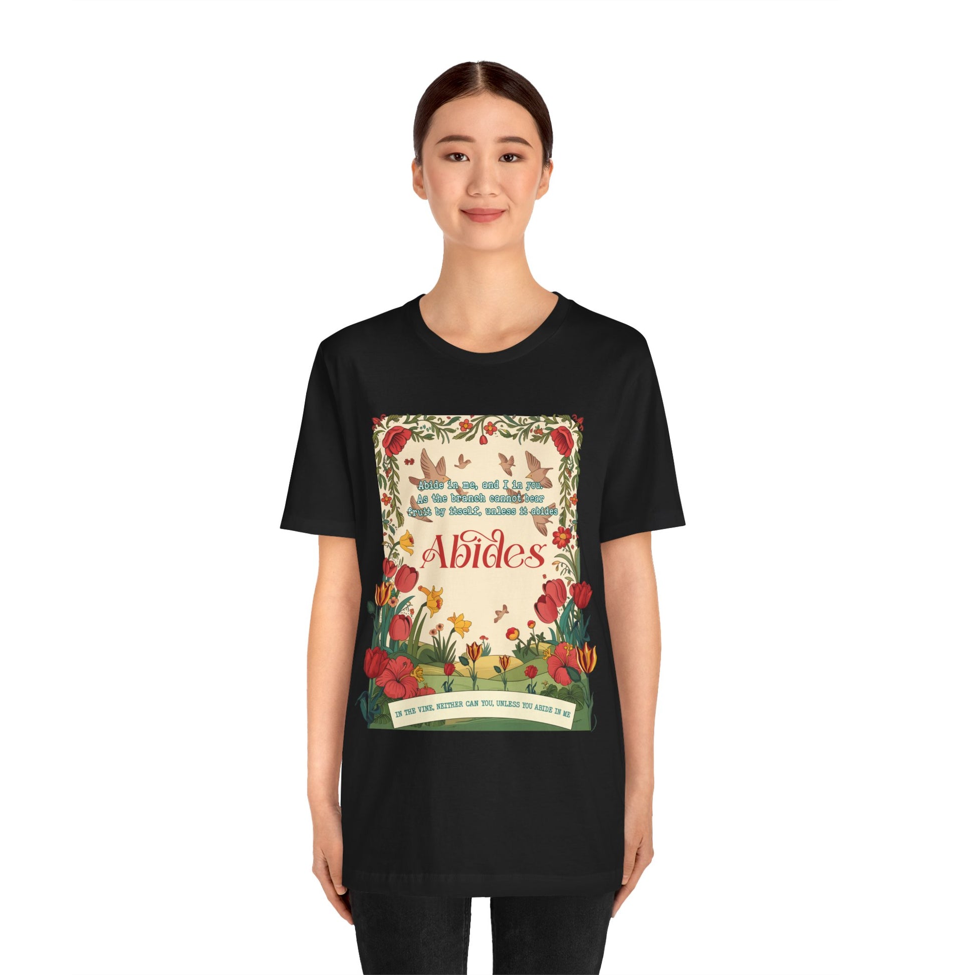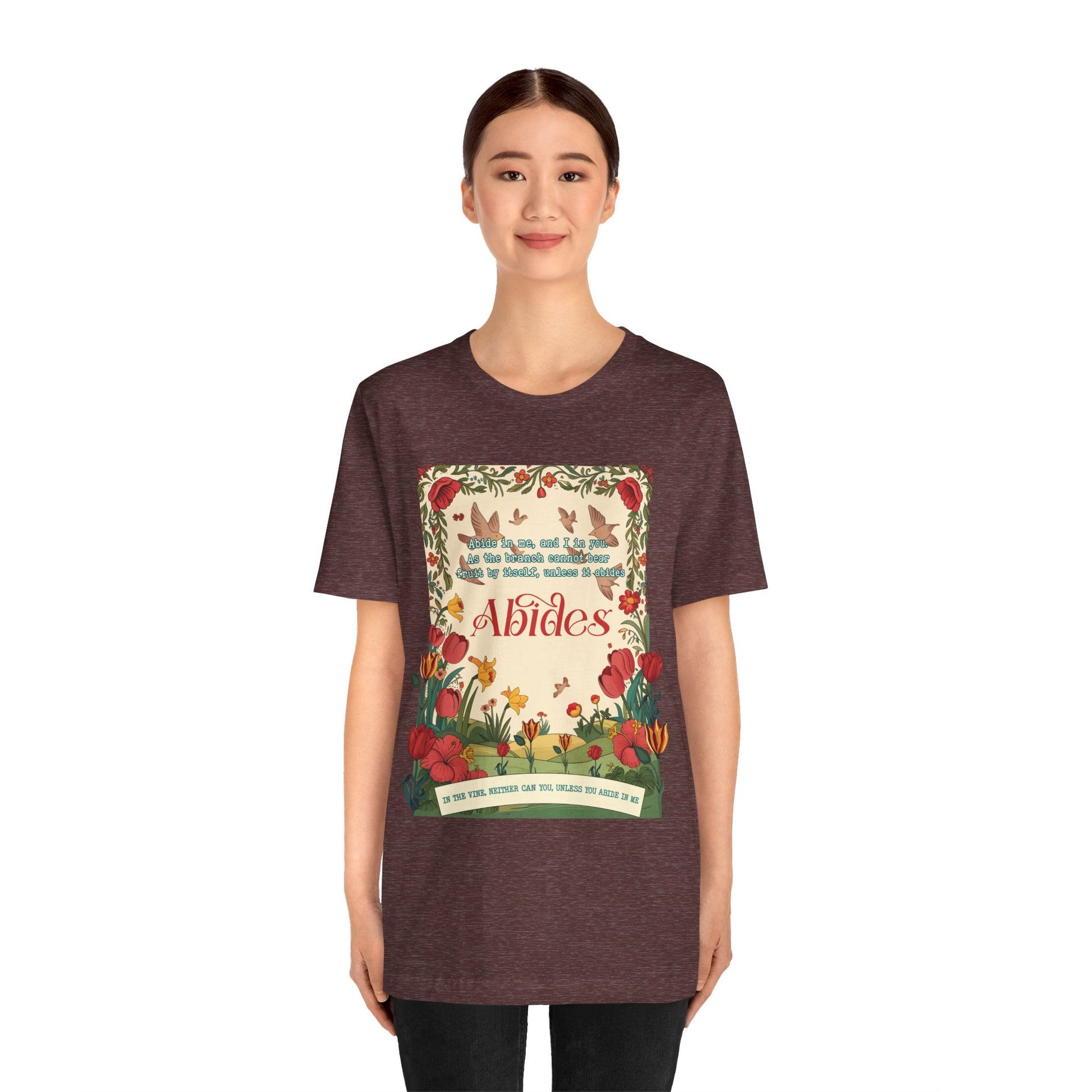 Abide in Me Shirt – Christian John 15:4 Bible Verse Floral Faith Graphic Tee