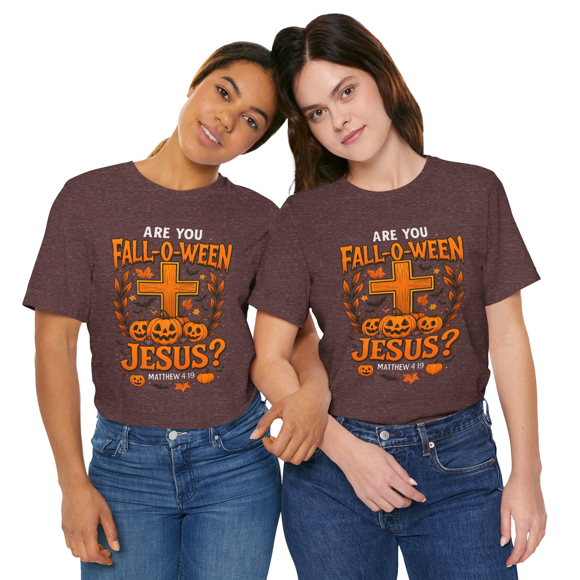 Celebrate autumn with faith and fun in our Are You Fall-O-Ween Shirt. Featuring a pumpkin and cross design with a Christian message, this Halloween tee is a lighthearted way to share Jesus during the spooky season.