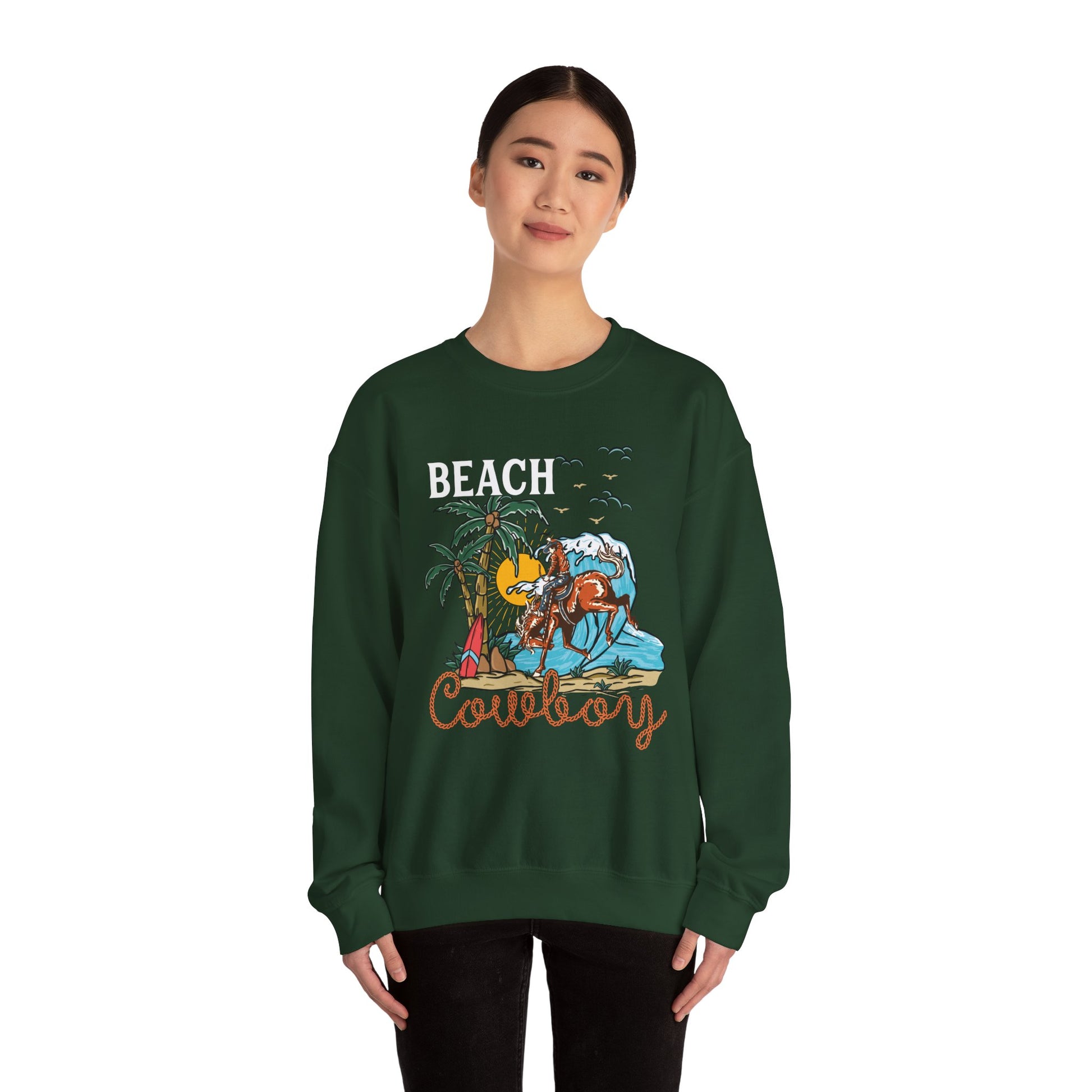 Bring coastal charm to your country style with the Beach Cowboy Tropical Sweatshirt. Featuring palm tree graphics with Western rodeo flair, this pullover is perfect for cowboys who love mixing beach vibes with Texas pride. Great for concerts, rodeos, vacations, or casual everyday wear.