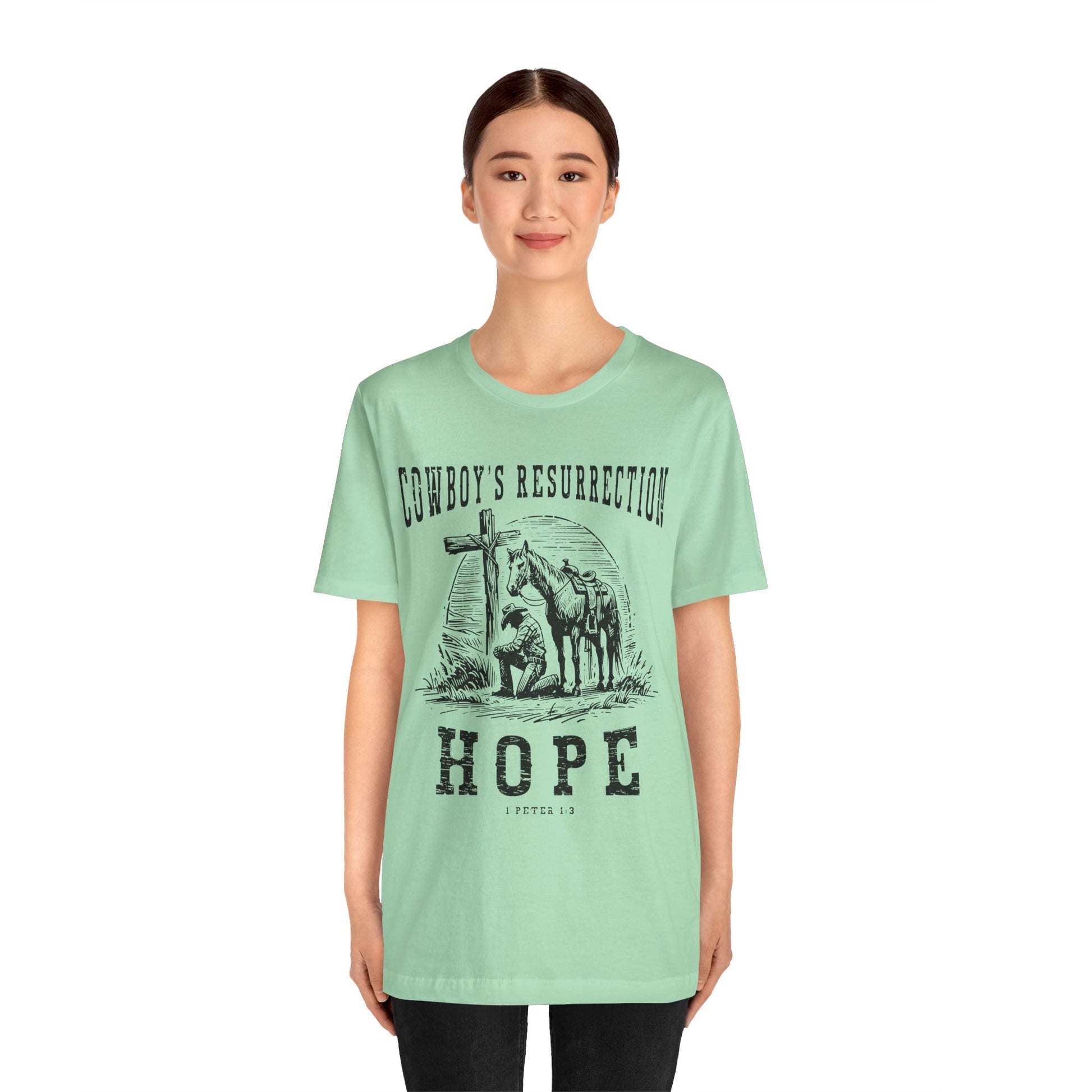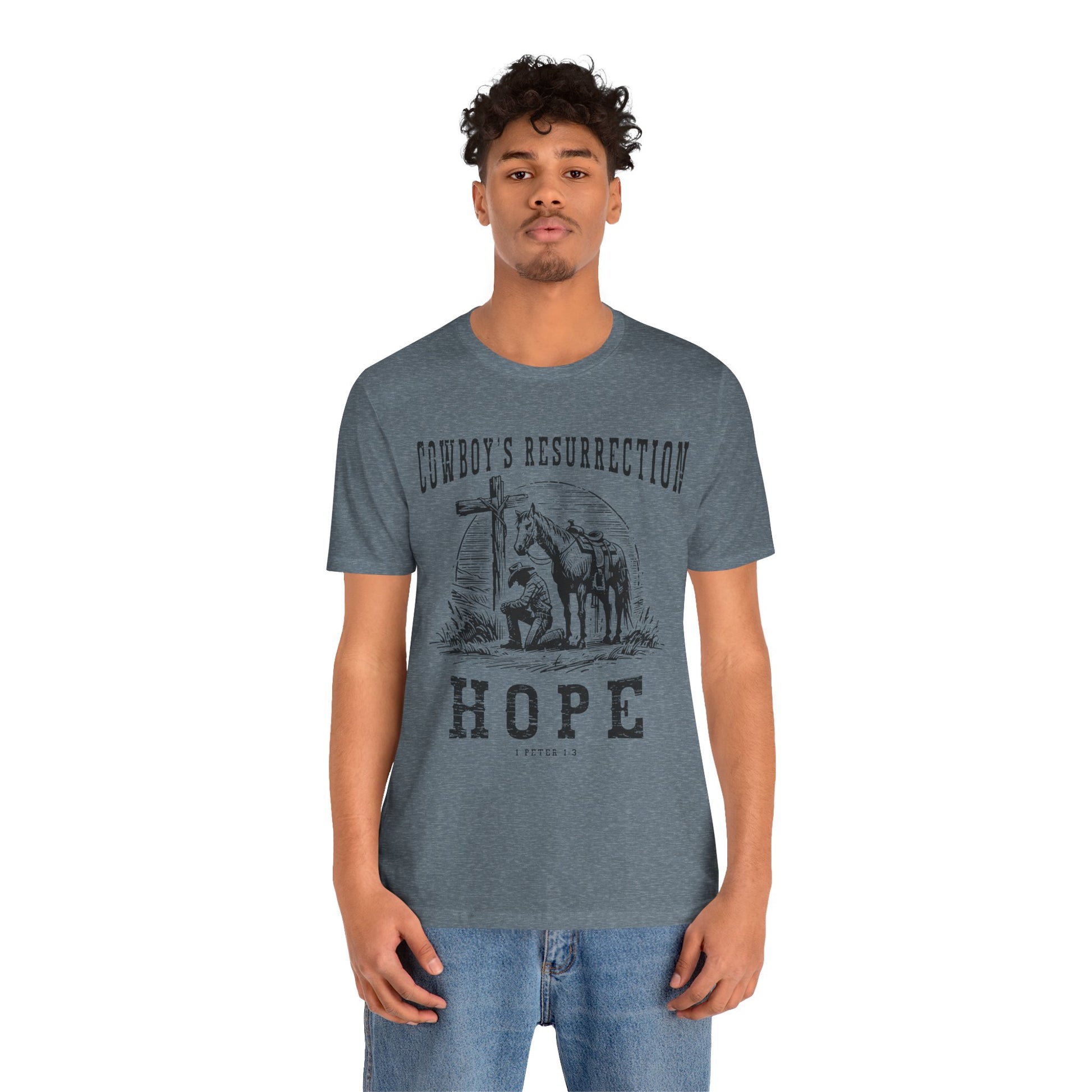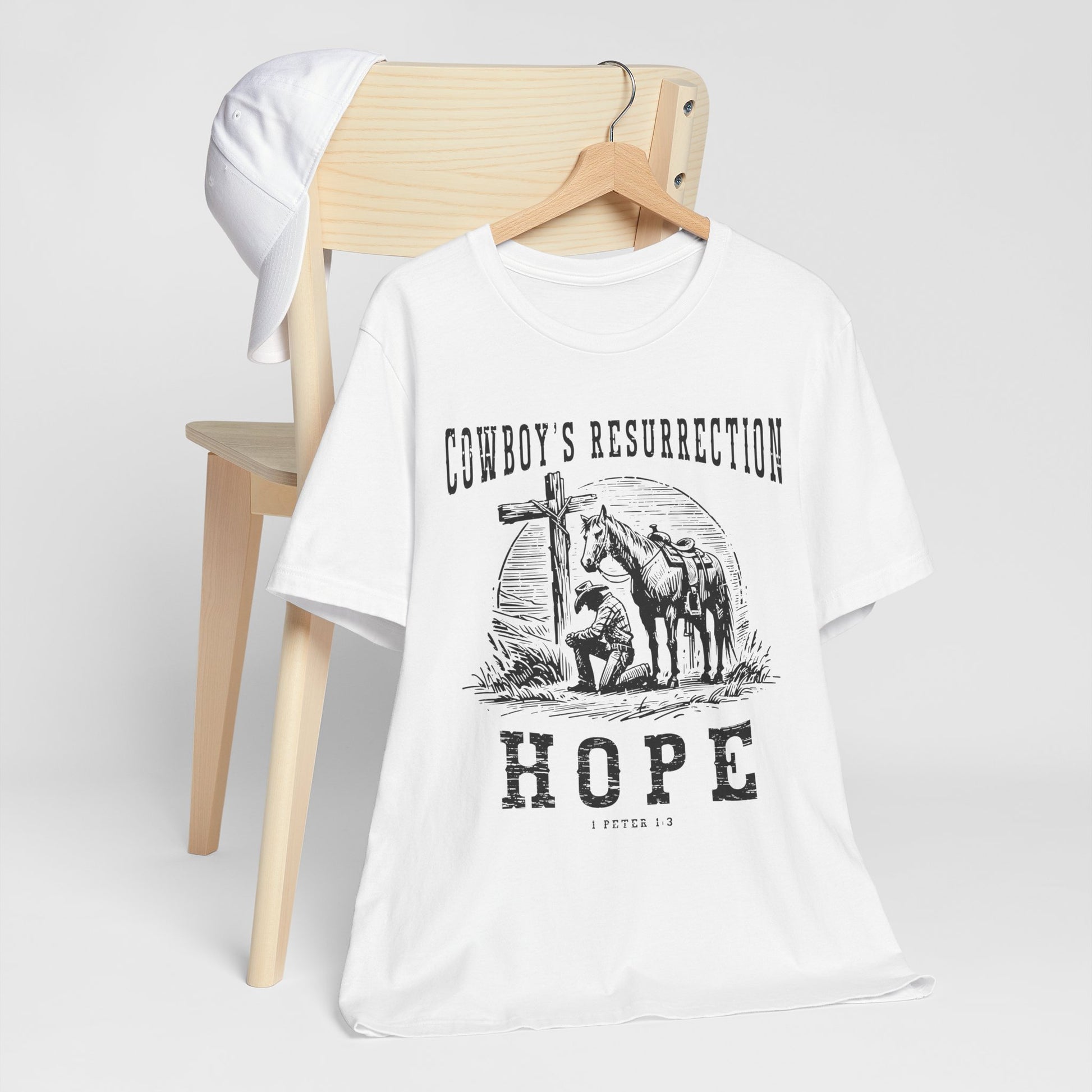 Cowboy’s Resurrection Hope Shirt – Christian Cross Western Rodeo Tee
