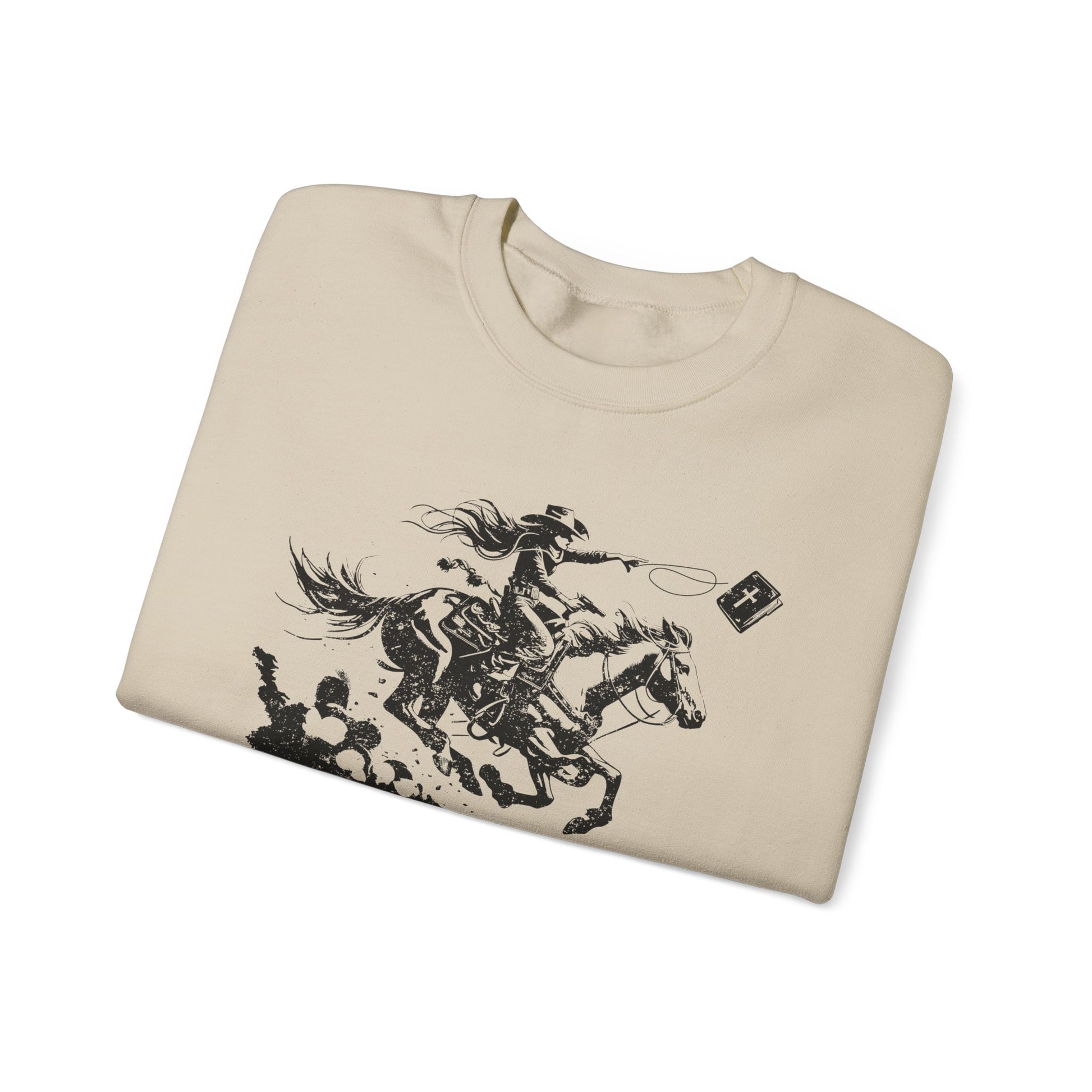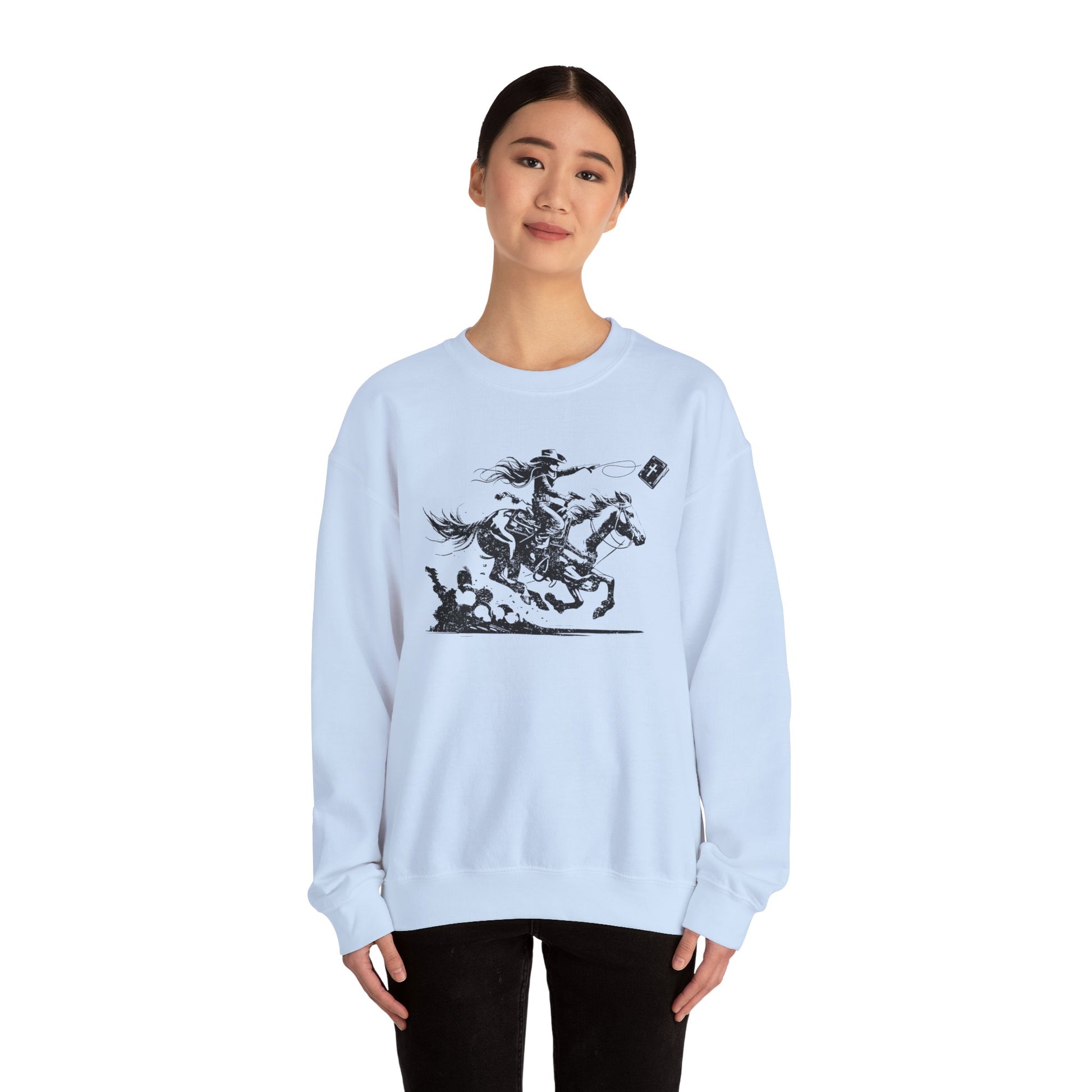 Cowgirl Riding Horse Sweatshirt – Christian Scripture Western Rodeo Texas Pullover
