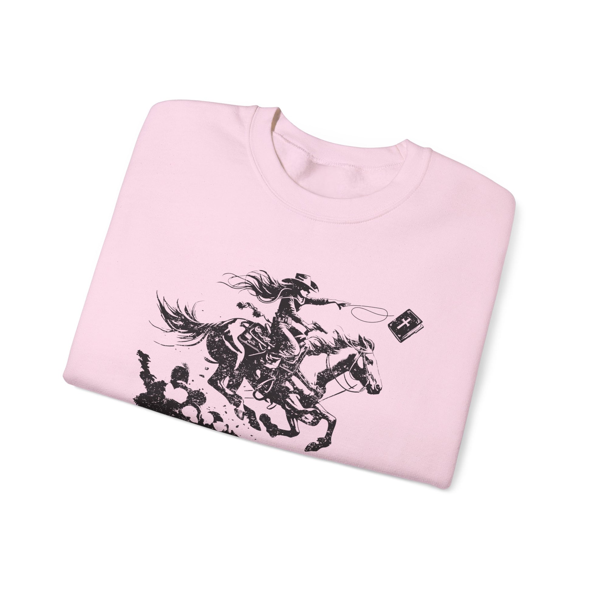 Made from soft, warm fabric with a relaxed unisex fit, it’s designed for cozy comfort and layering. Whether you’re worshiping on Sunday, riding at the arena, or sharing your faith through fashion, this sweatshirt keeps your Western style authentic and inspiring.
