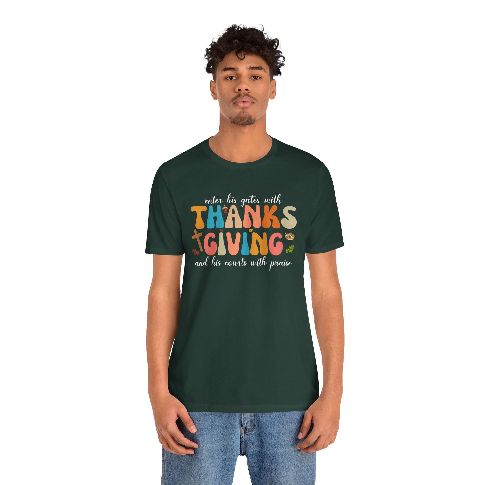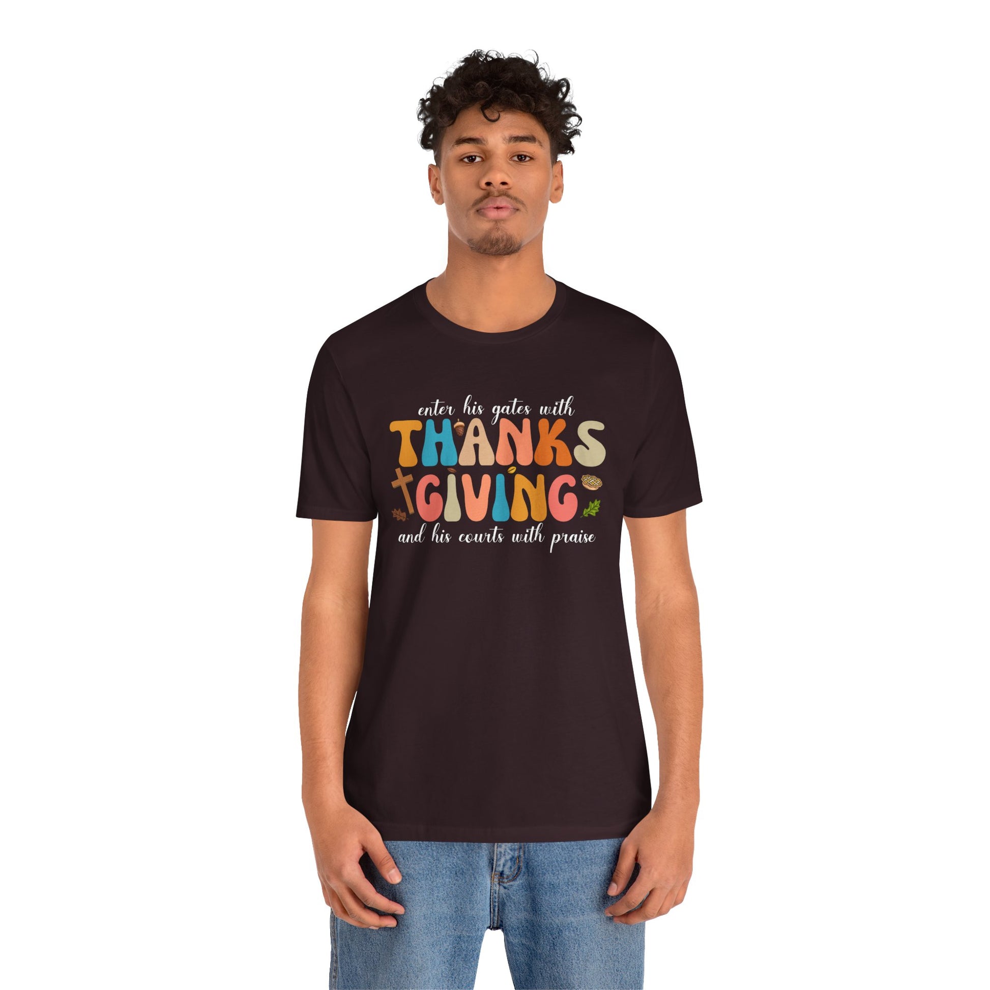 Enter His Gates with Thanksgiving Shirt – Christian Psalm 100:4 Autumn Faith Tee