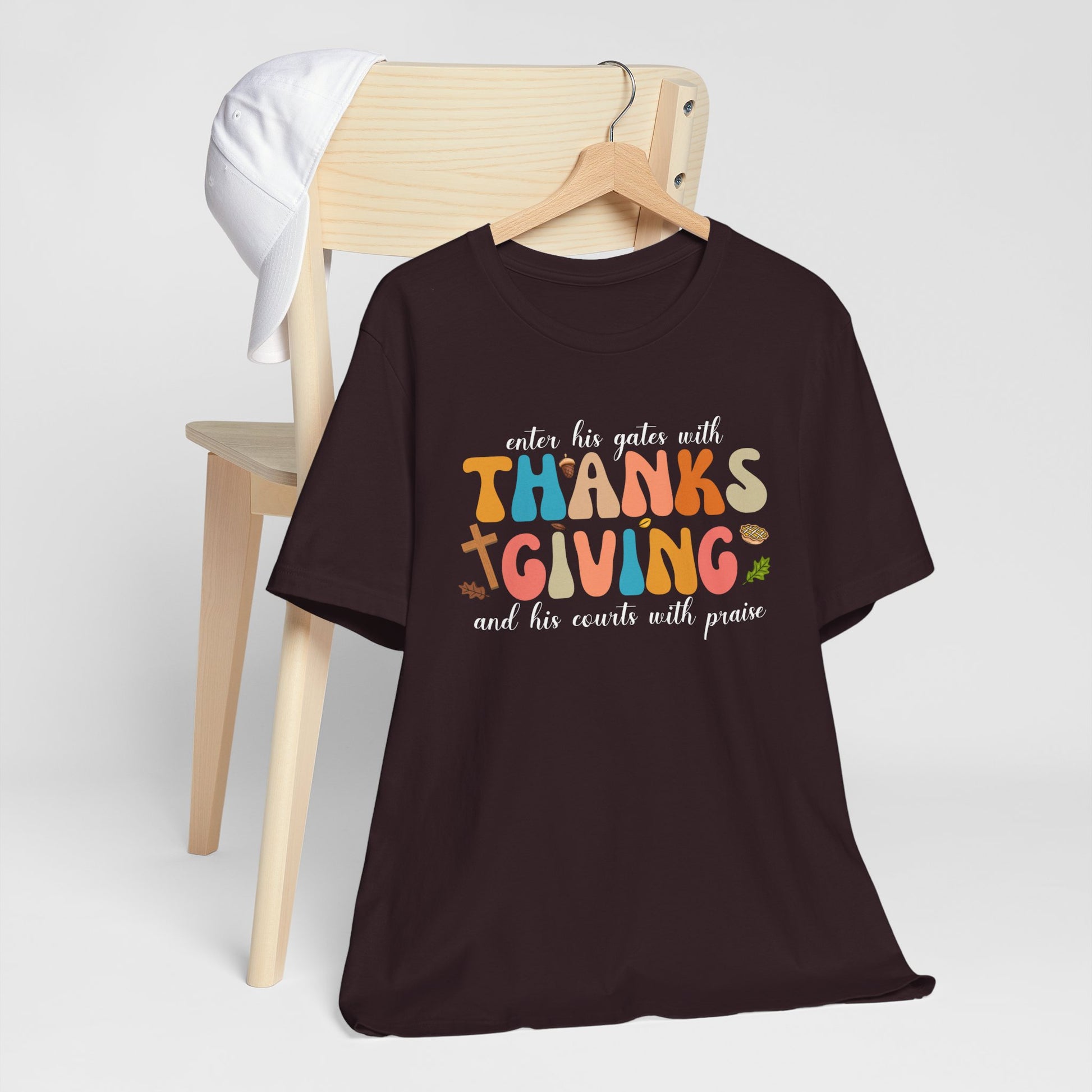 Give thanks in style with our Enter His Gates with Thanksgiving Shirt. Inspired by Psalm 100:4, this Christian autumn tee is a perfect reminder to honor God with gratitude during the fall season and beyond.