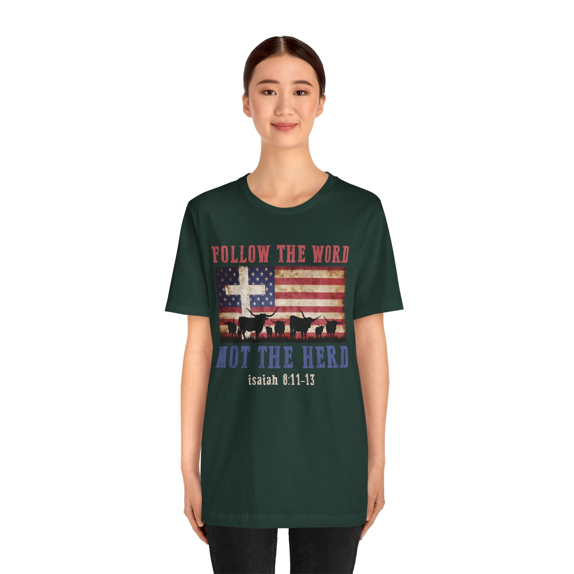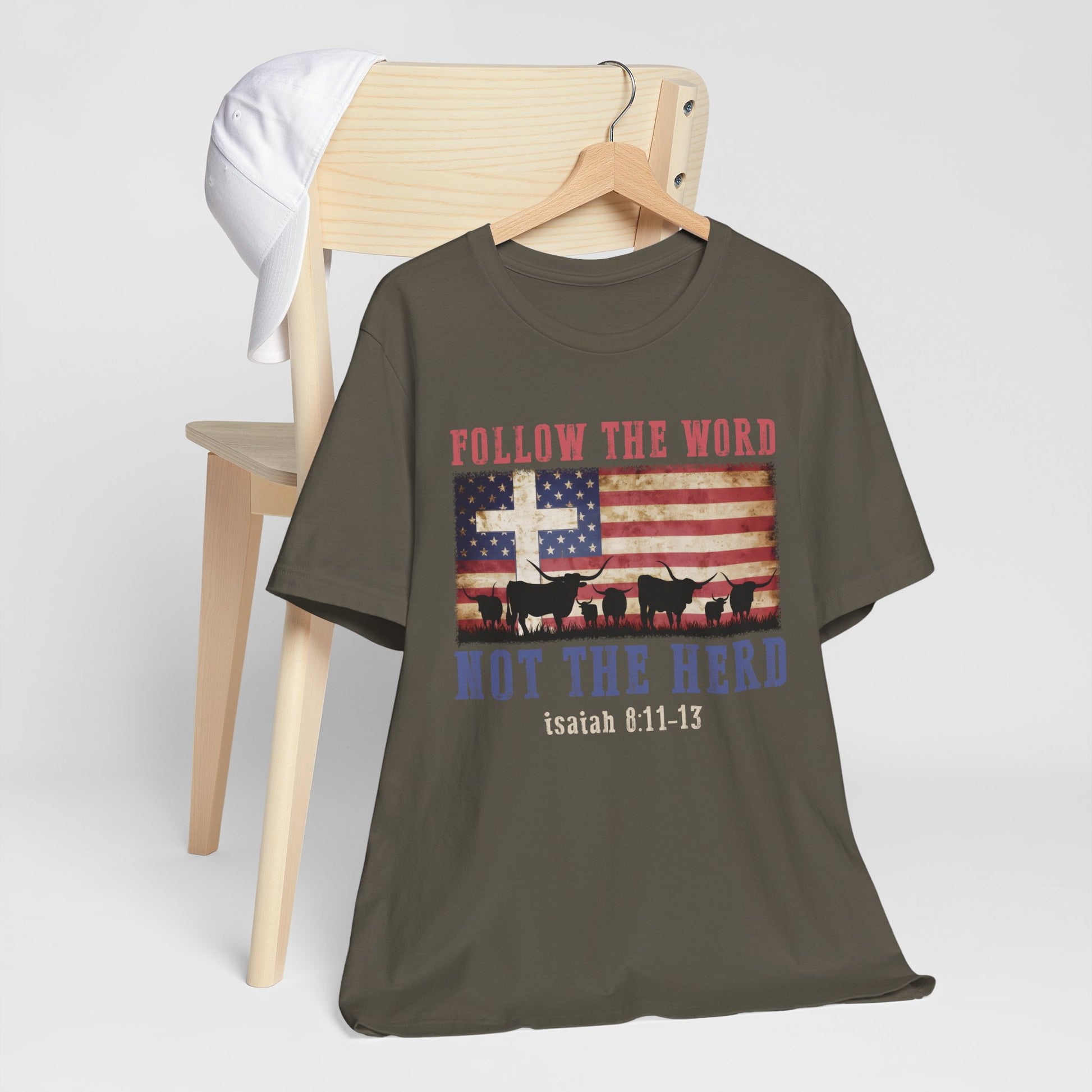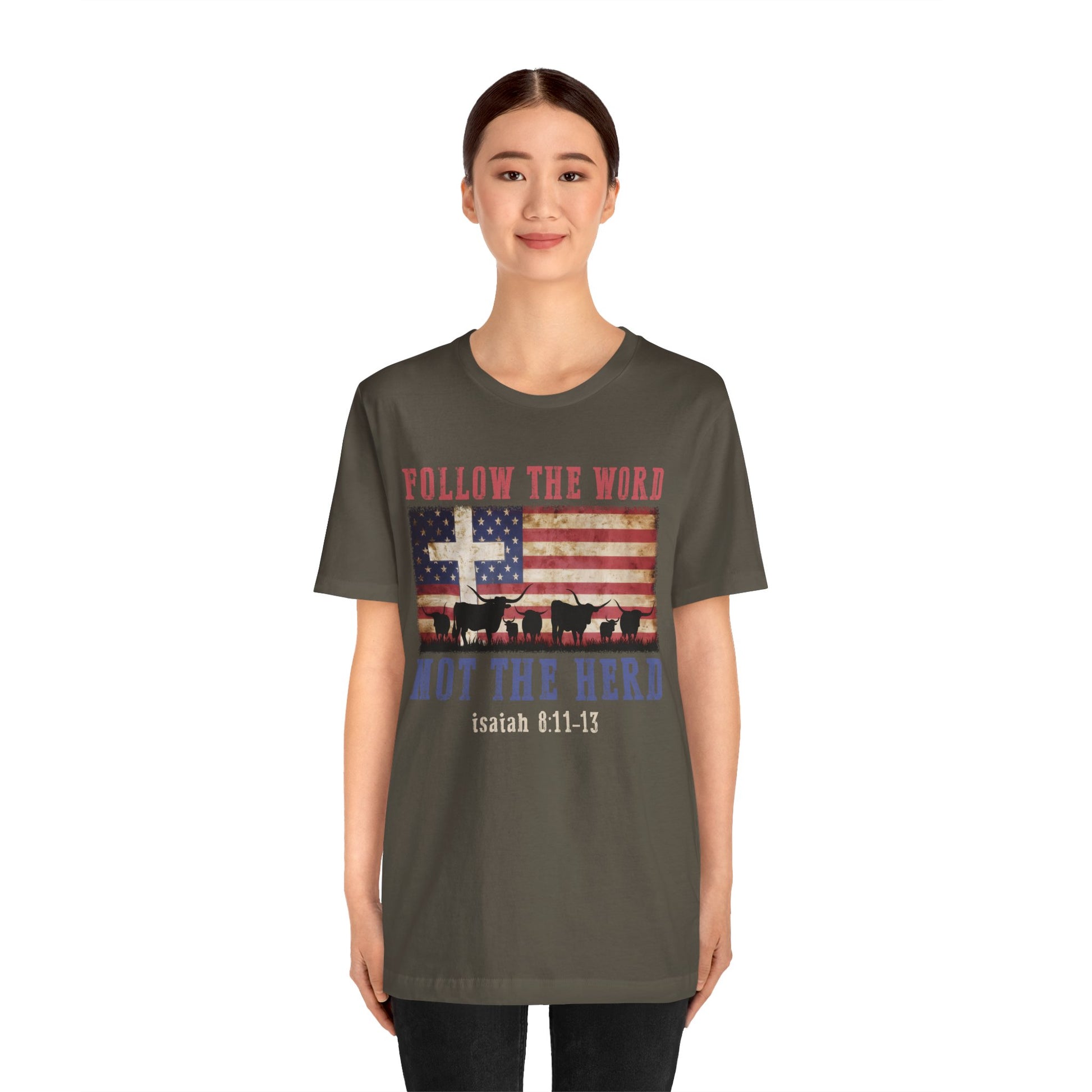 Follow the Word Not the Herd Shirt – Faith US Flag Christian Western Tee