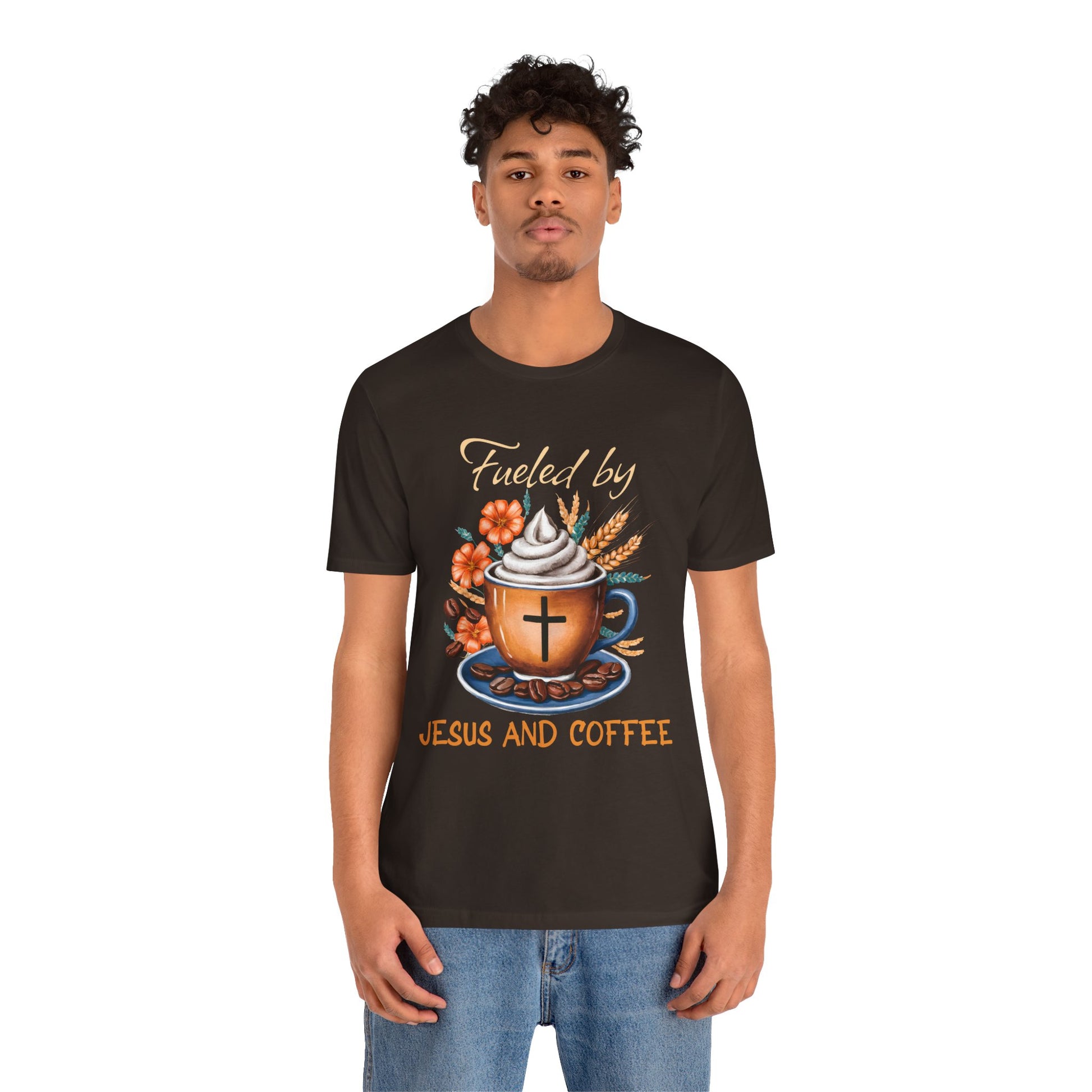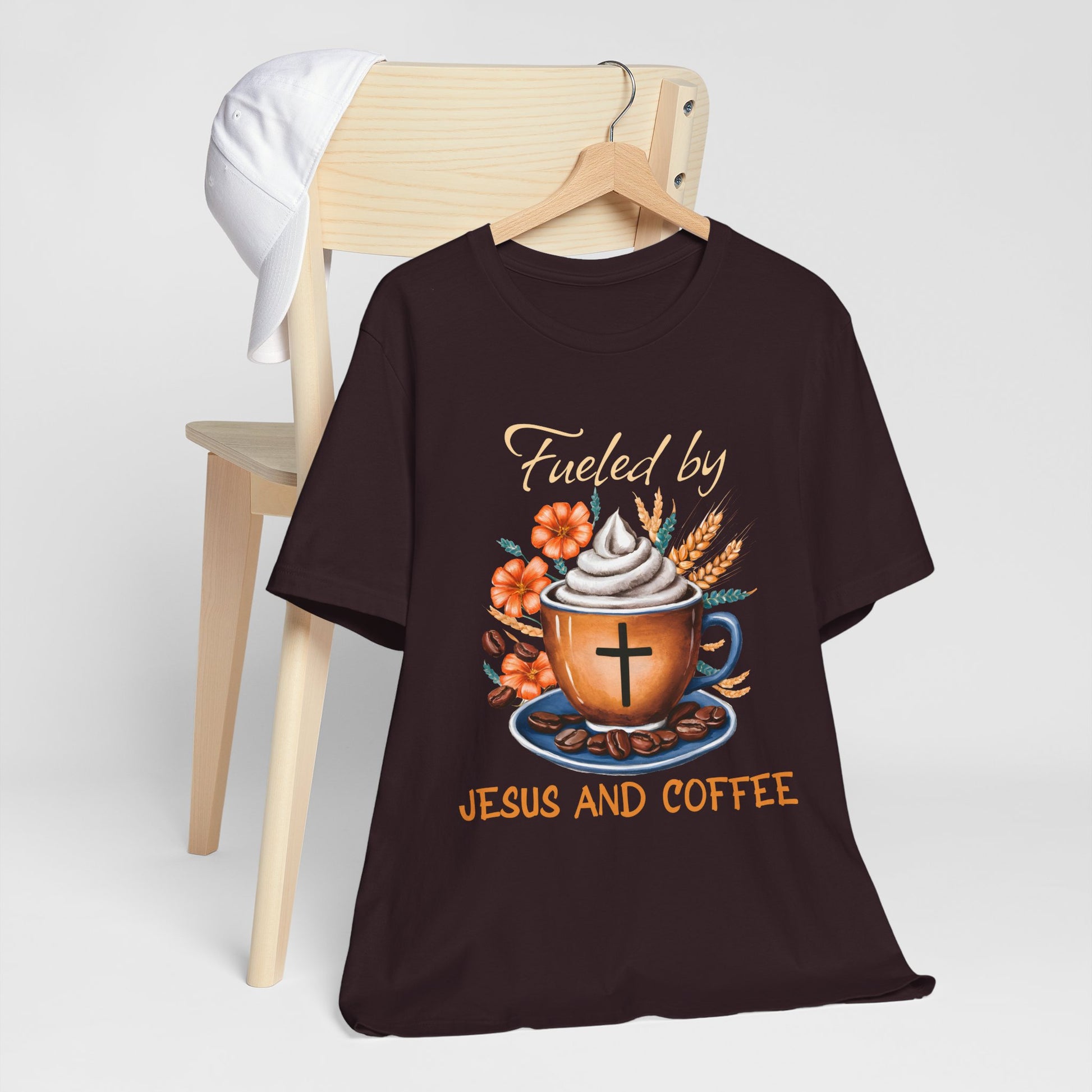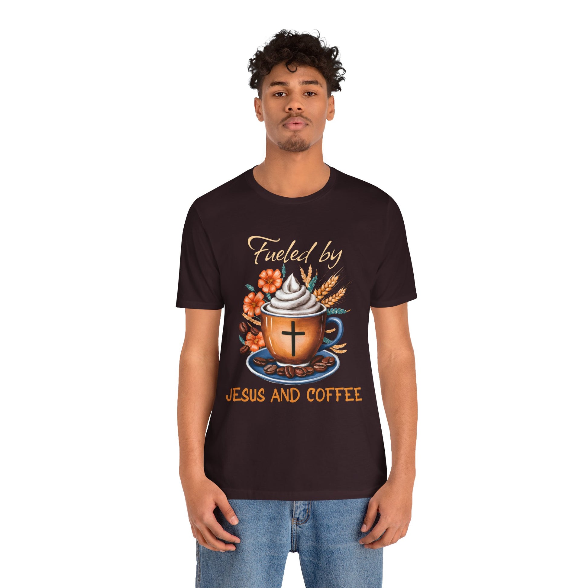 Fueled by Jesus & Coffee Shirt – Christian Faith God Cross Cup Tee