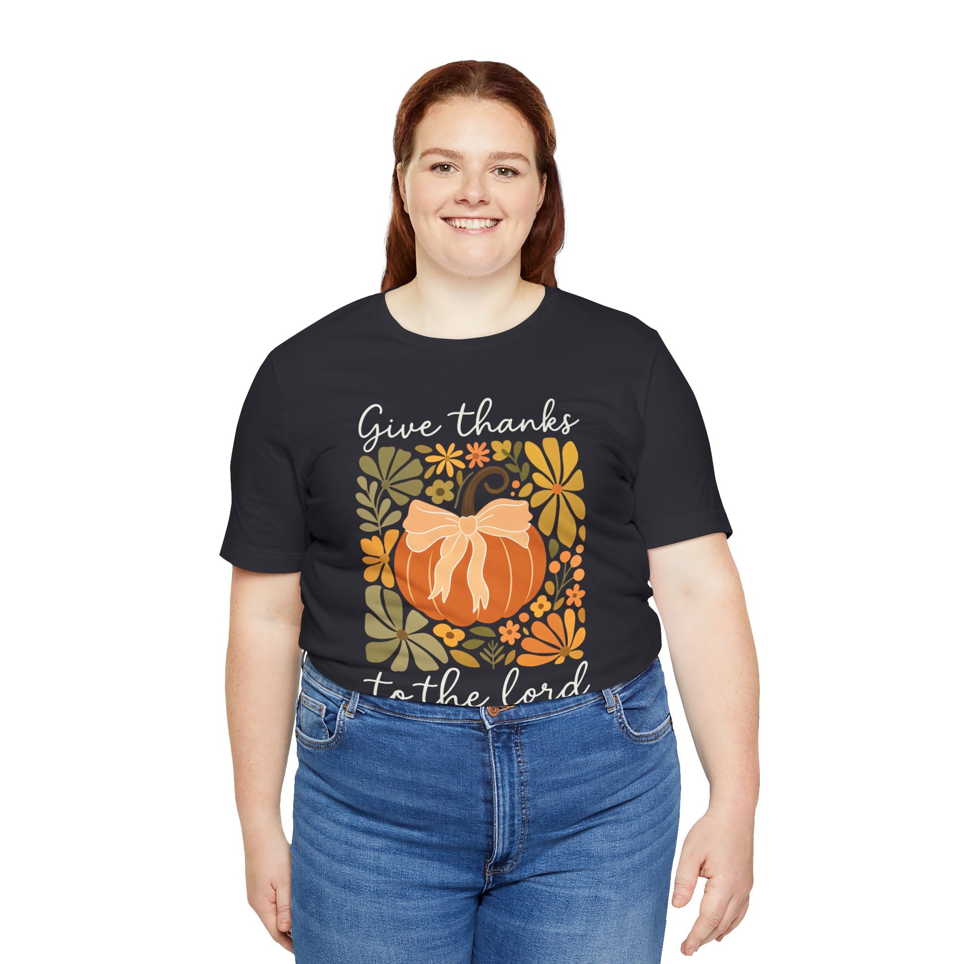 Celebrate gratitude this season with our Give Thanks to the Lord Shirt. Featuring a pumpkin graphic and scripture-inspired message, this Christian fall tee is a meaningful way to honor God during Thanksgiving and autumn gatherings.