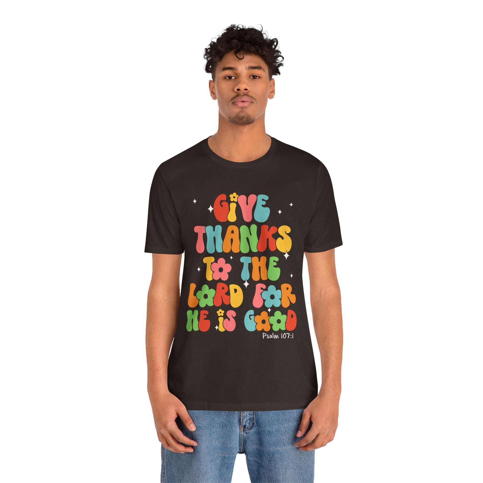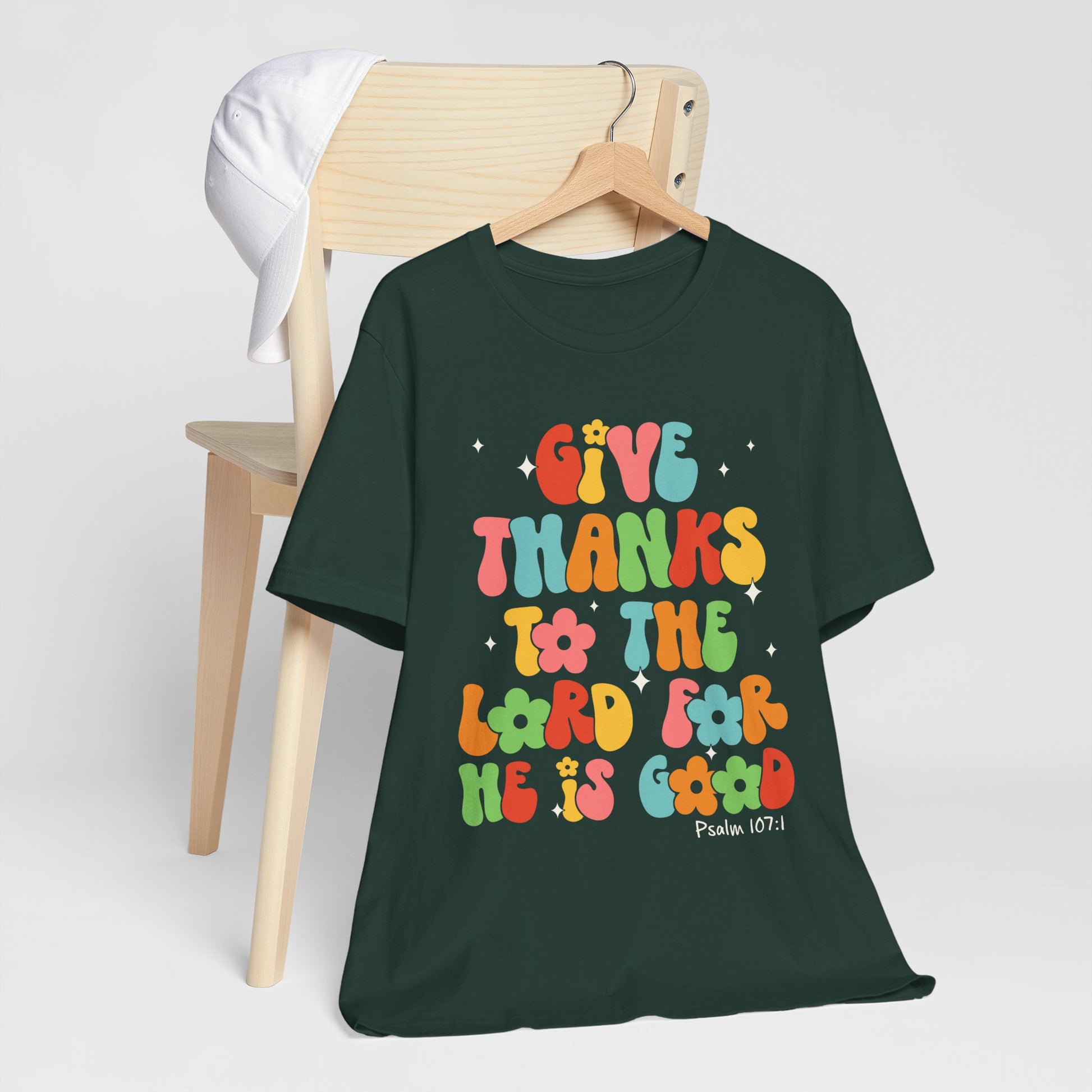 Give Thanks to the Lord Shirt – Groovy Psalm 107:1 Christian Bible Verse Tee