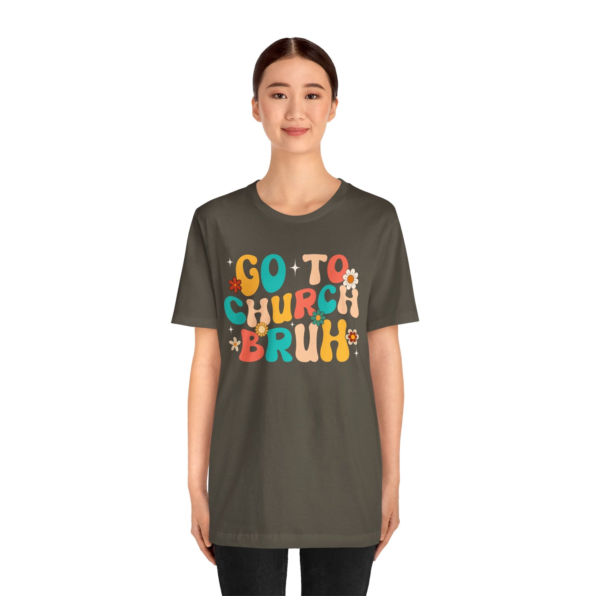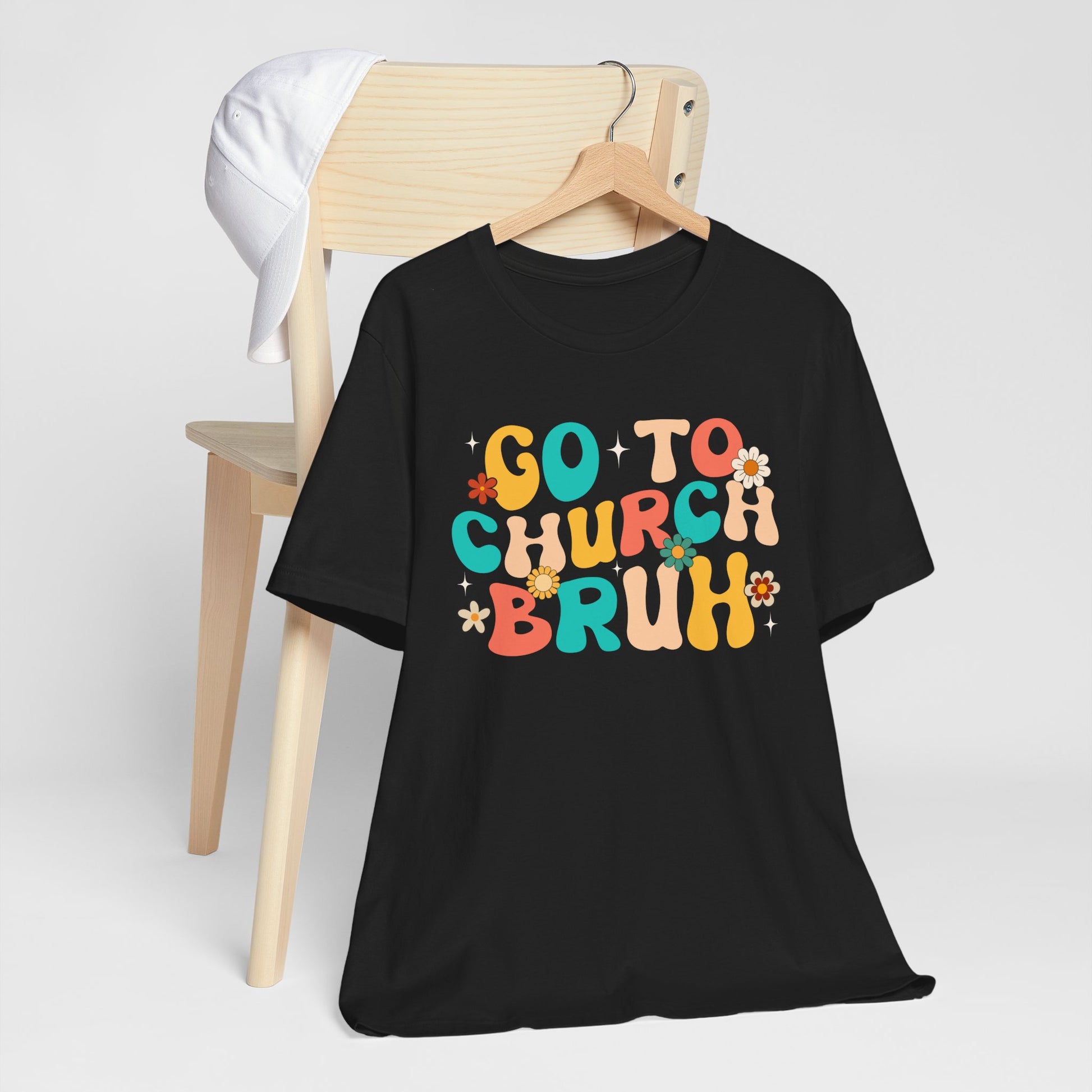Go to Church Bruh Shirt – Funny Retro Groovy Christian Hippie Flower Faith Tee