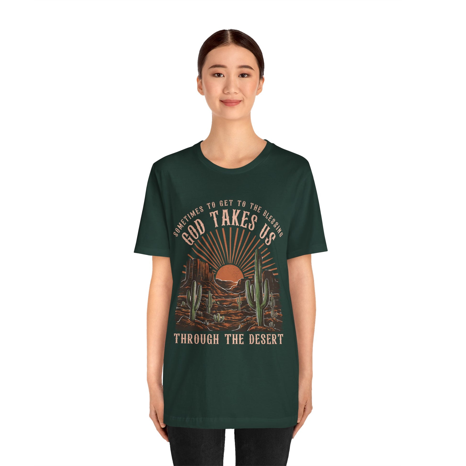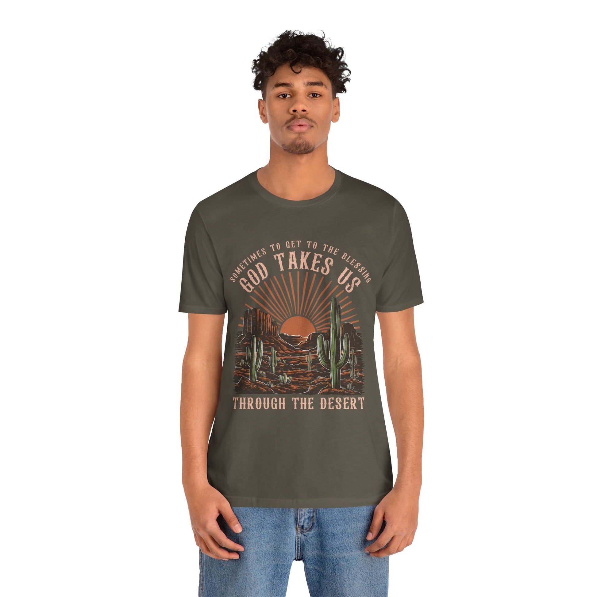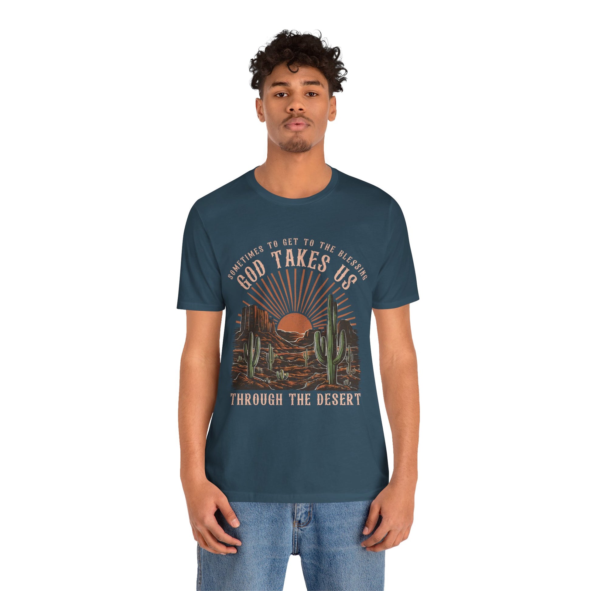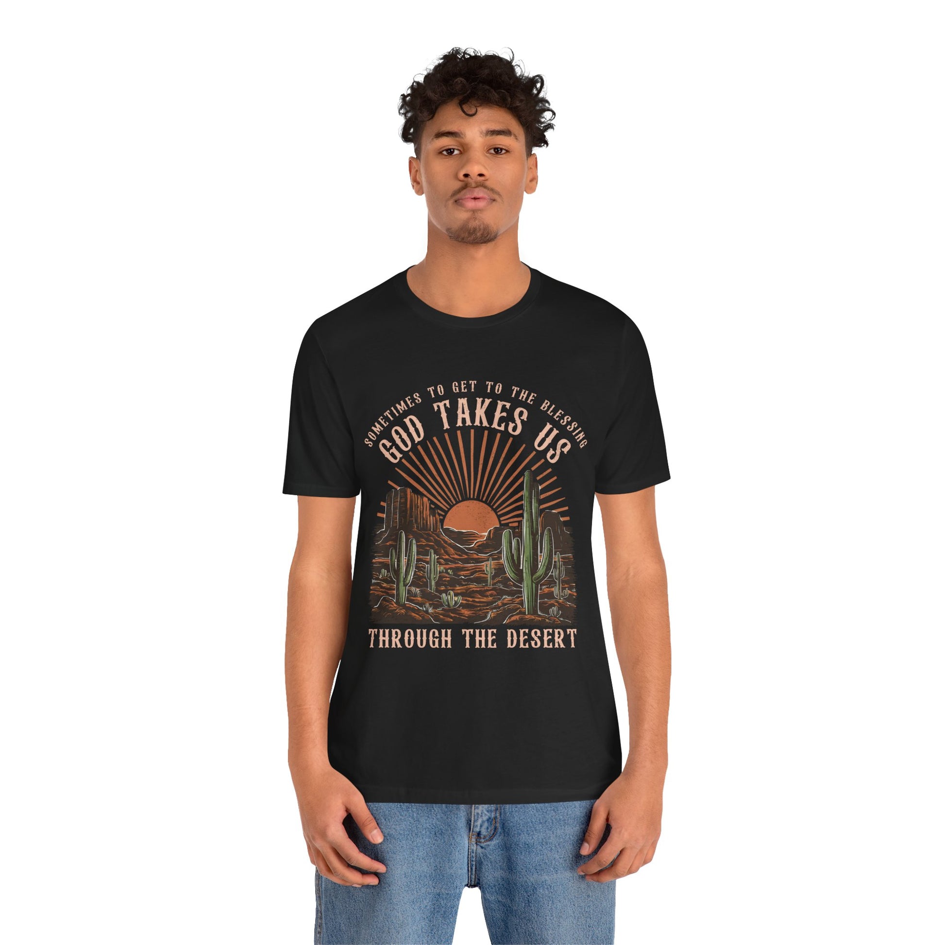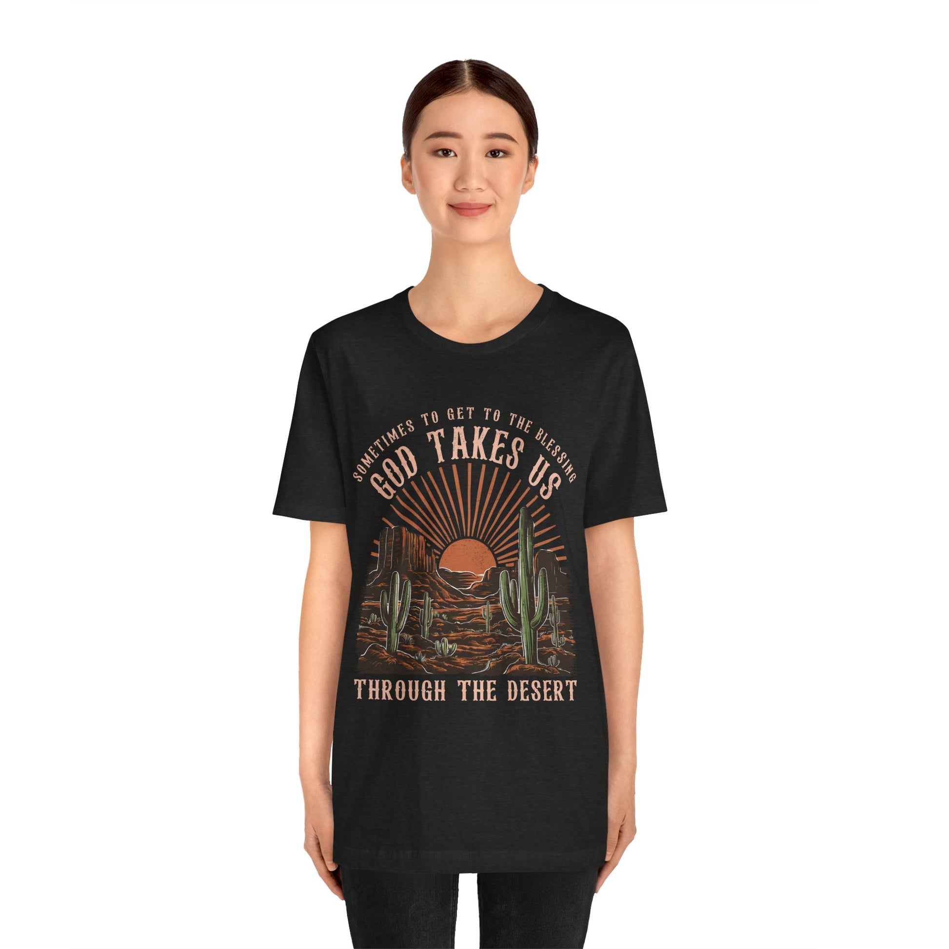 God Takes Us Through the Desert Shirt – Boho Western Christian Rodeo Tee