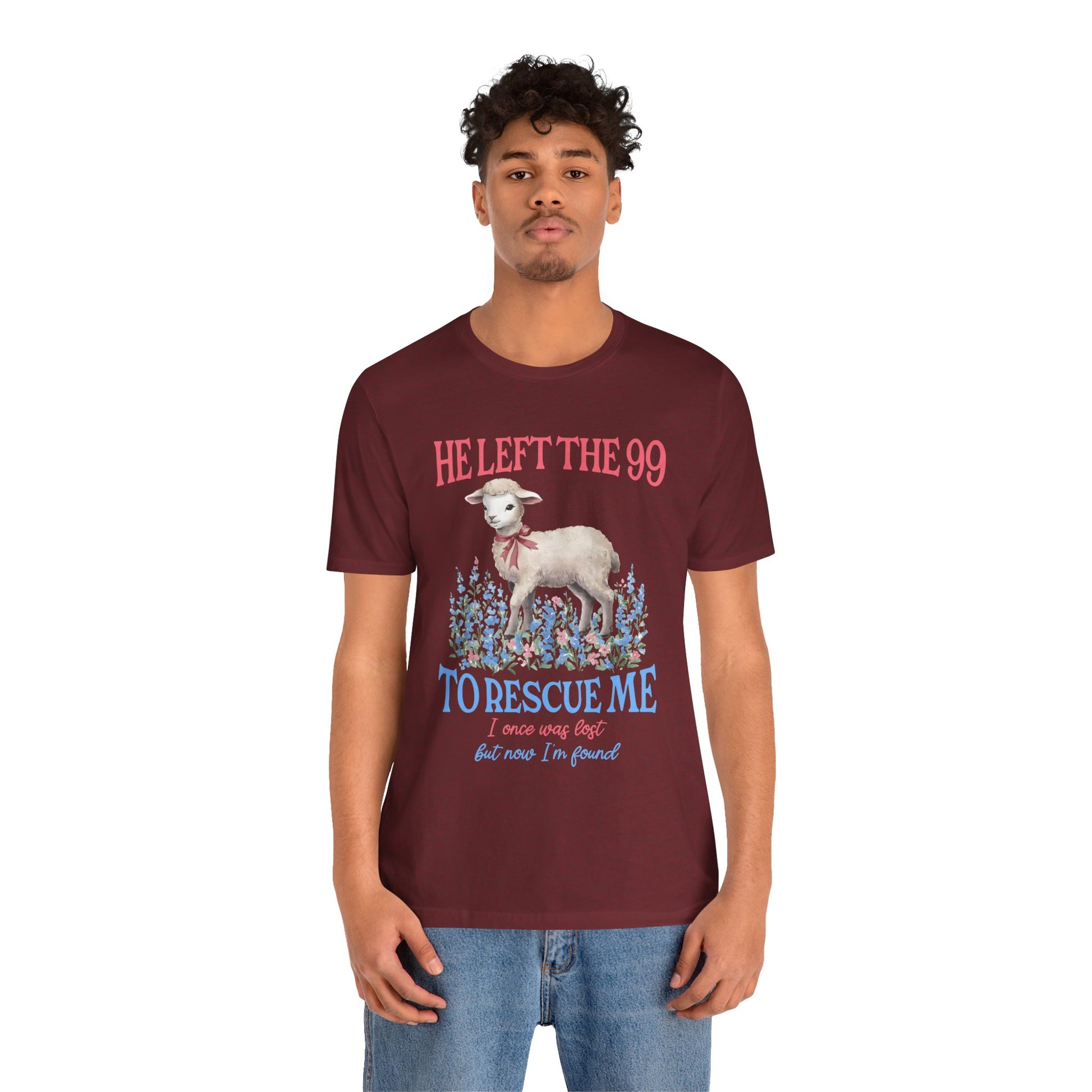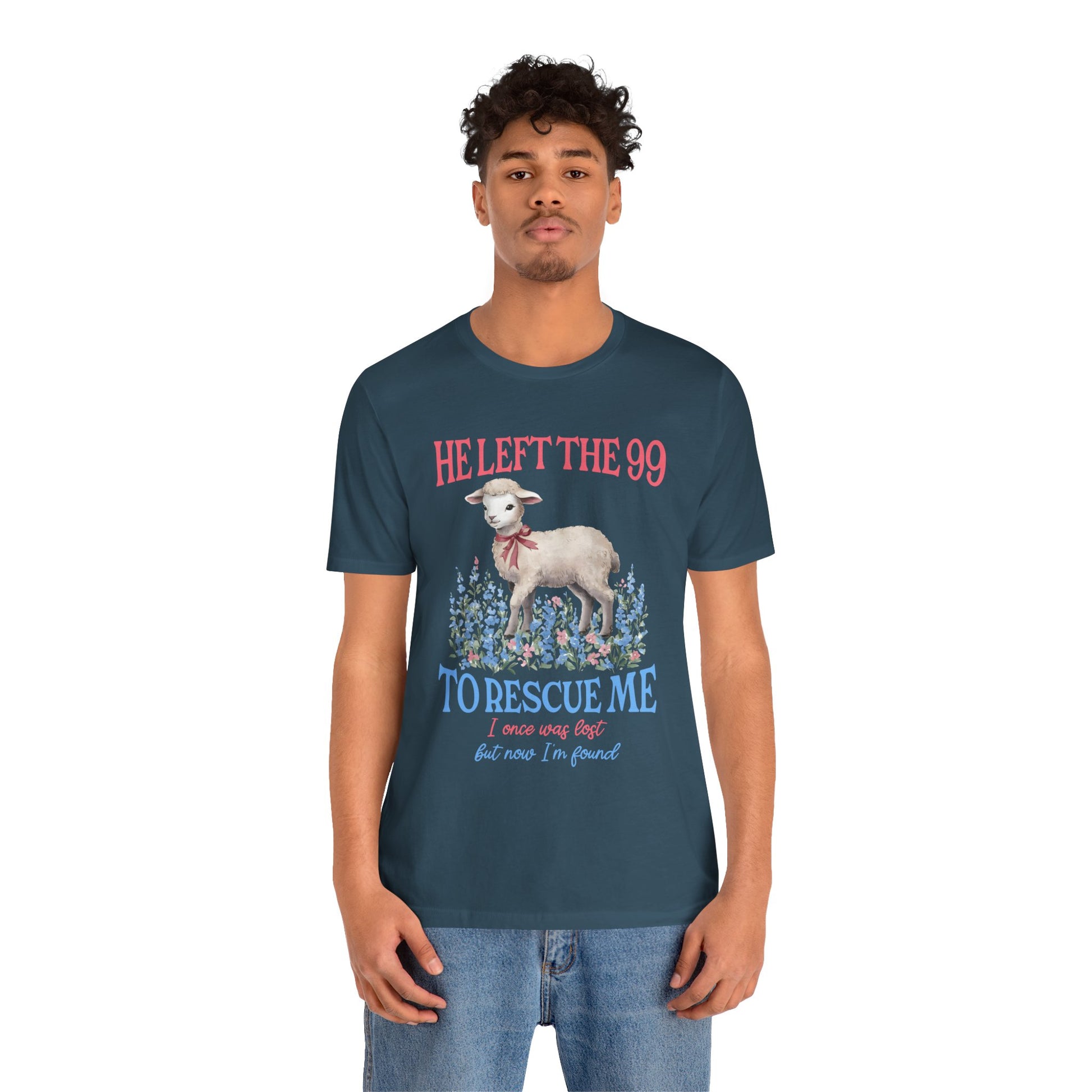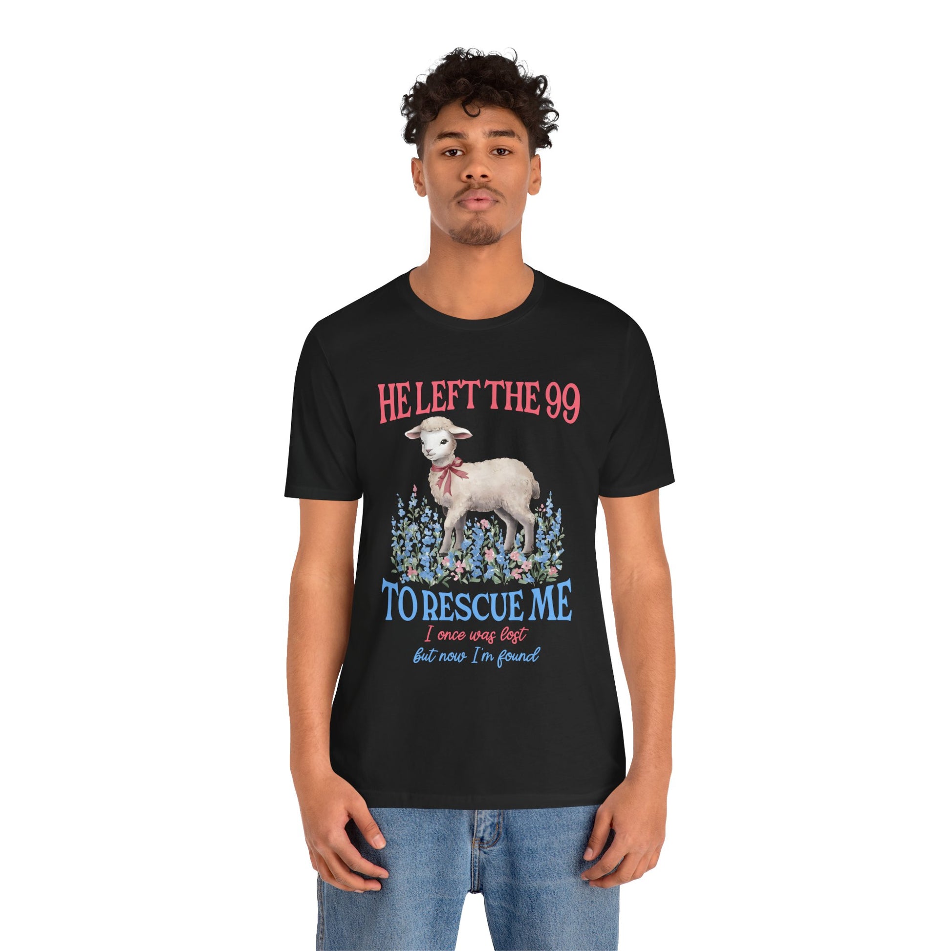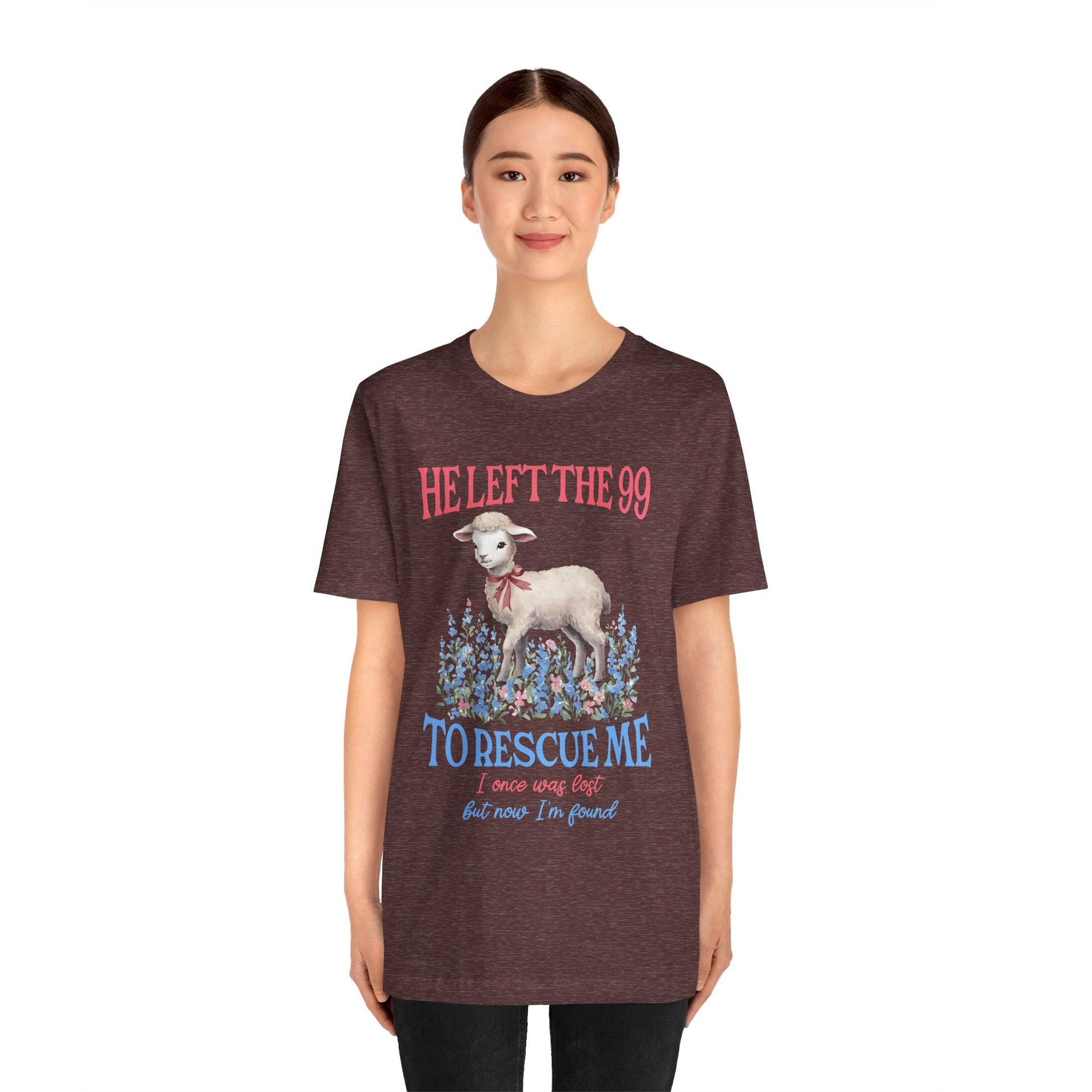 He Left the 99 to Rescue Me Shirt – Christian Lamb Flowers Faith Tee