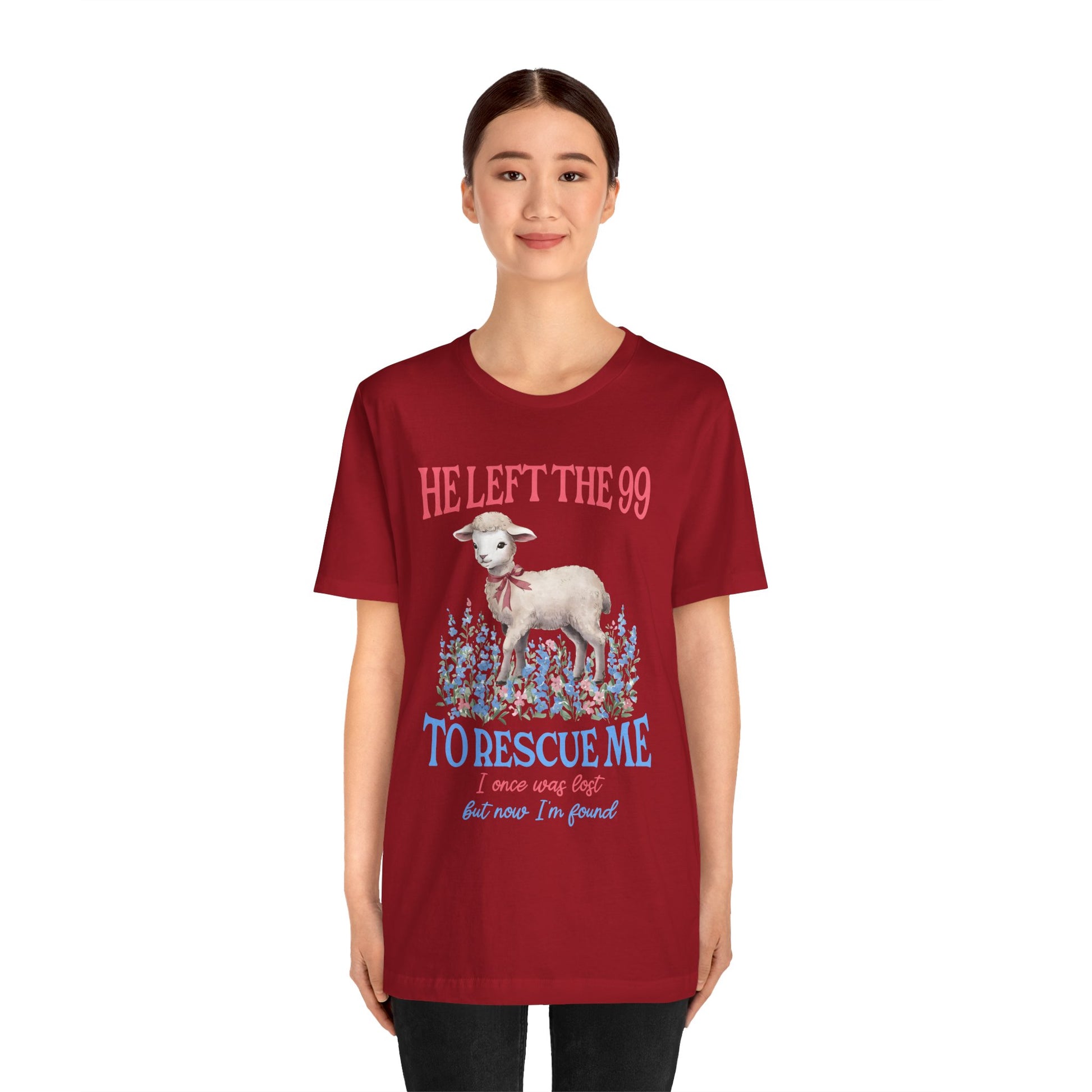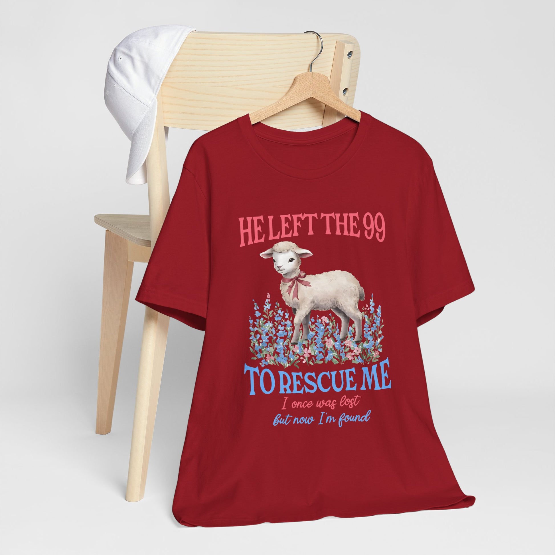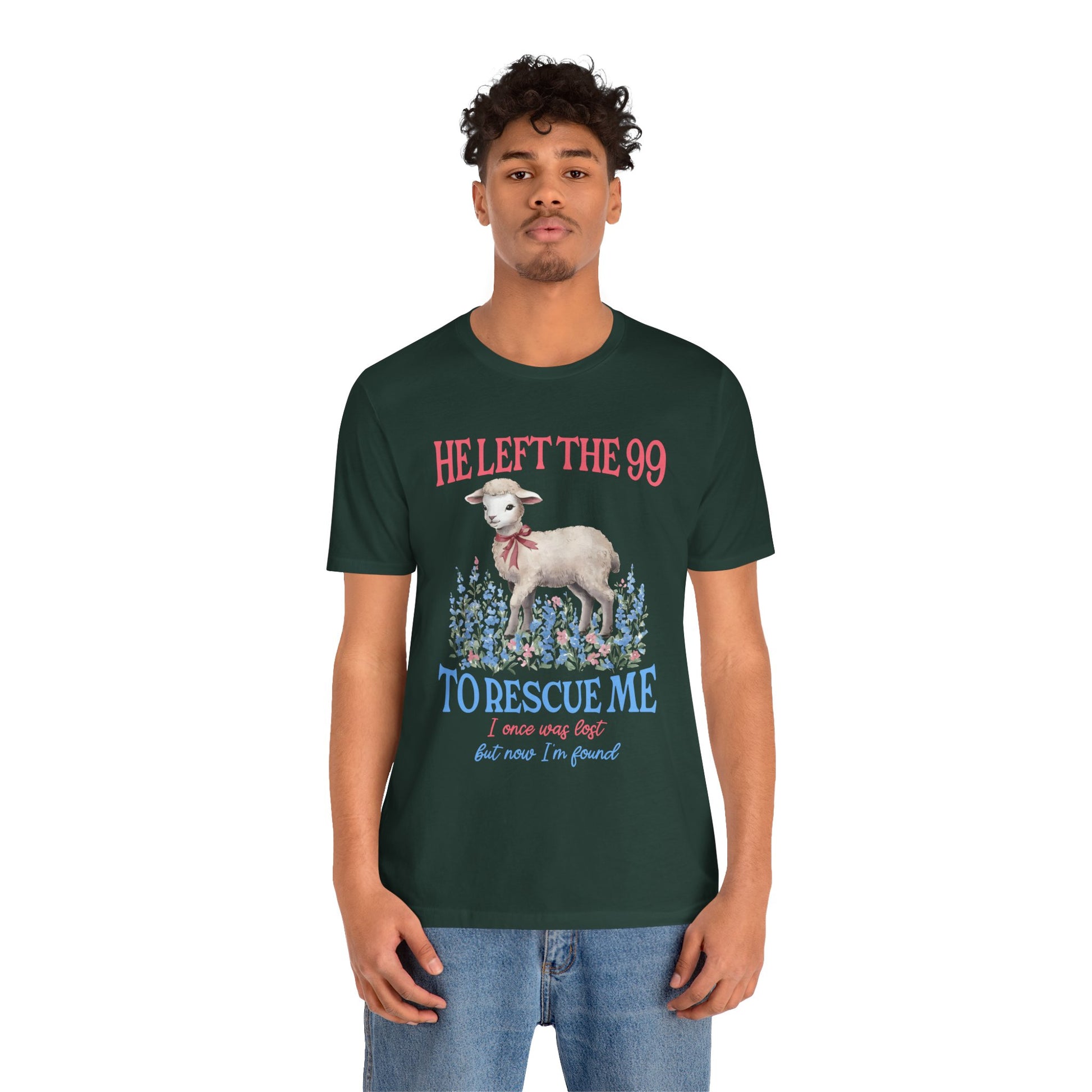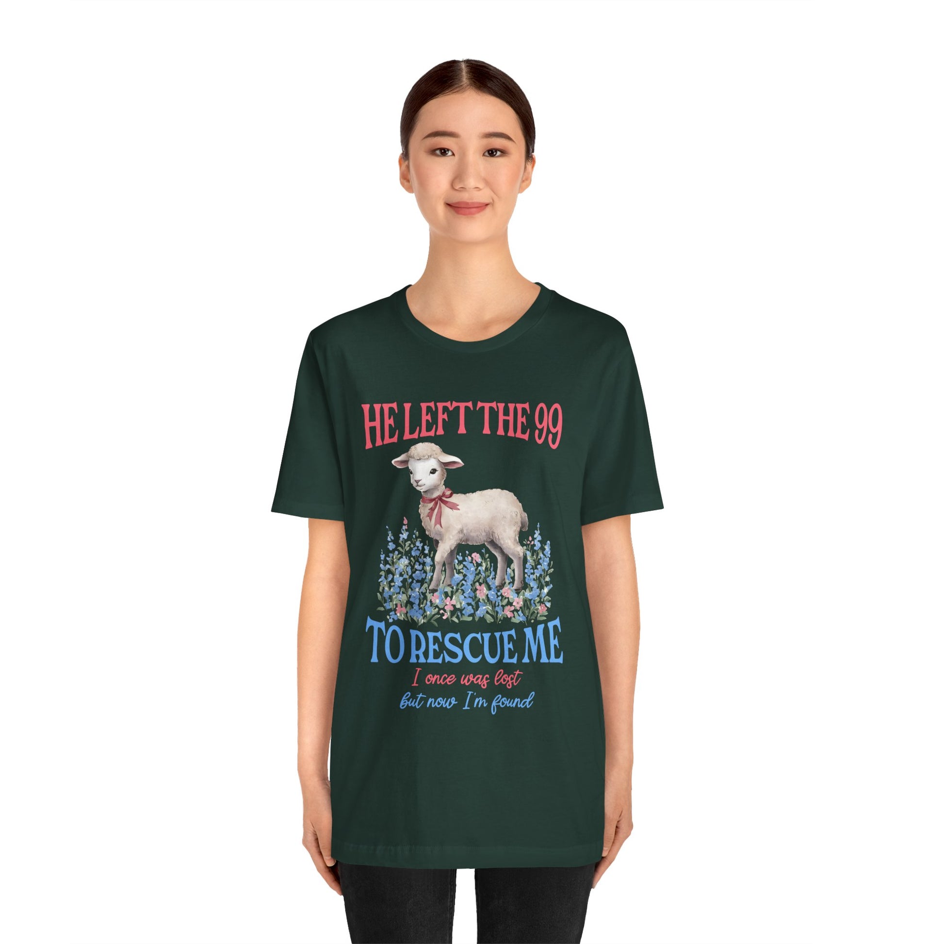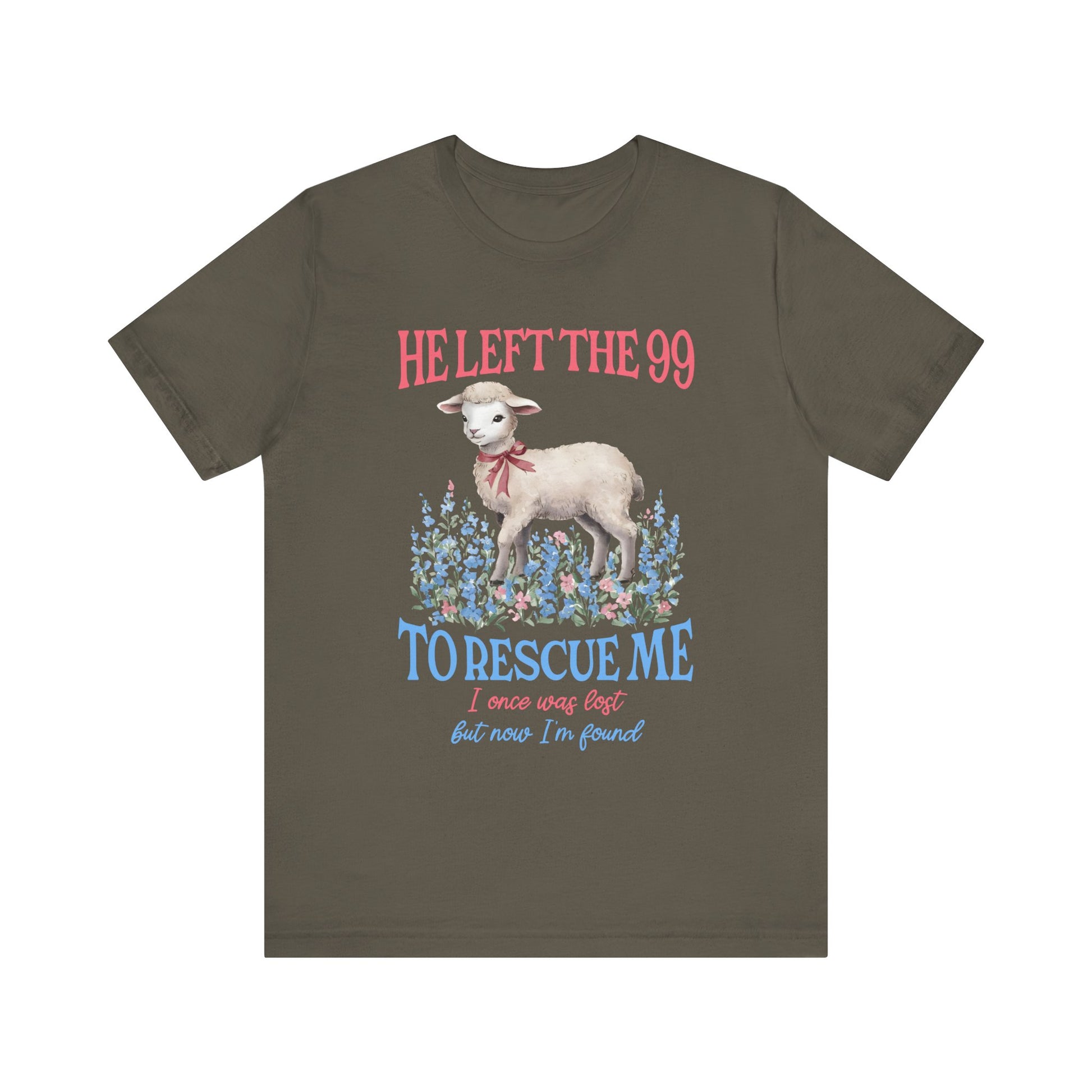 He Left the 99 to Rescue Me Shirt – Christian Lamb Flowers Faith Tee