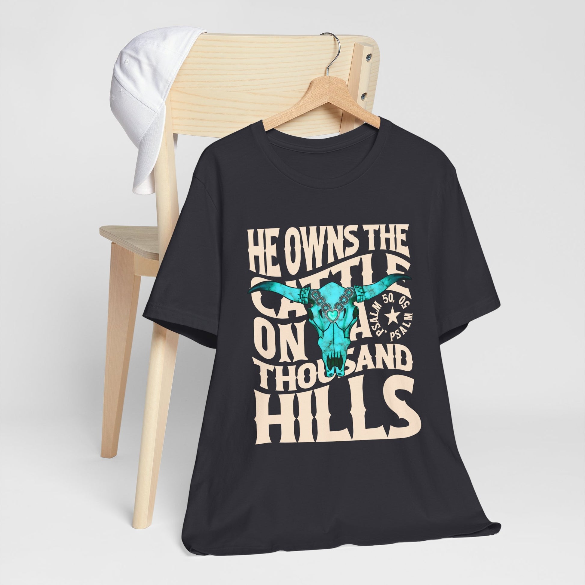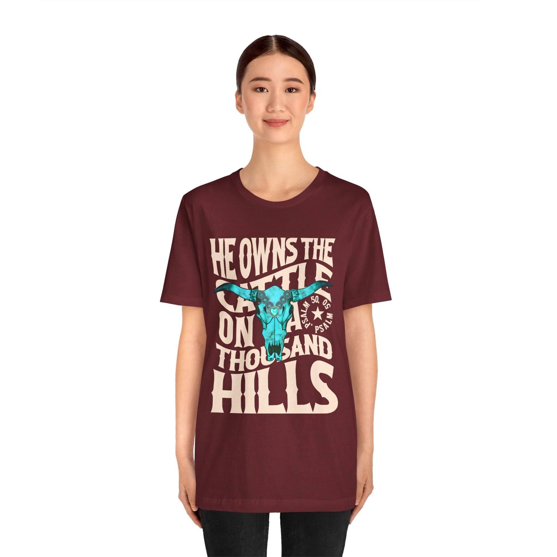 He Owns the Cattle on a Thousand Hills Shirt – Psalm 50:10 Western Christian Cowboy Tee