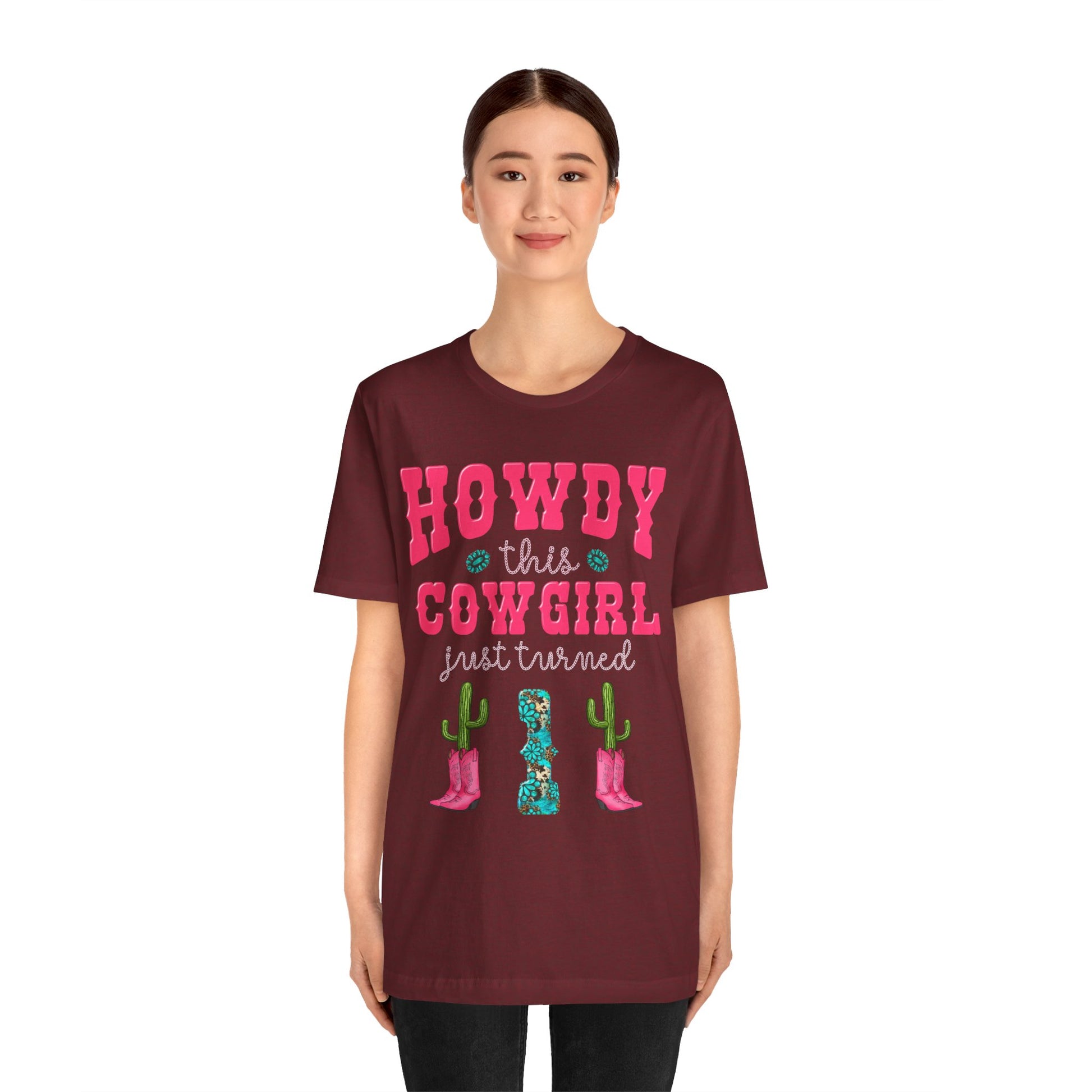 Howdy This Cowgirl Just Turned 1 Shirt – Western First Birthday Girl Rodeo Party Tee