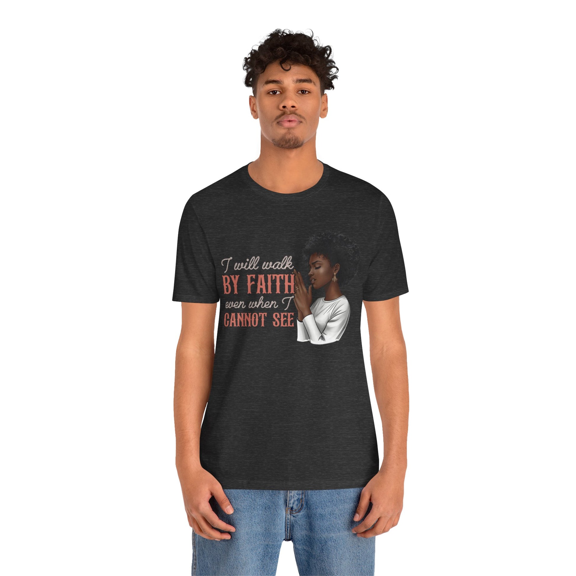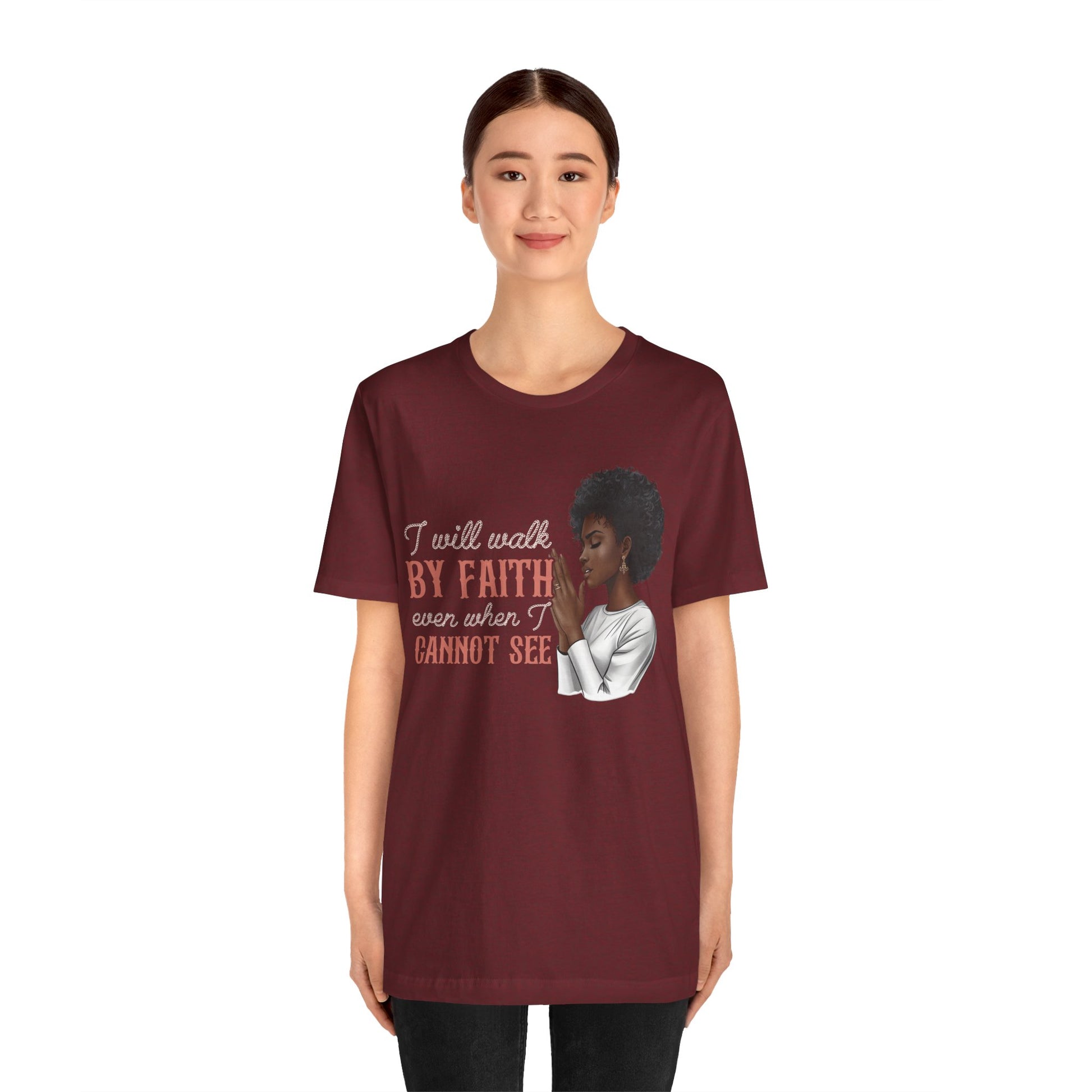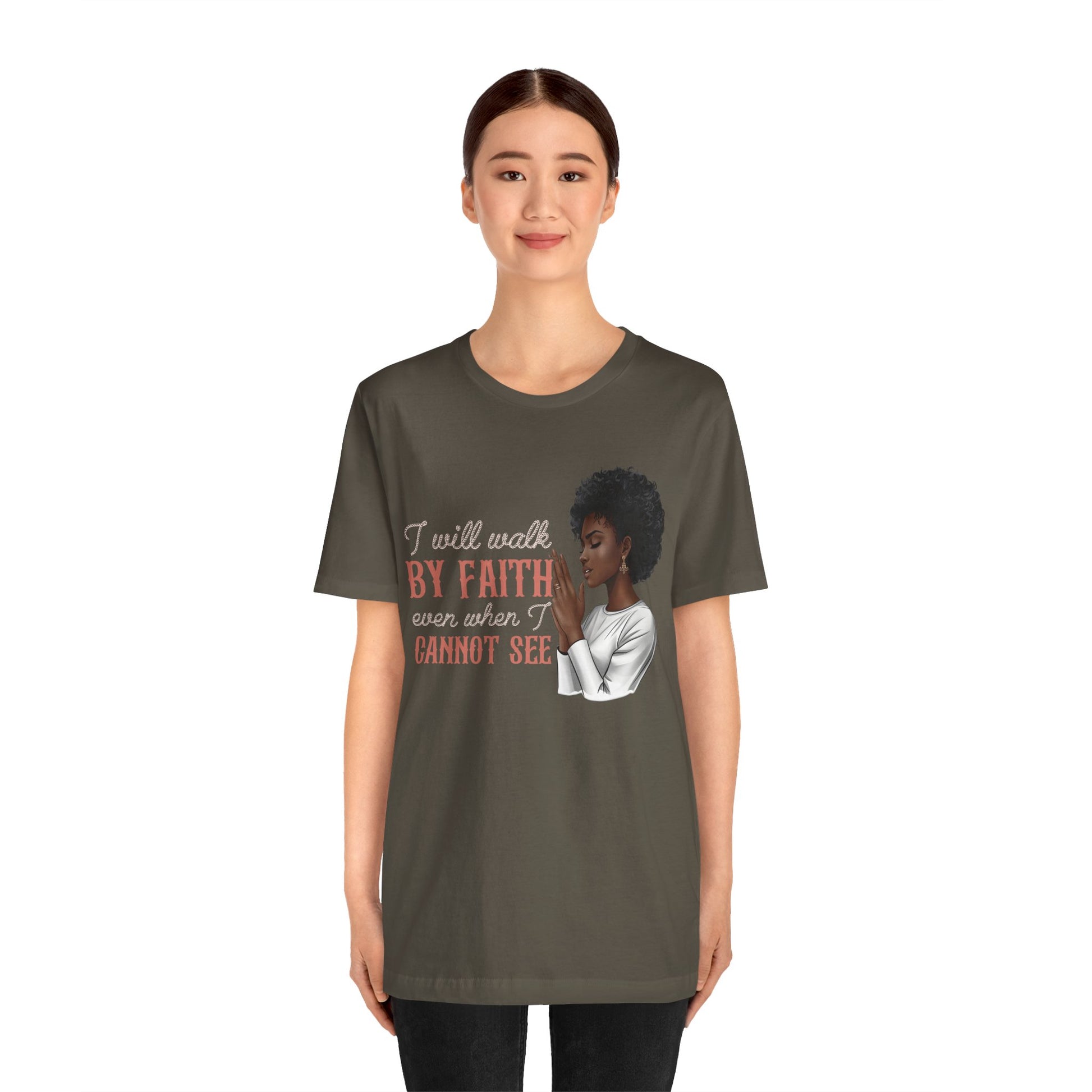 I Will Walk by Faith Shirt – Black Woman Praying Christian Bible Verse Tee