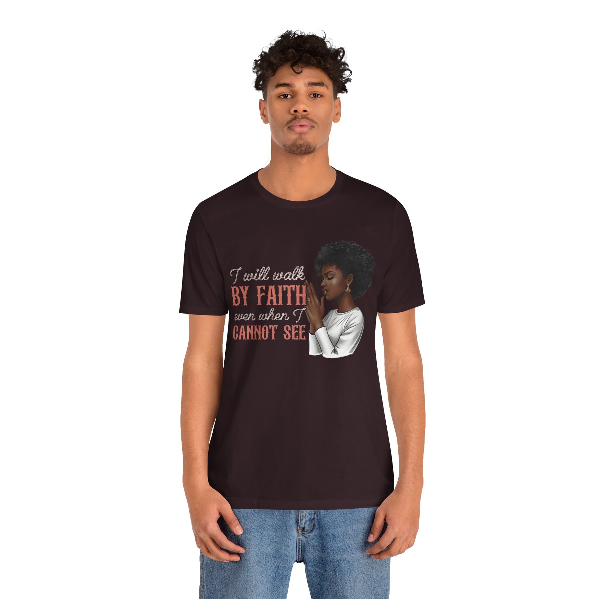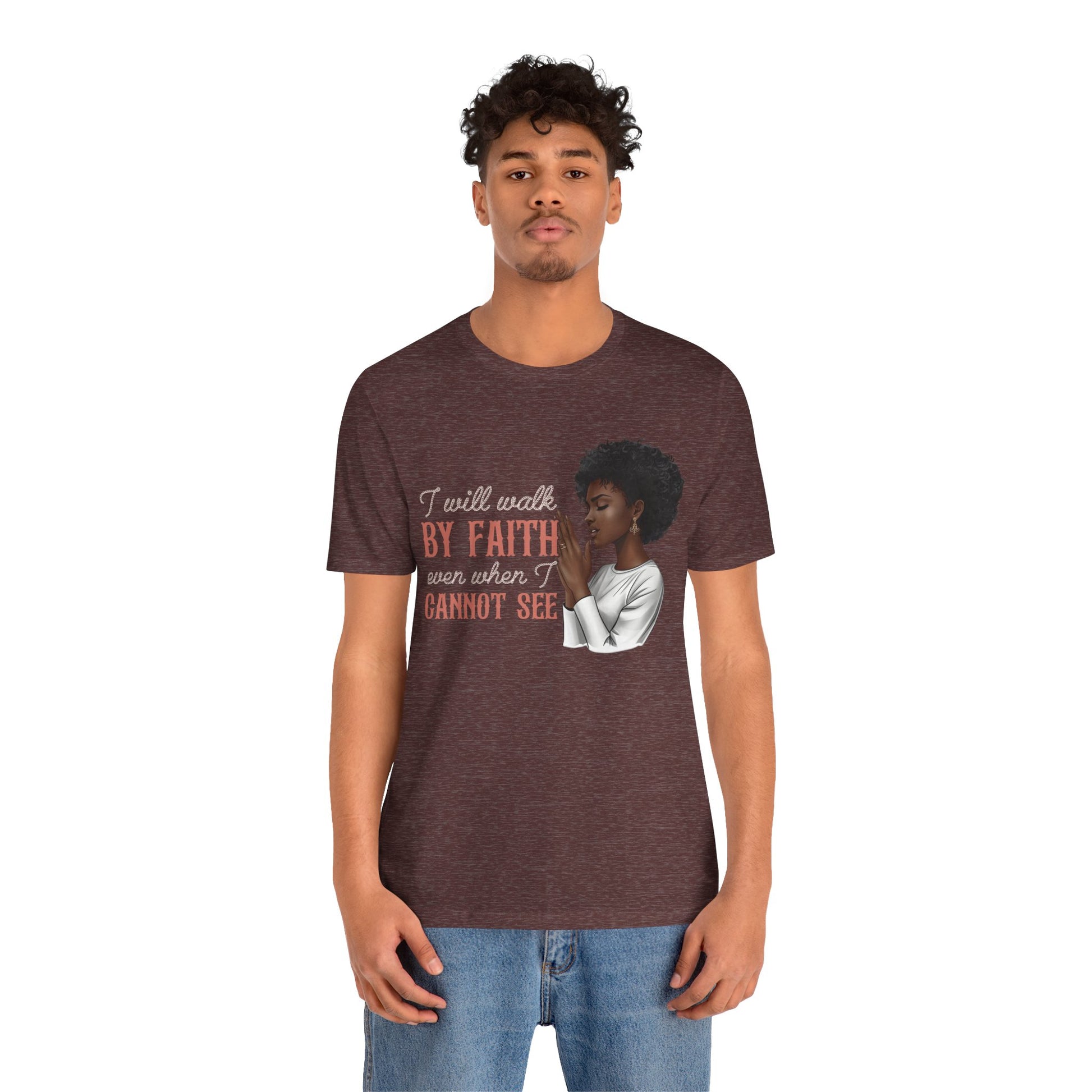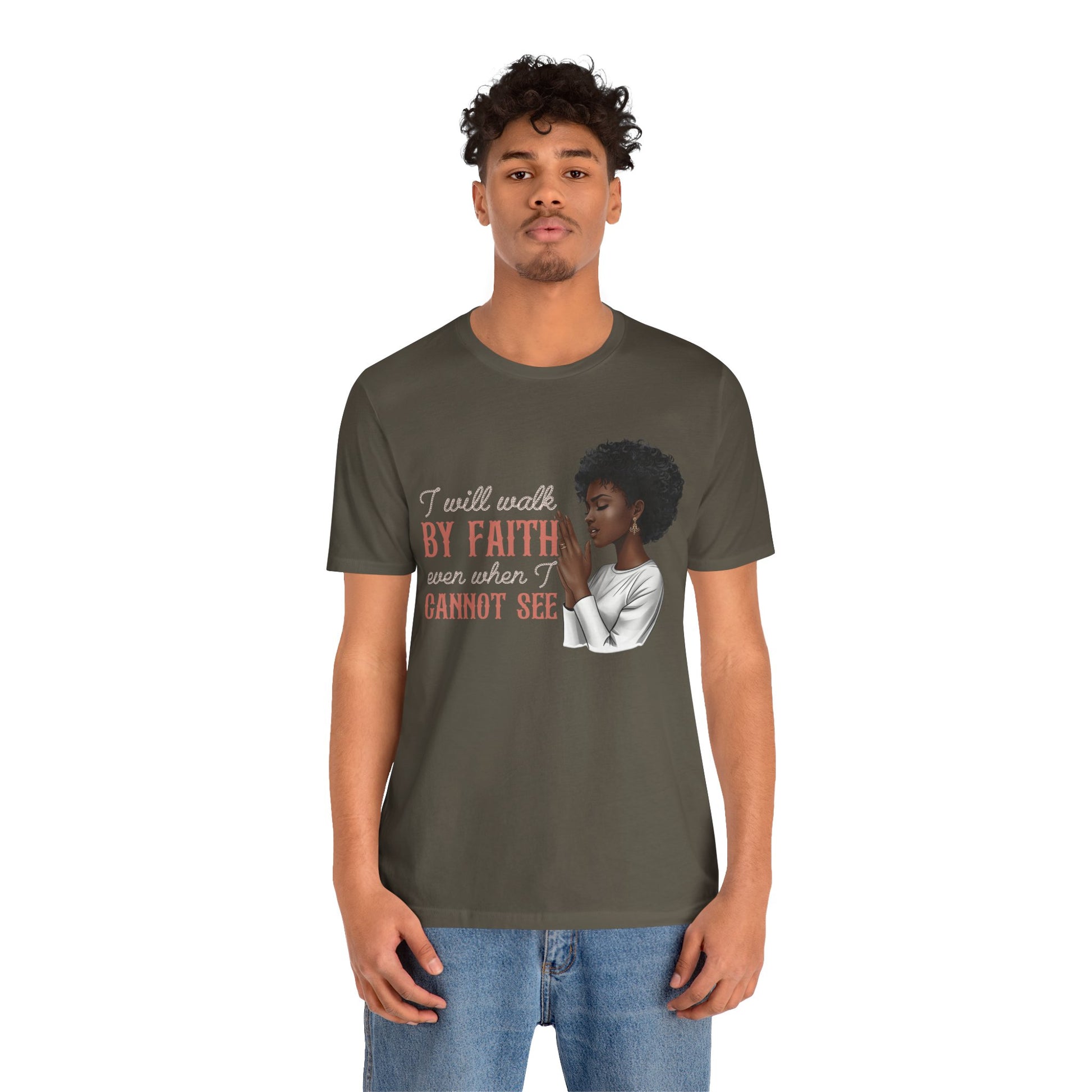 I Will Walk by Faith Shirt – Black Woman Praying Christian Bible Verse Tee