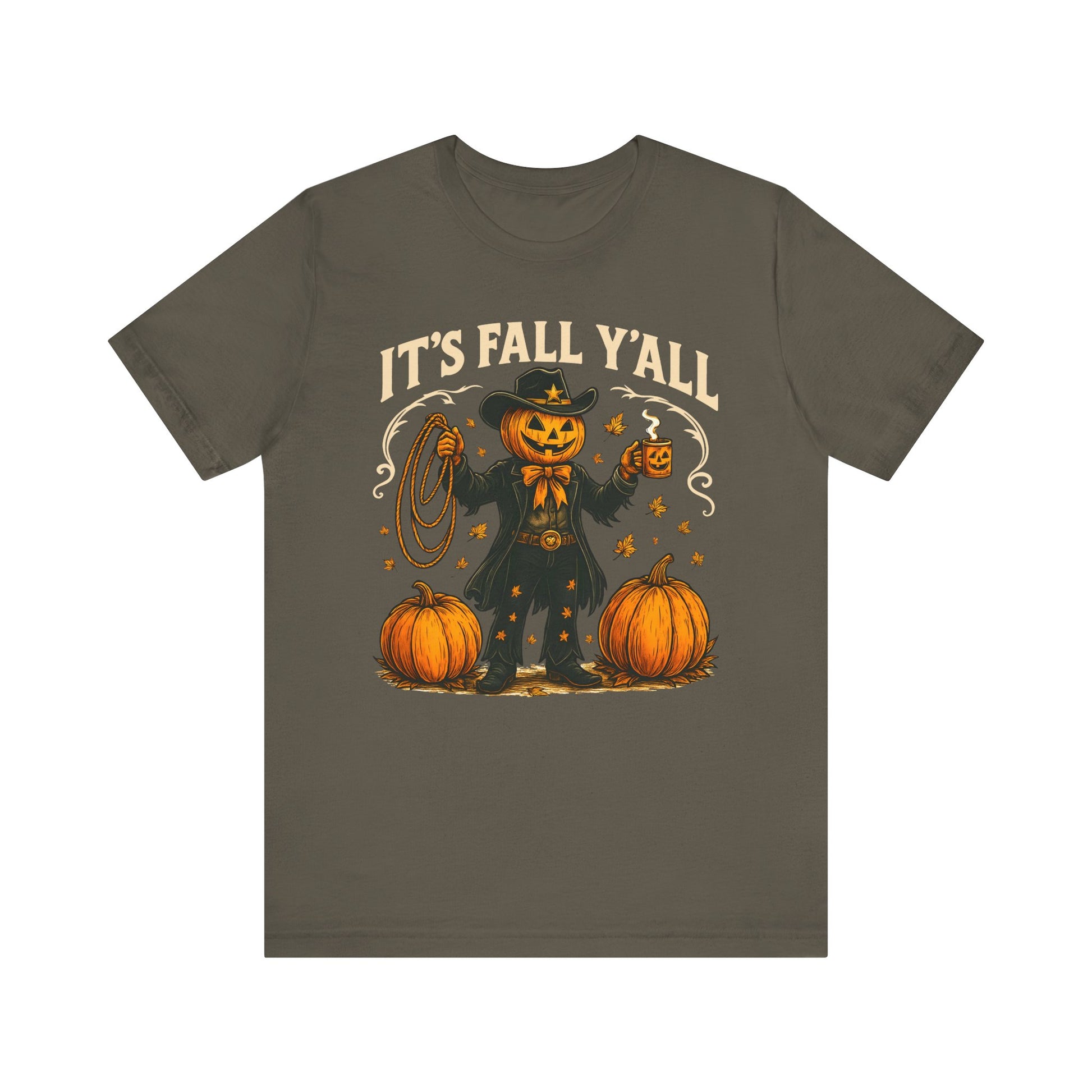 Kick off the season with rodeo charm in our It’s Fall Y’all Shirt. Featuring a funny pumpkin cowboy design, this Western Halloween tee is perfect for men and women who love autumn, rodeos, and festive fall outfits.
