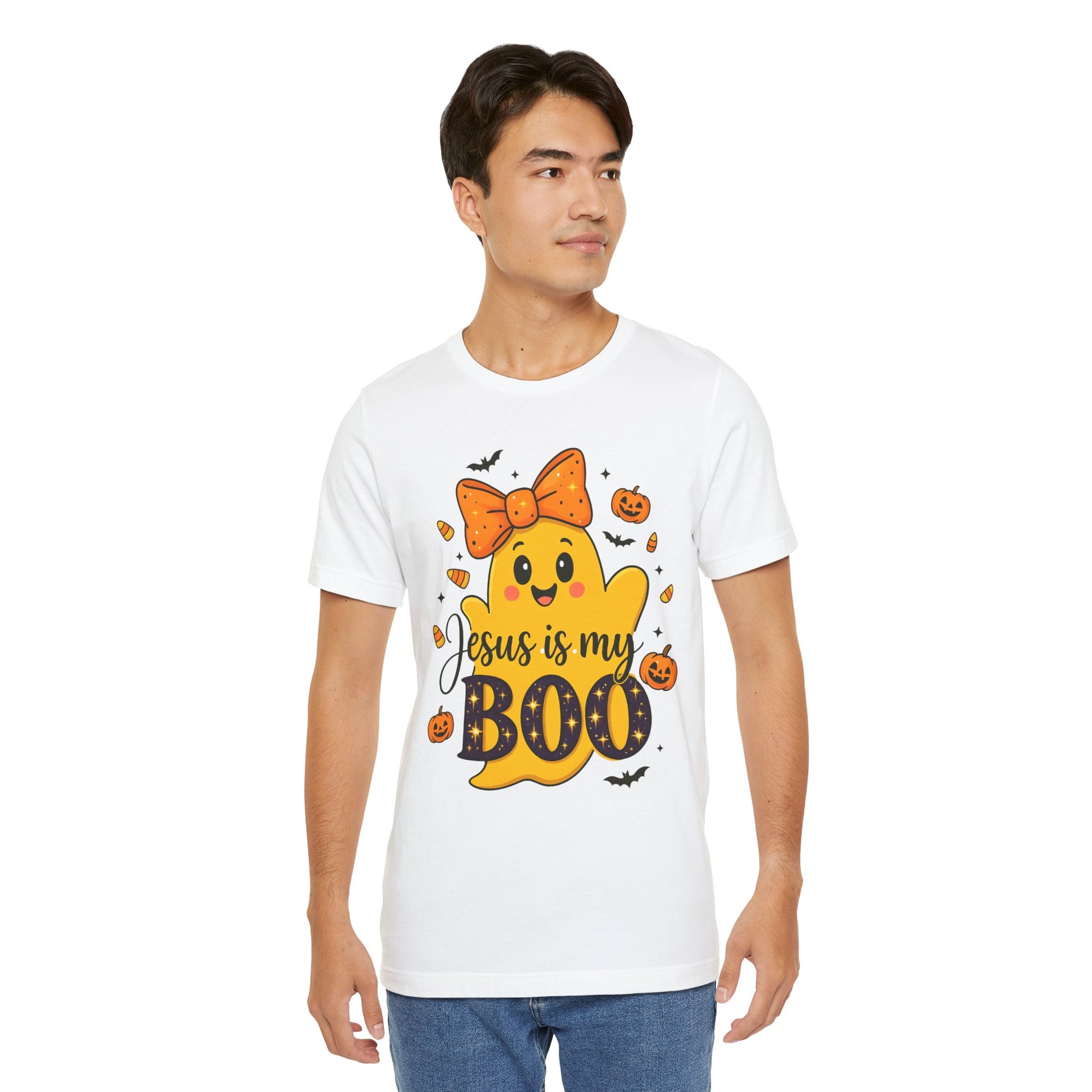 Jesus Is My Boo Shirt – Cute Christian Ghost with Bow Halloween Faith Tee