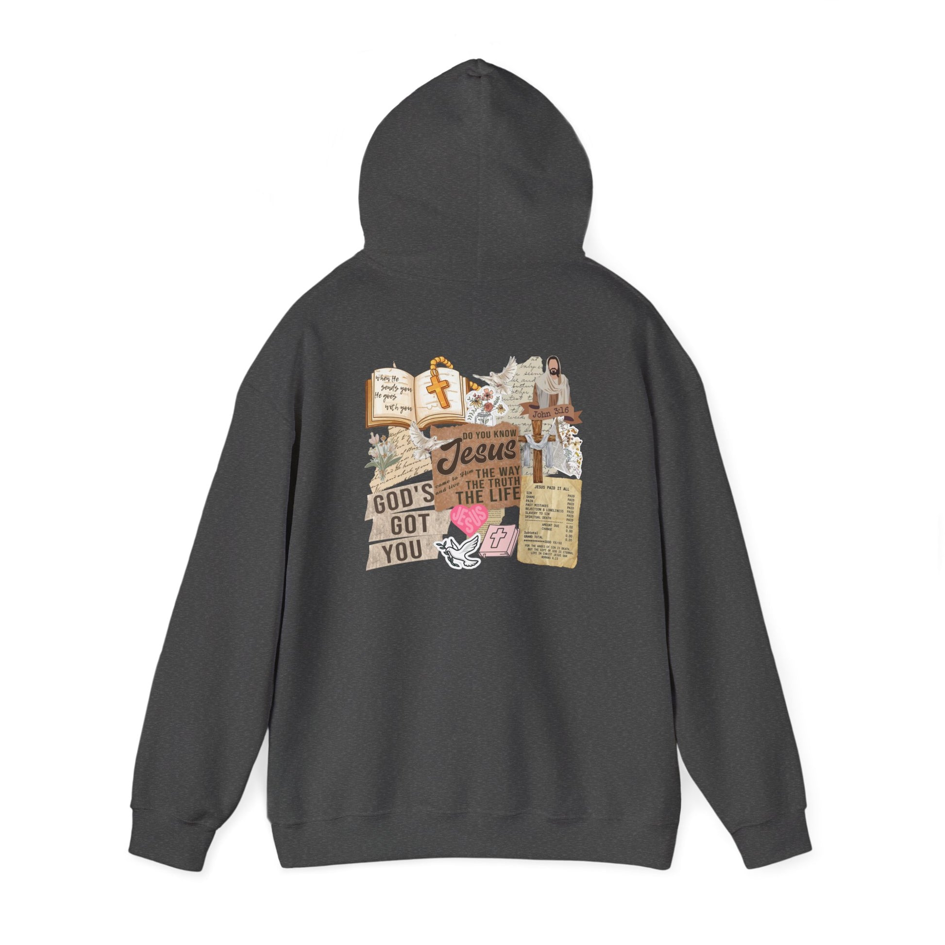 Carry the message of grace with the Jesus Paid It All Christian Hoodie. Featuring a creative collage scrapbook-style design with uplifting Bible verses, this pullover is perfect for believers who want to share their faith through bold and artistic fashion. Great for church, worship nights, or casual everyday wear.
