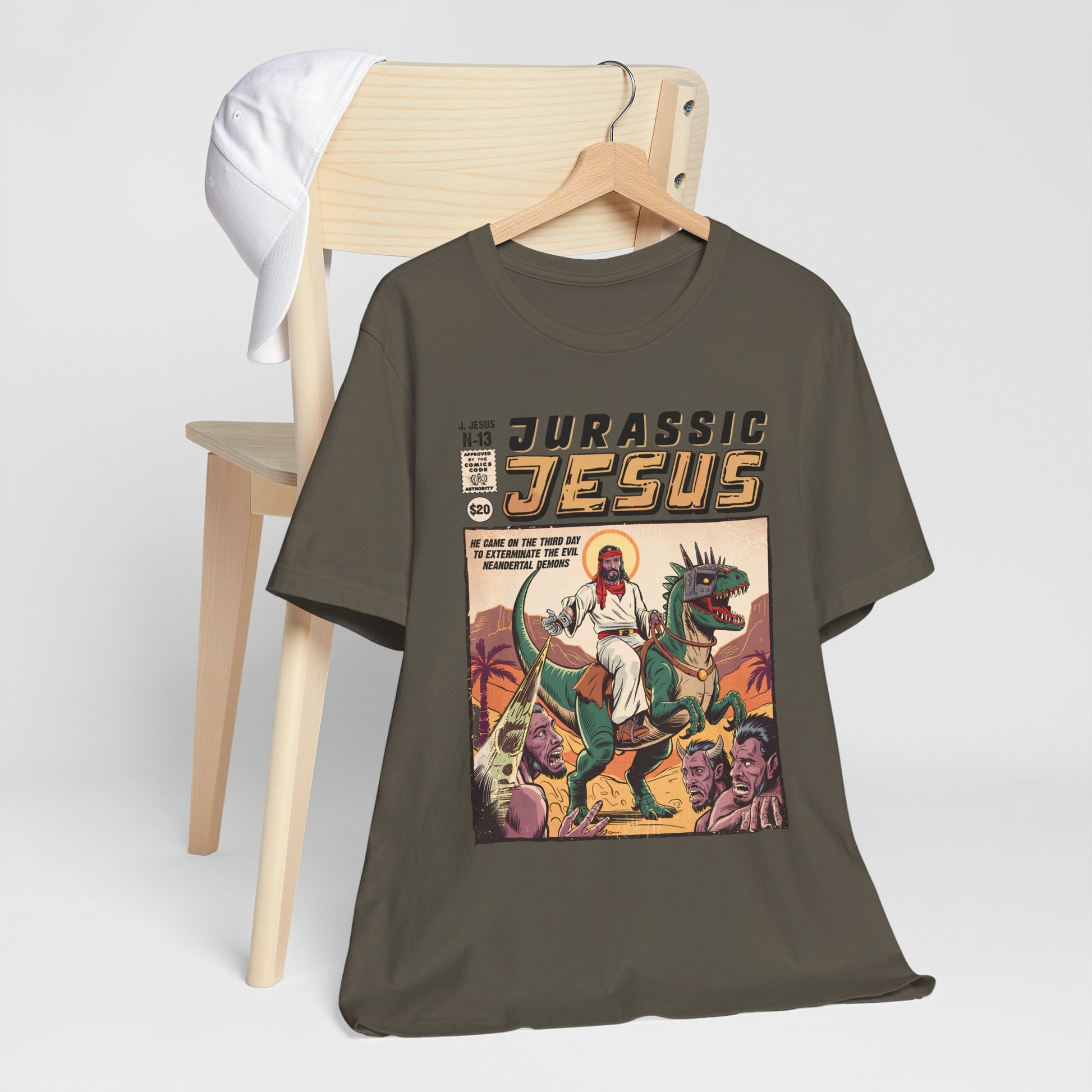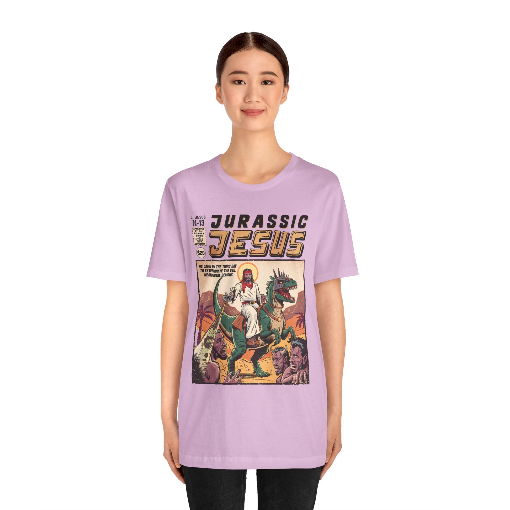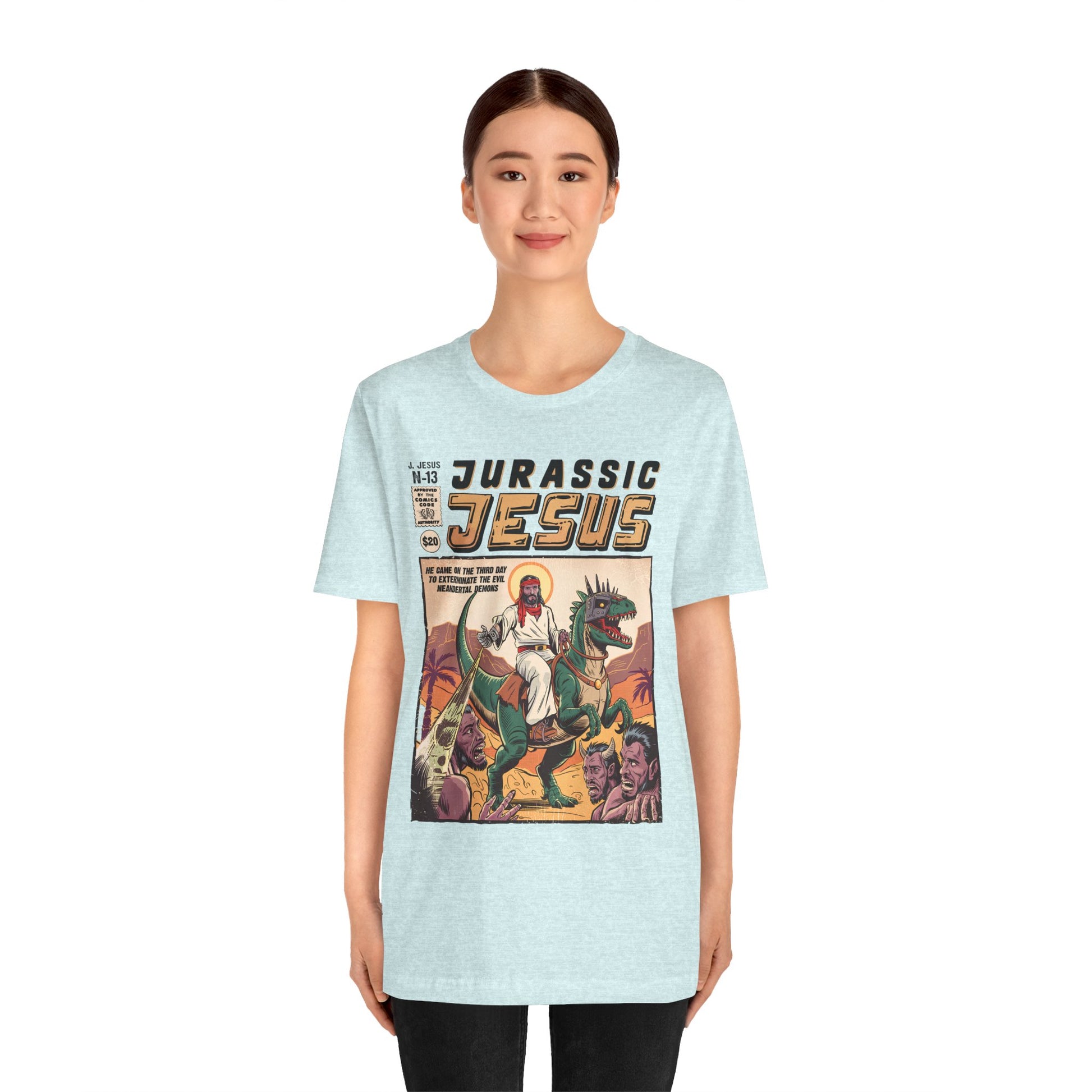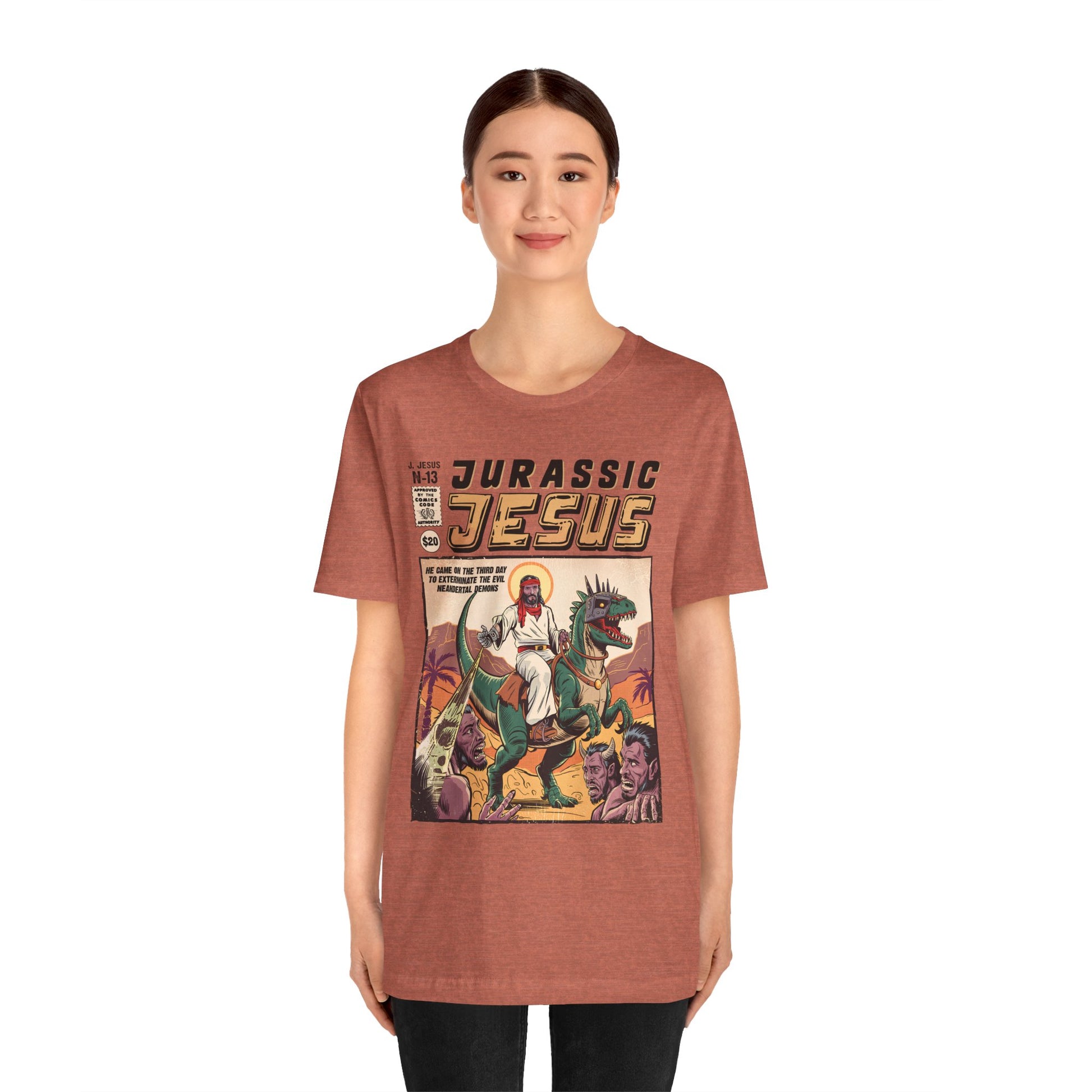 Jurassic Jesus Shirt – Dino-Riding Savior Comic Book Christian Tee