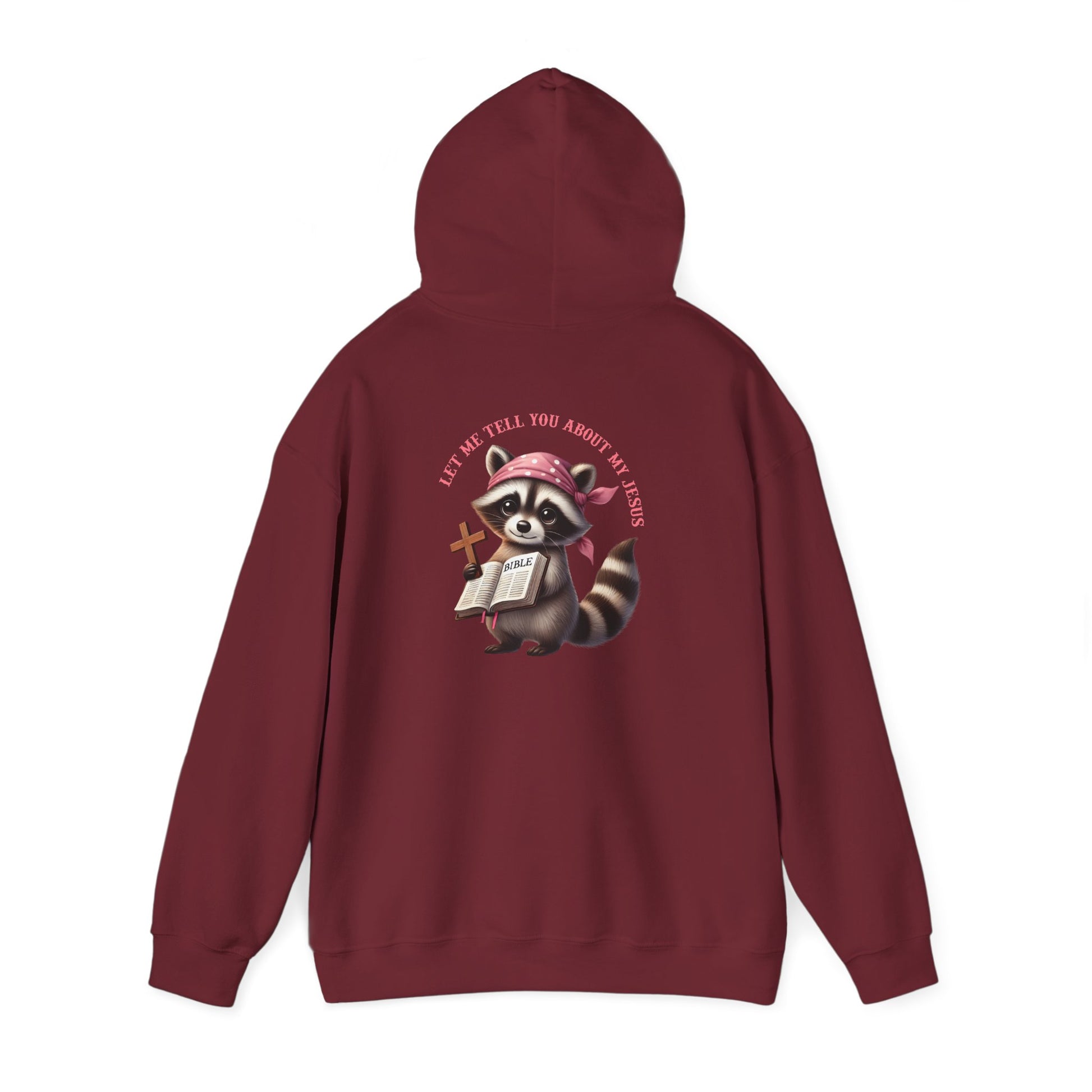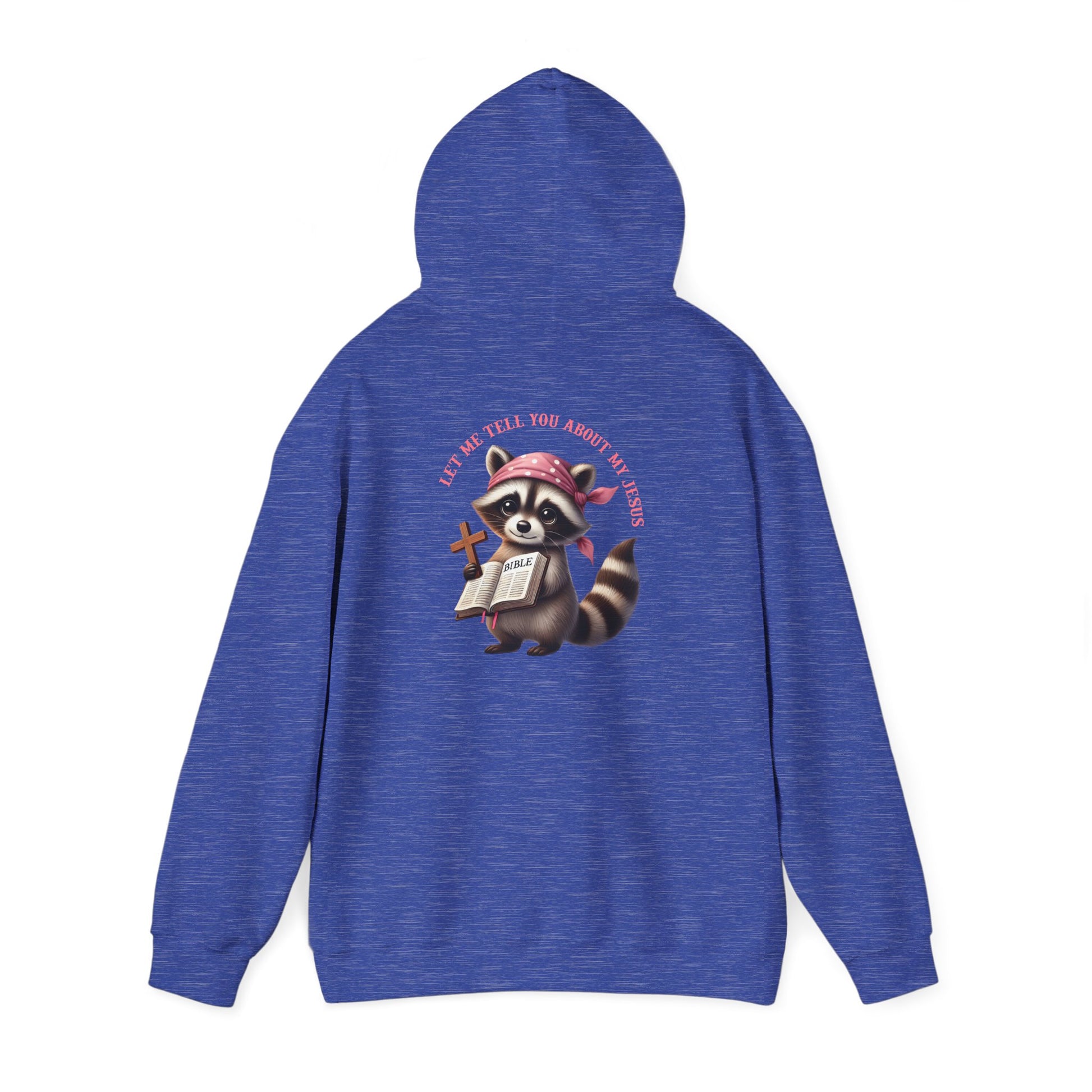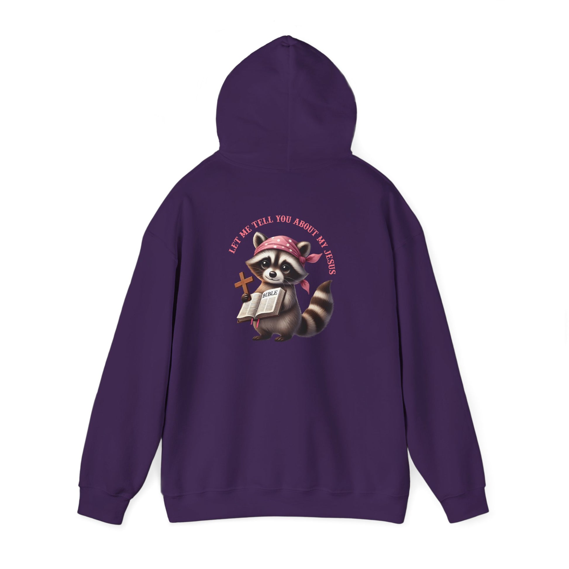 Let Me Tell You About My Jesus Hoodie – Cute Raccoon Bible Christian Pullover