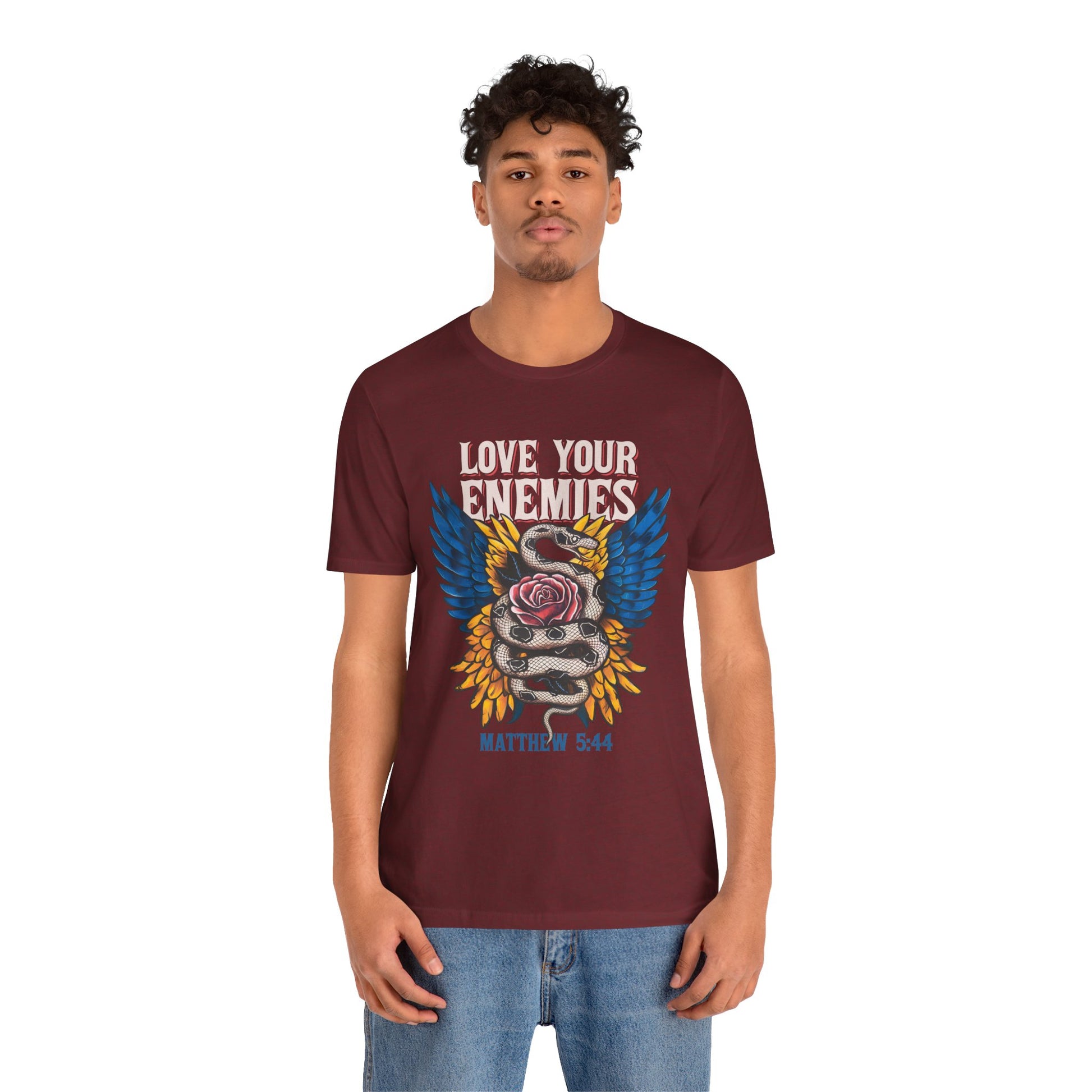 Love Your Enemies Shirt – Christian Matthew 5:44 Angel Wings Scripture Faith Tee
