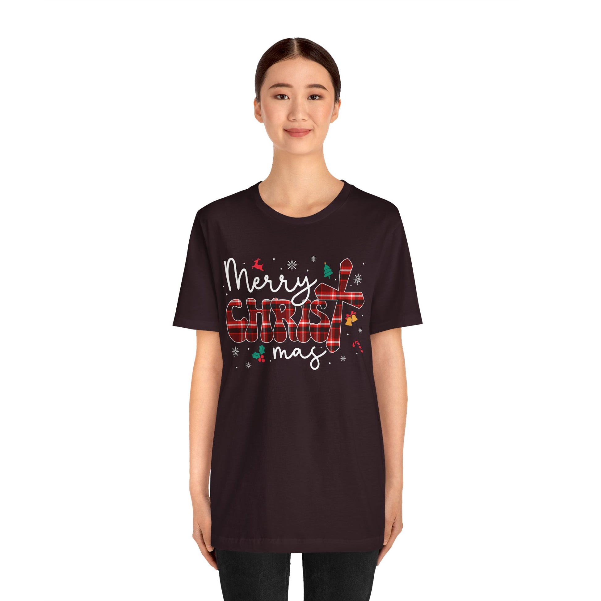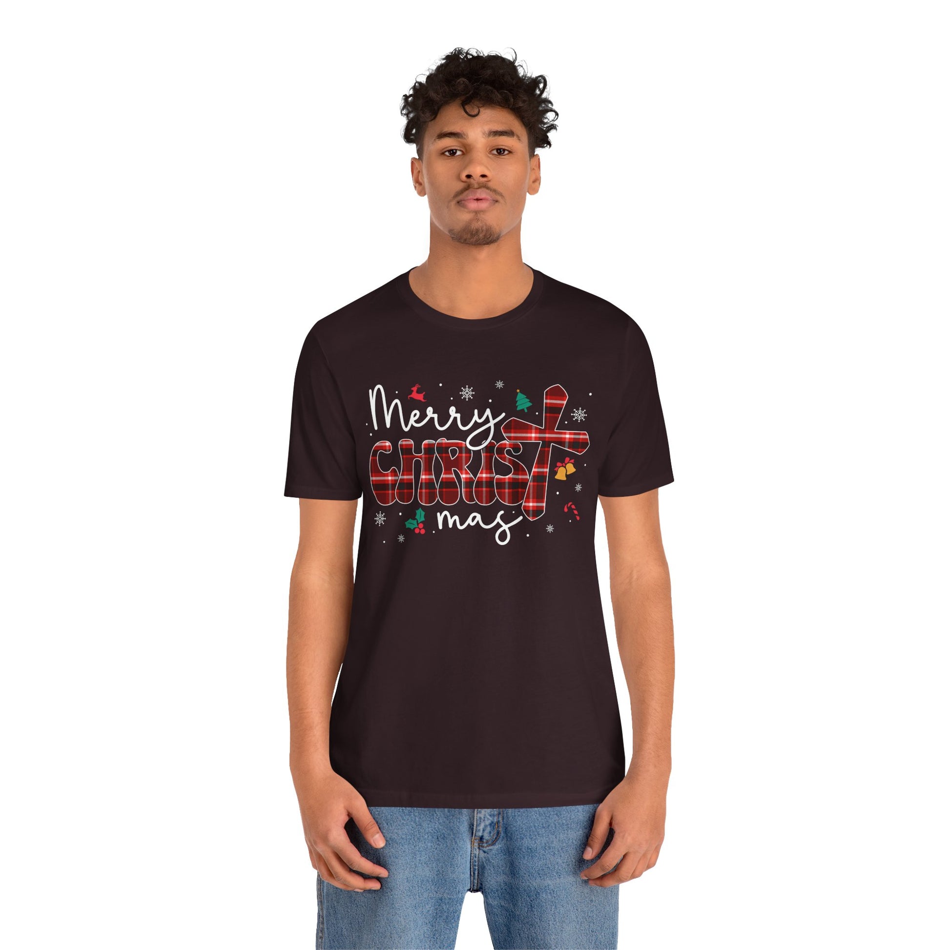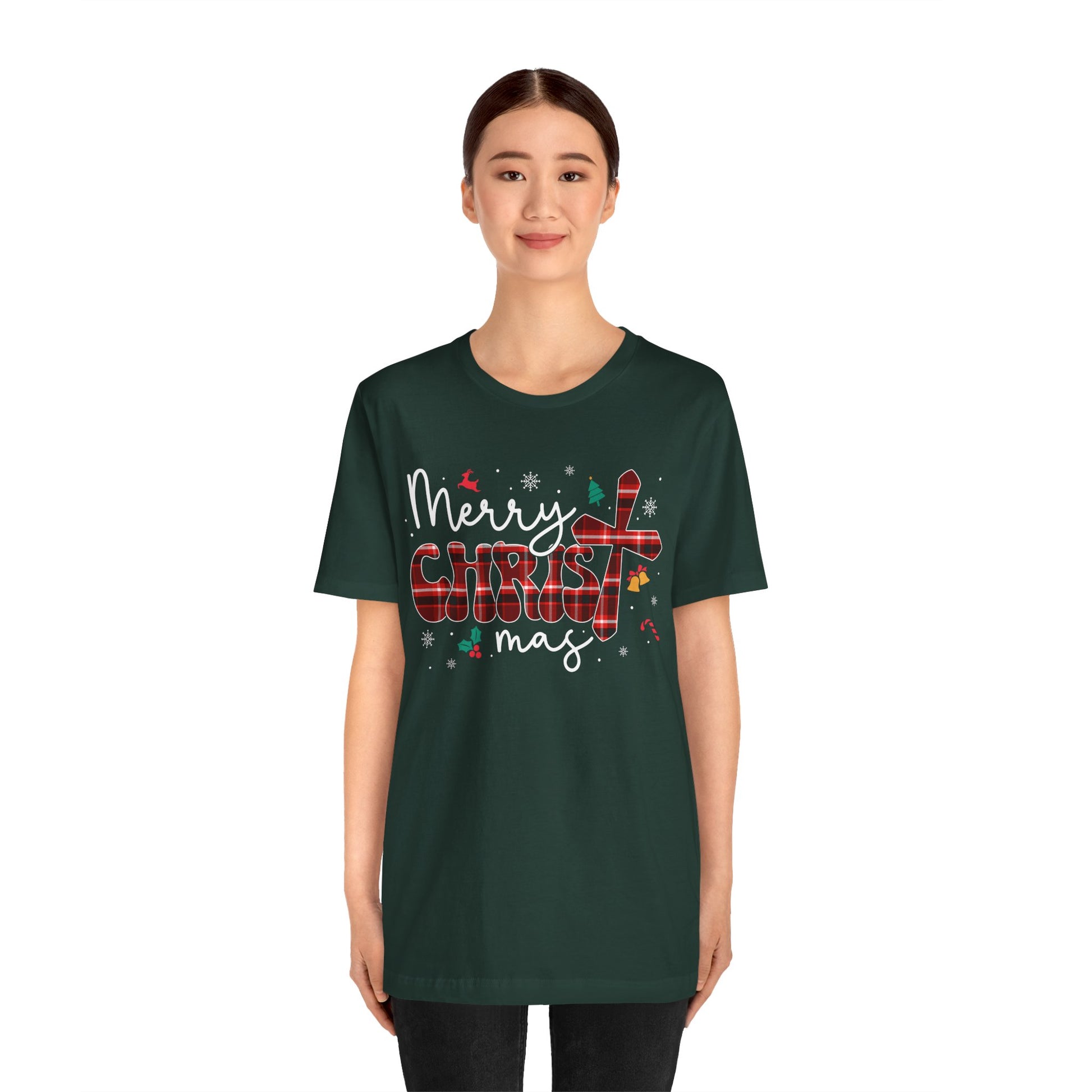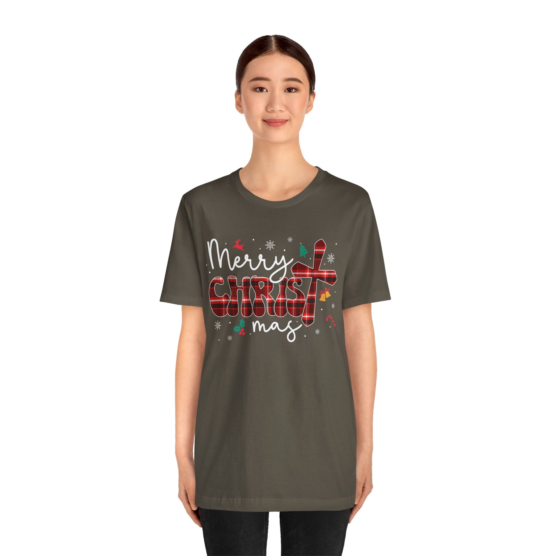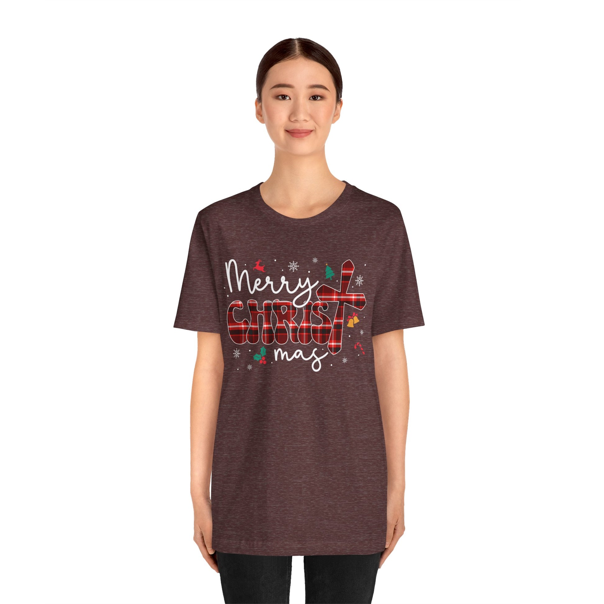 Keep Christ at the center of the season with our Merry Christmas Christian Cross Shirt. Featuring a bold buffalo plaid cross design, this faith-filled tee is perfect for holiday pajamas, family gatherings, and festive Christmas traditions.