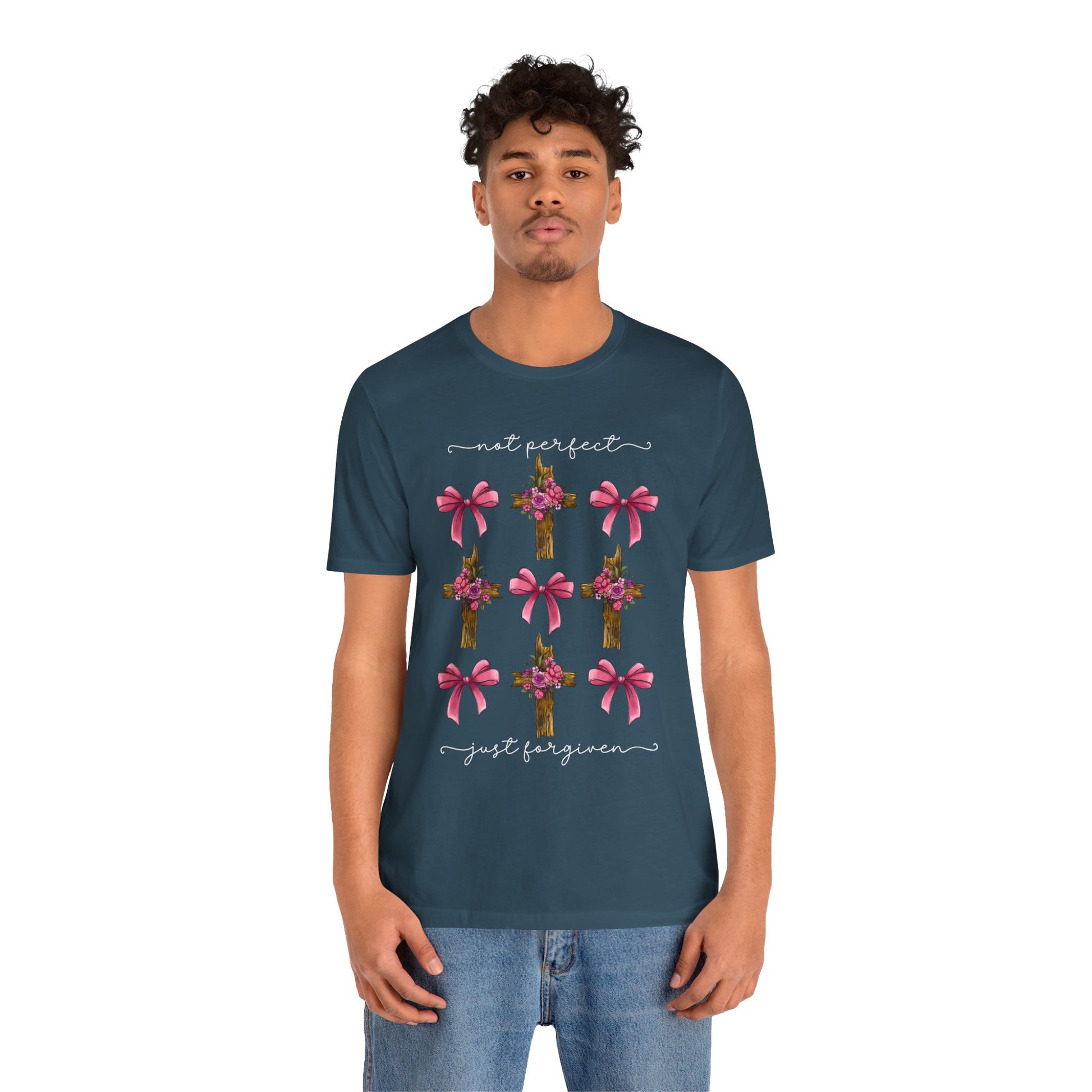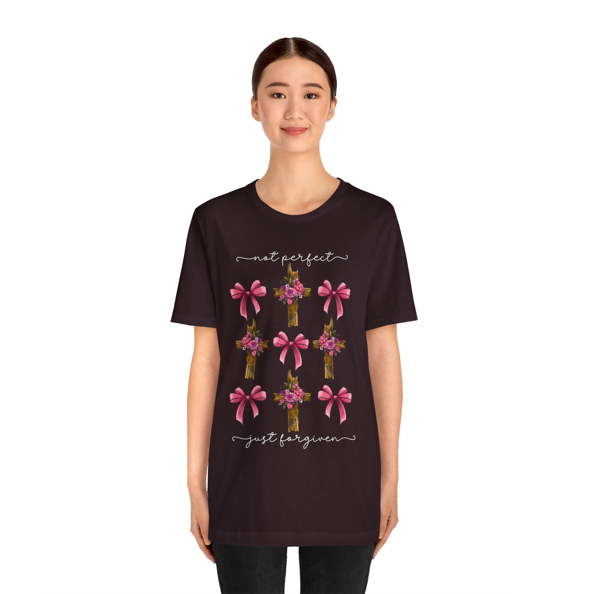 Not Perfect Just Given Shirt – Christian Coquette Bow Cross Faith Tee