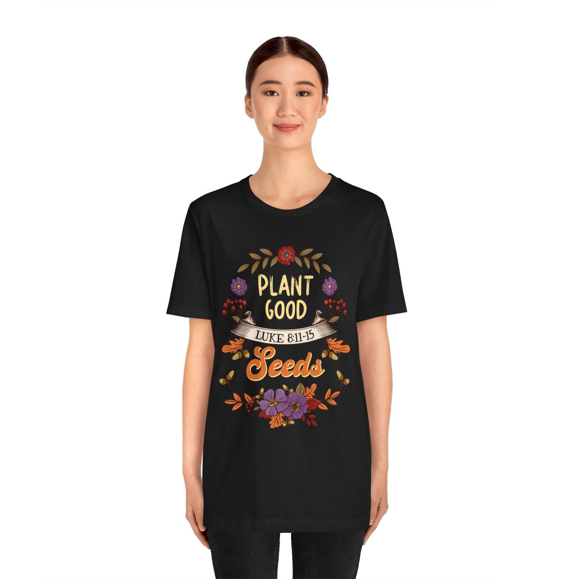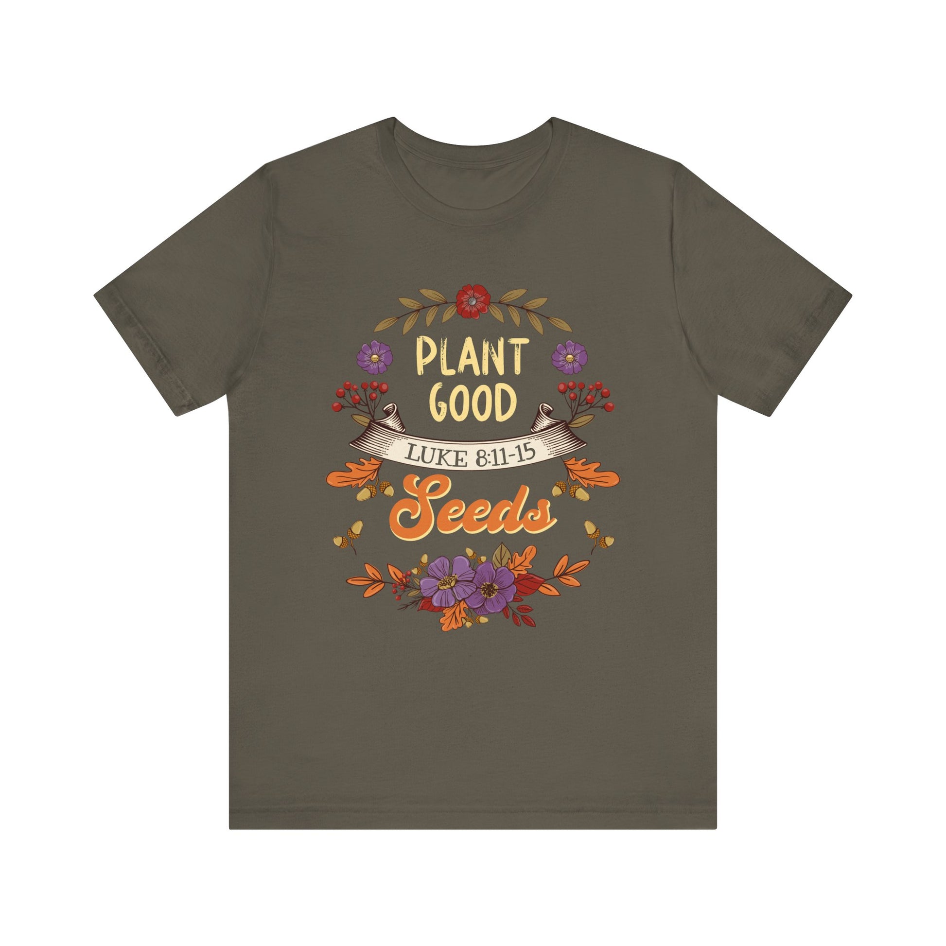 Plant Good Seeds Shirt – Luke 8:11-15 Christian Bible Verse Floral Tee