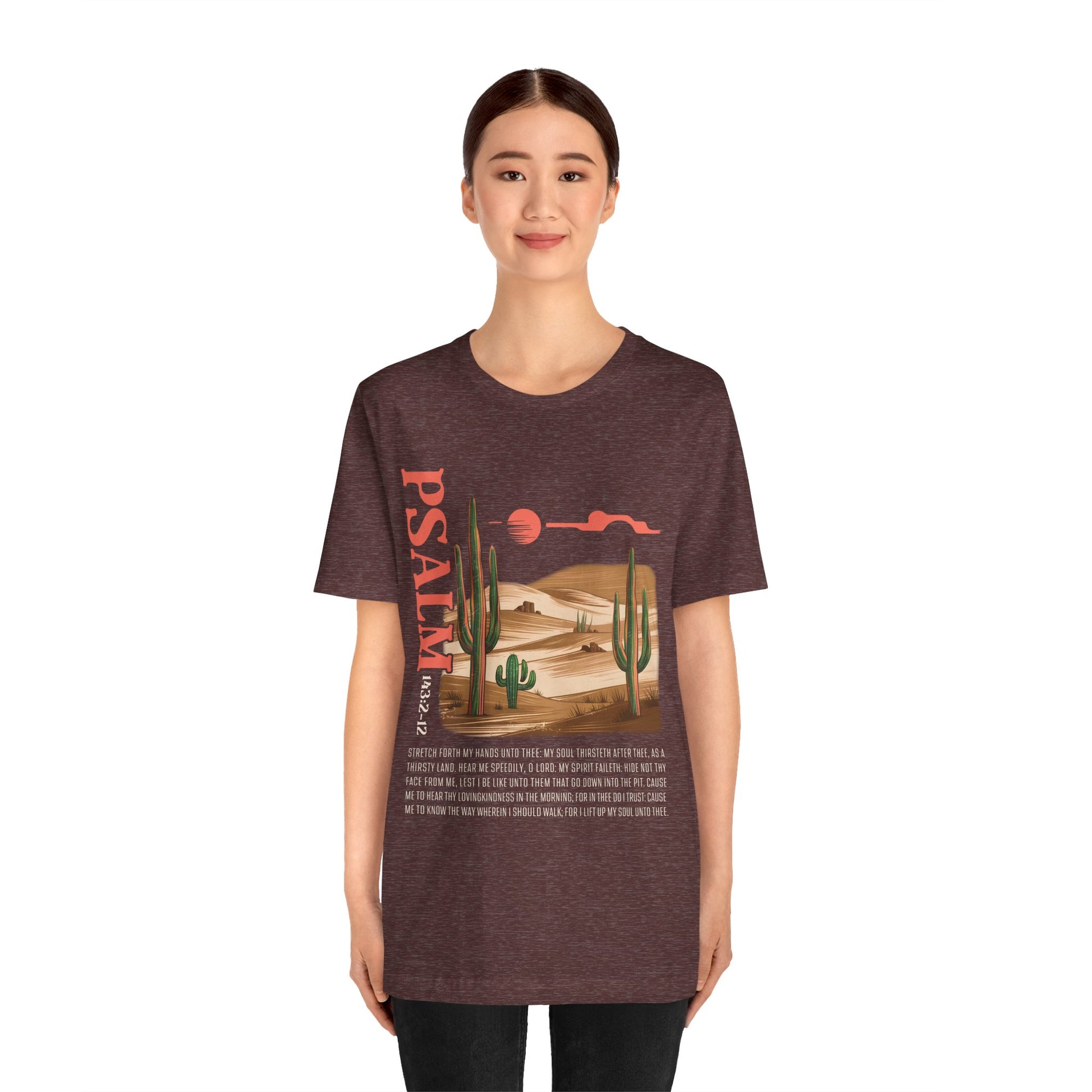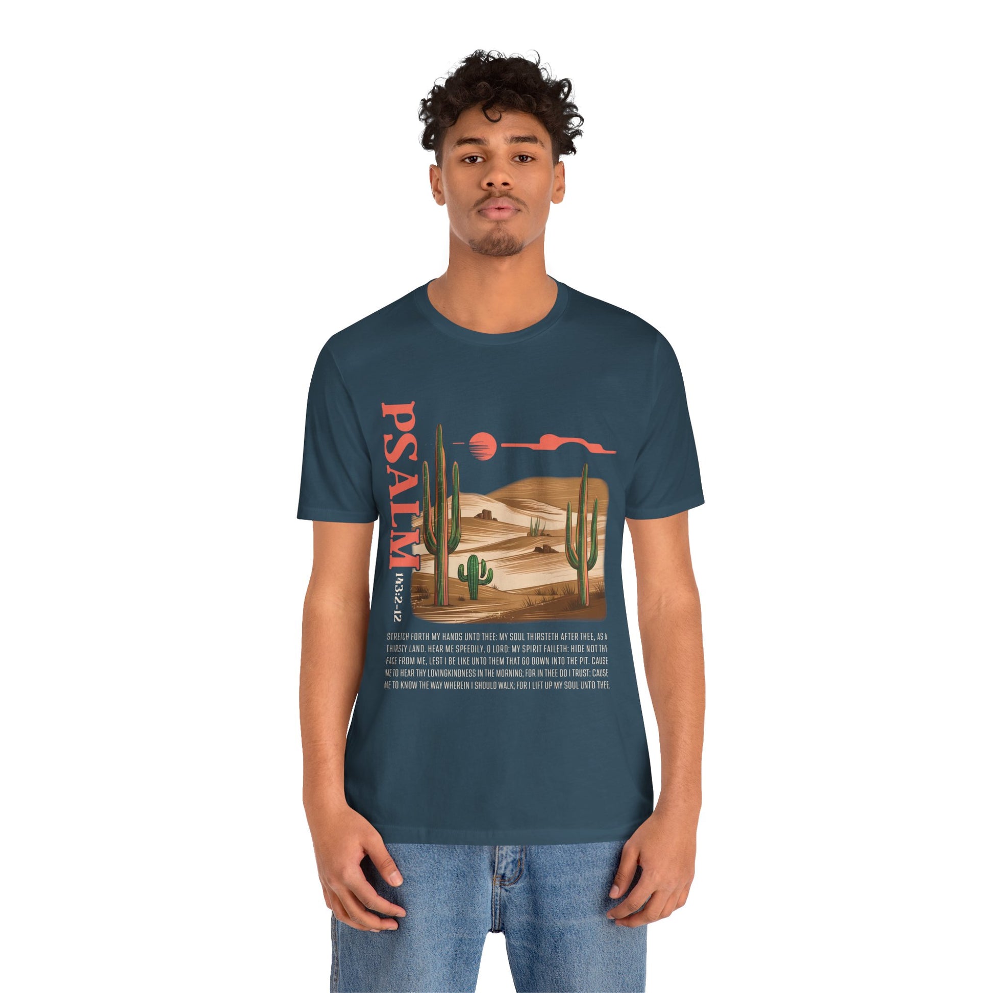 Psalm 143:2–12 Boho Retro Western Christian Howdy Jesus T-Shirt, Desert-Inspired Scripture Tee