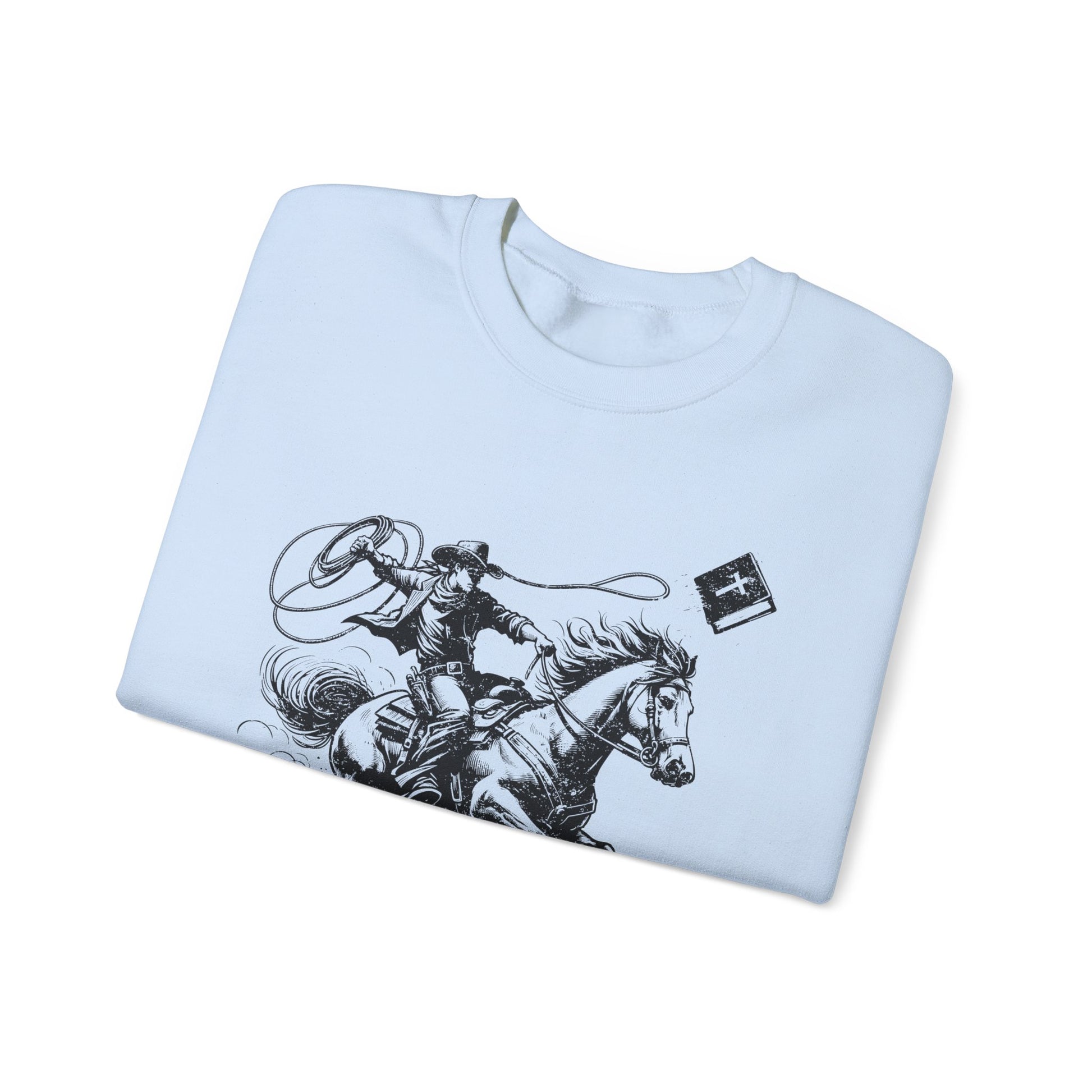 Retro Cowboy Riding Horse Sweatshirt – Christian Scripture Western Rodeo Pullover