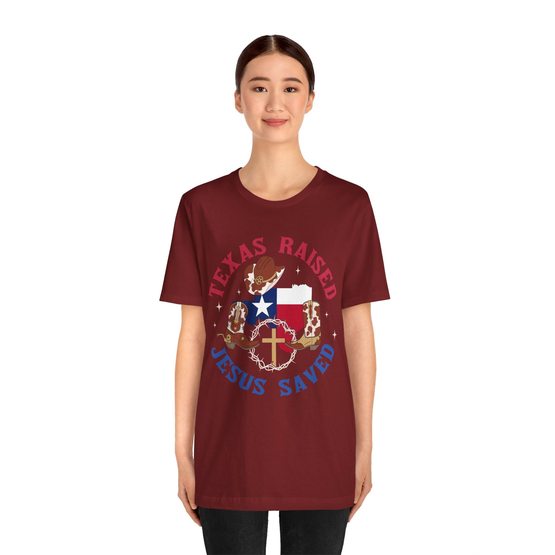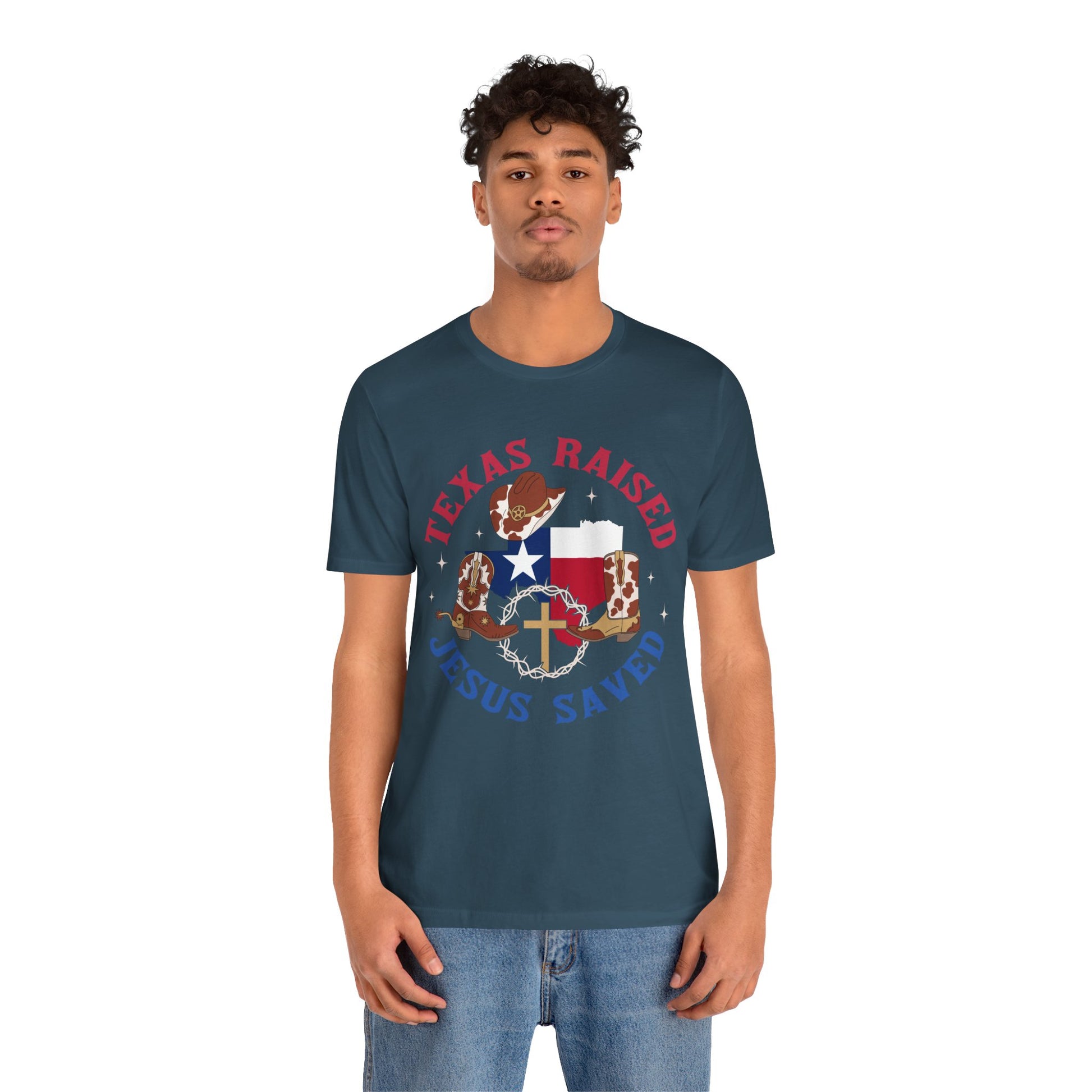 Southern Jesus Saved Shirt – Texas Raised Cowboy Christian Western Tee