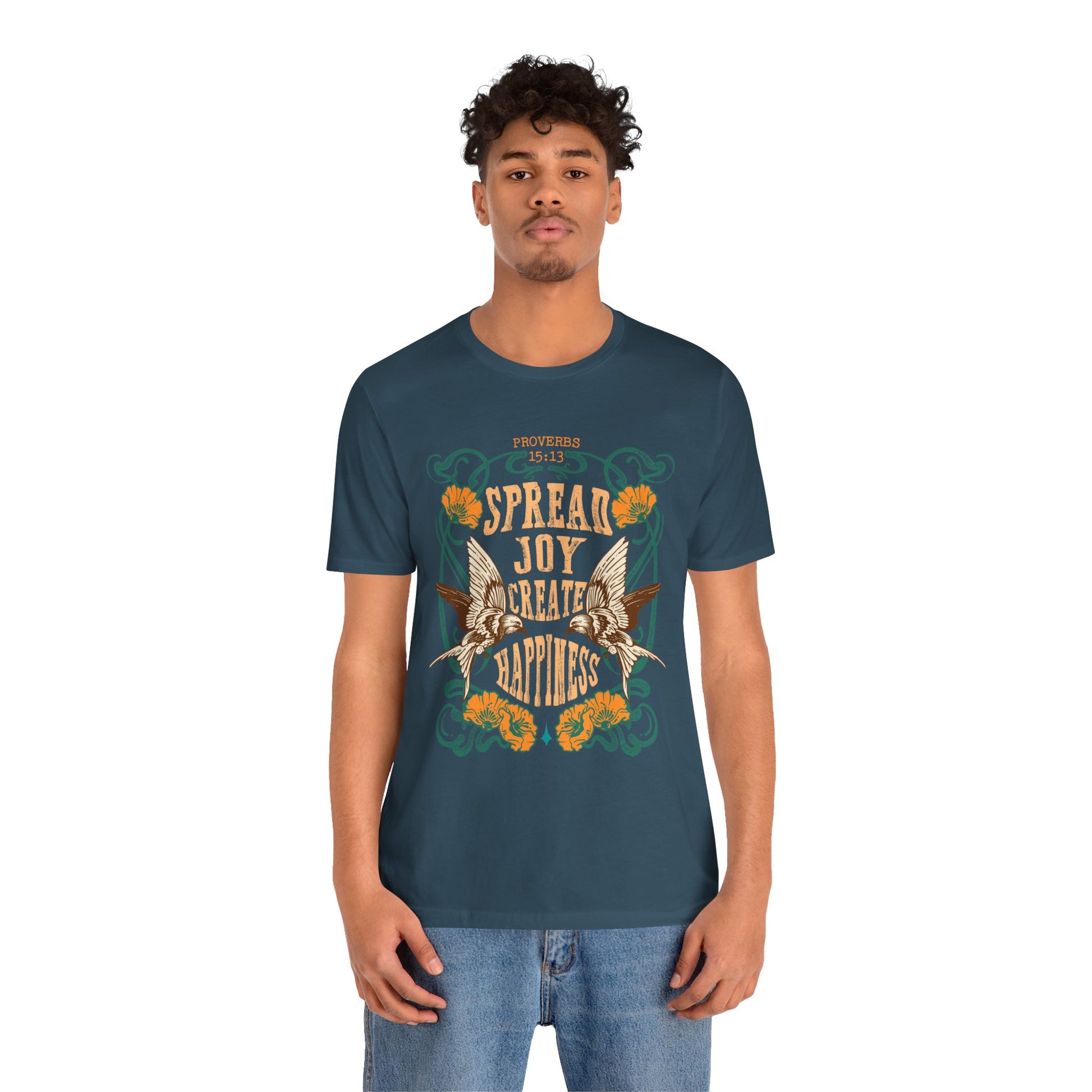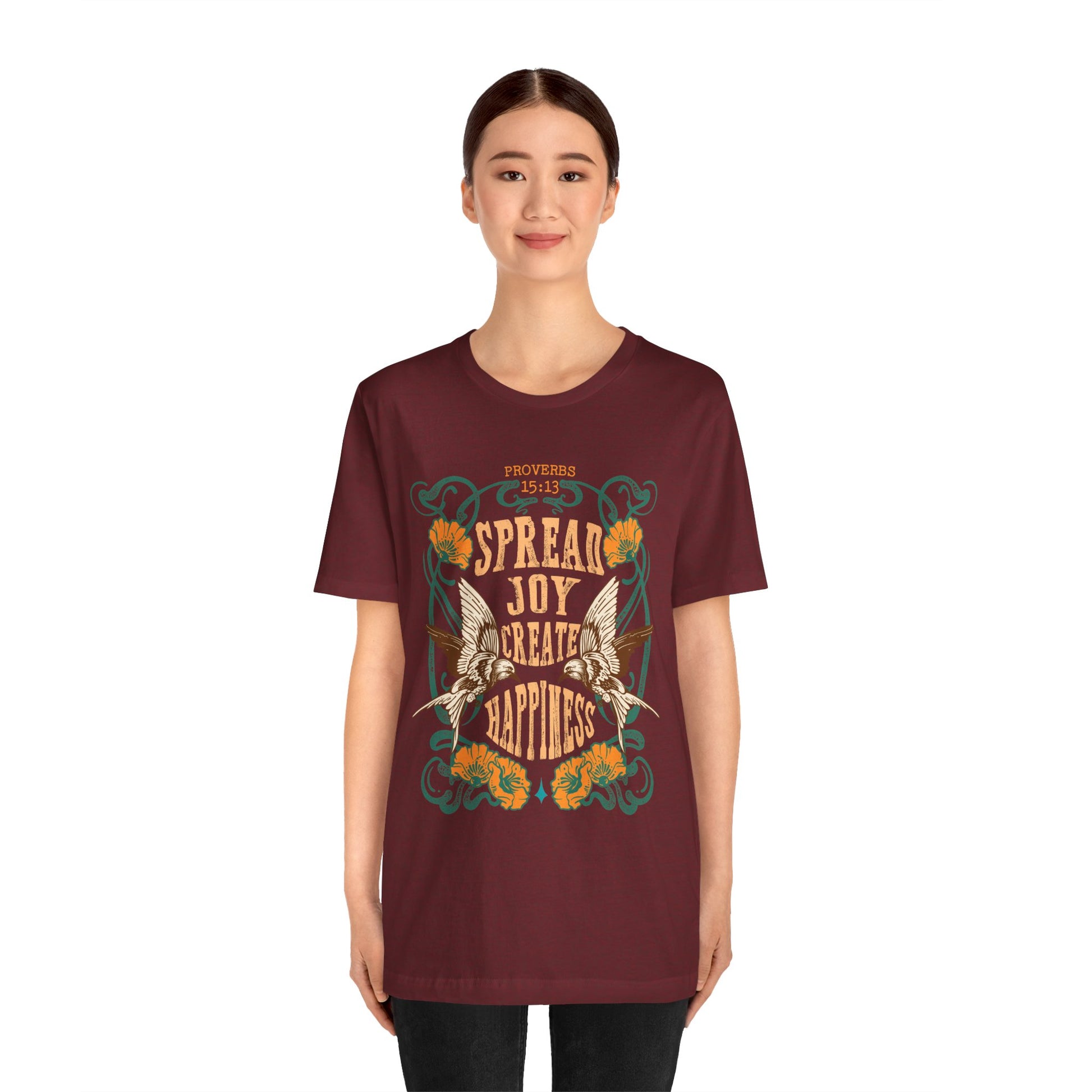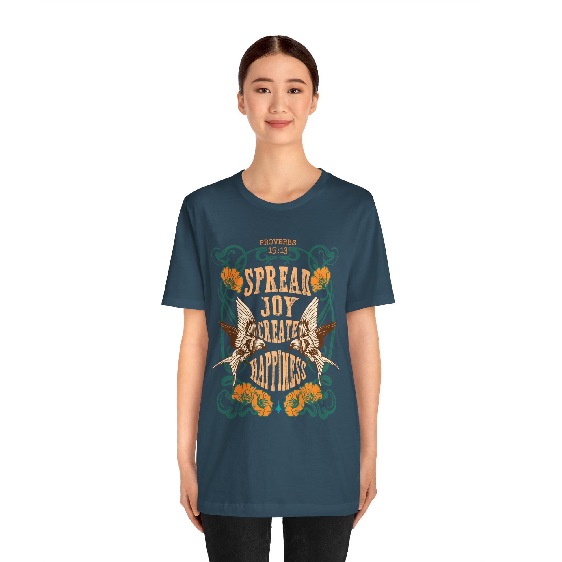 Spread Joy Create Happiness Shirt – Christian Floral Bird Uplifting Faith Tee