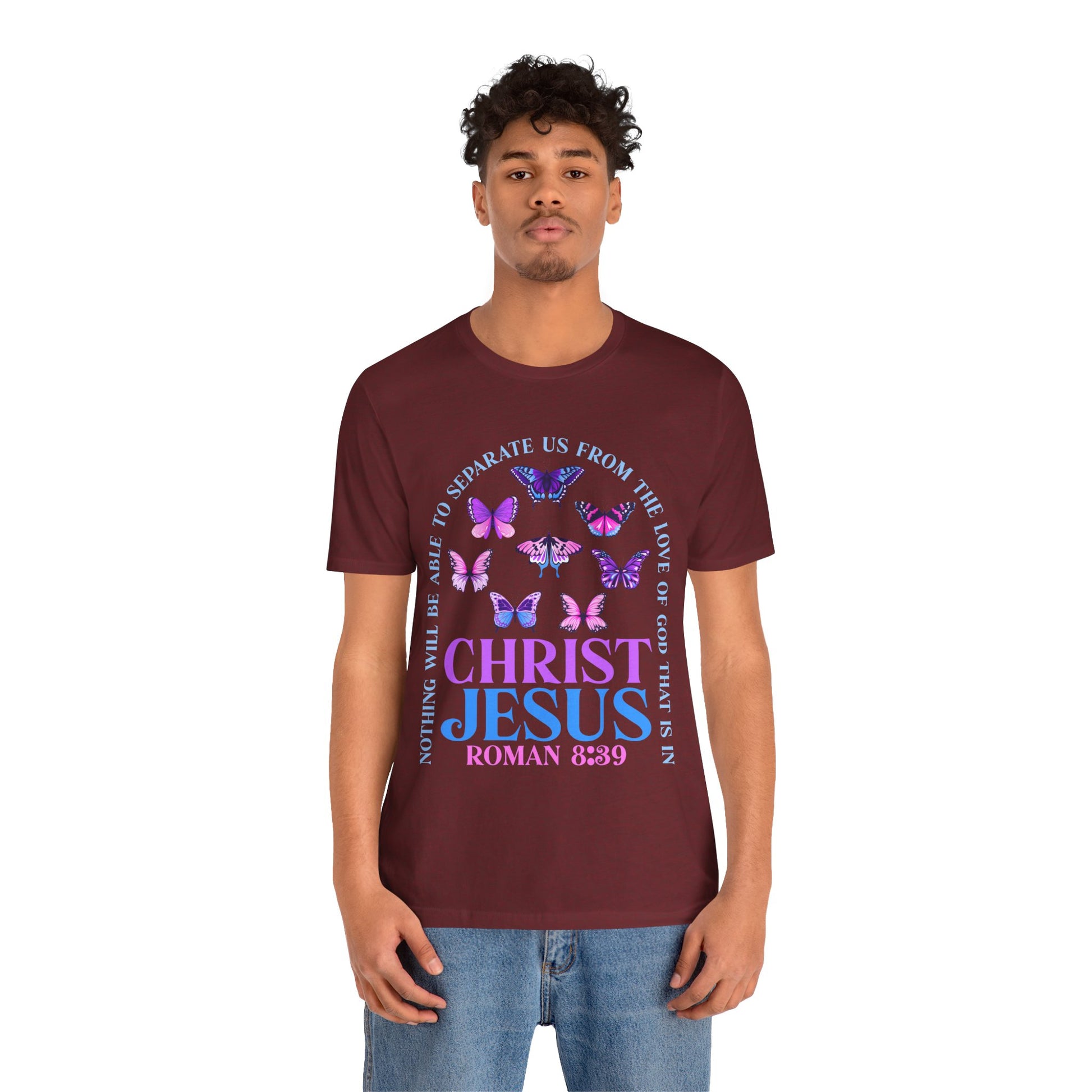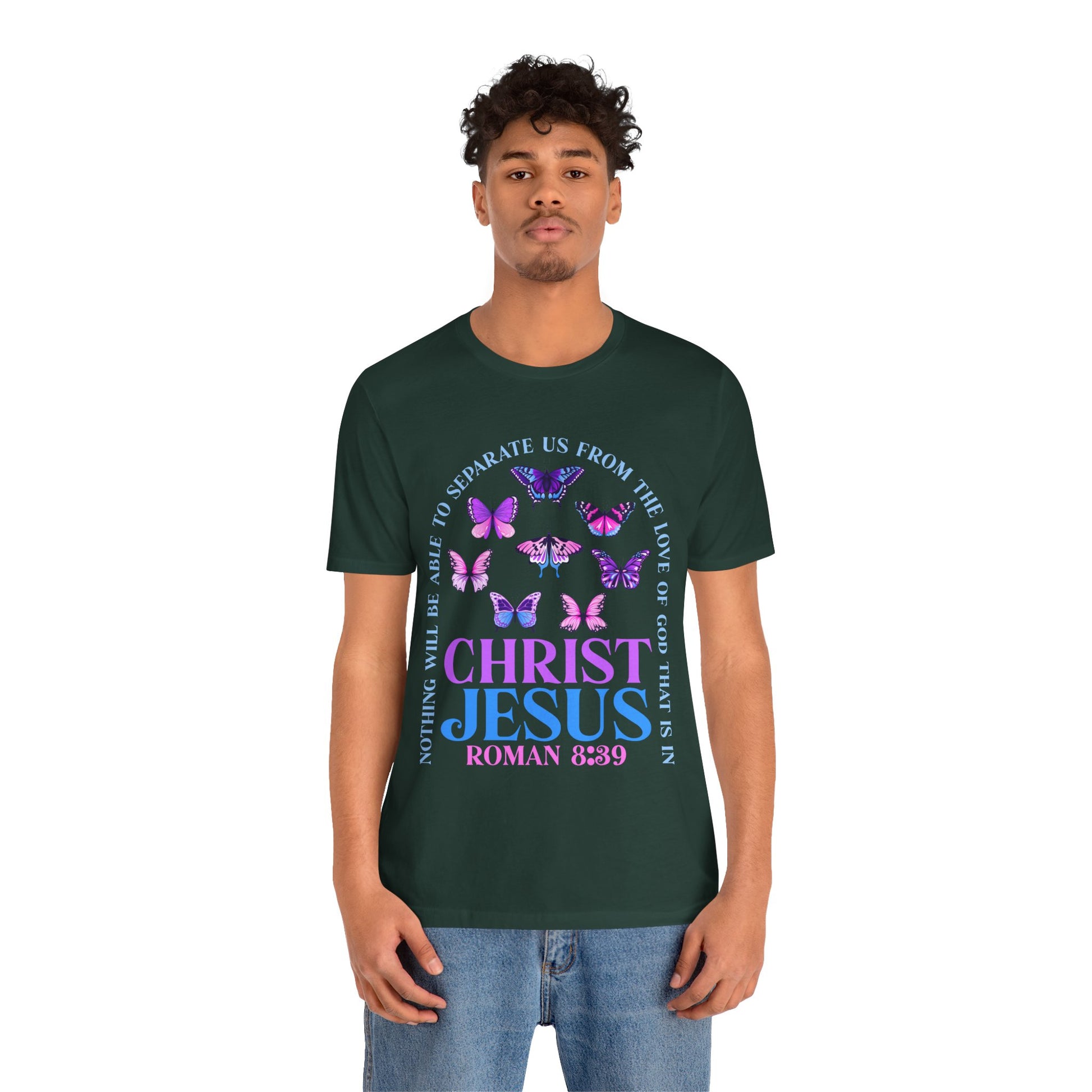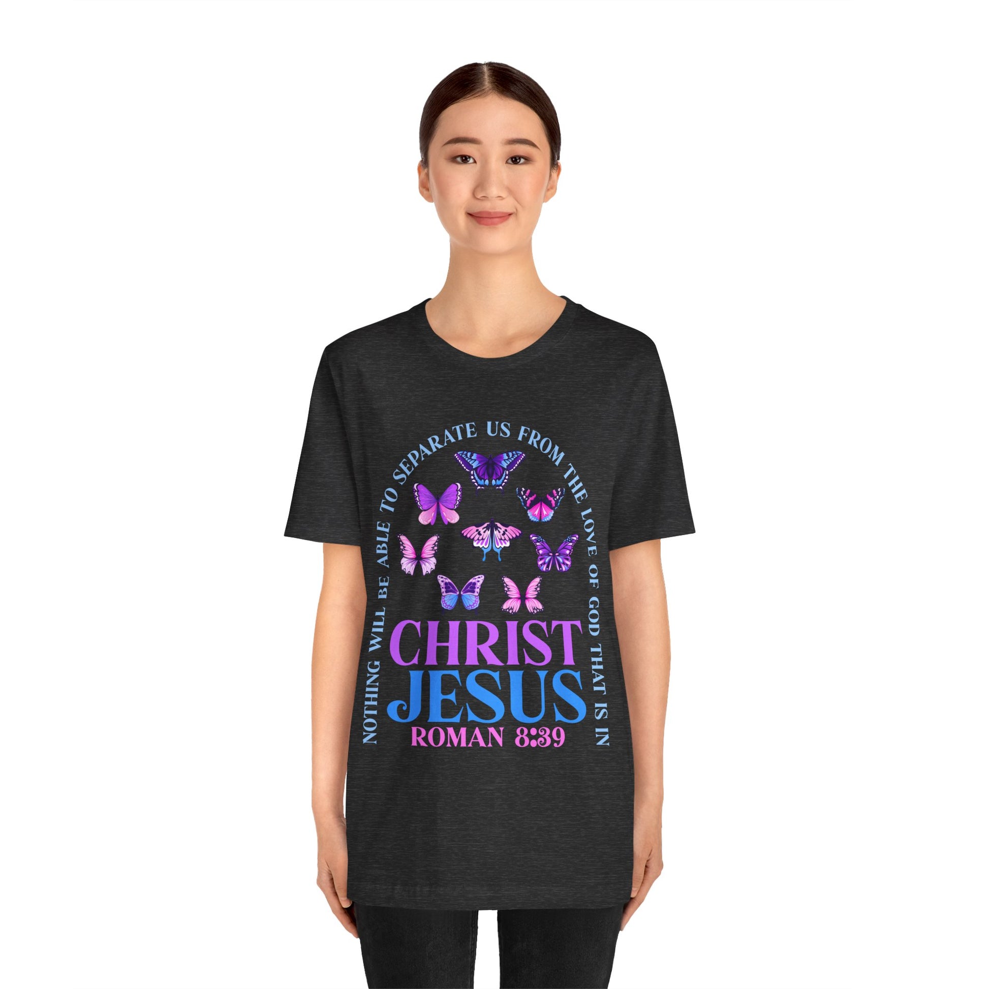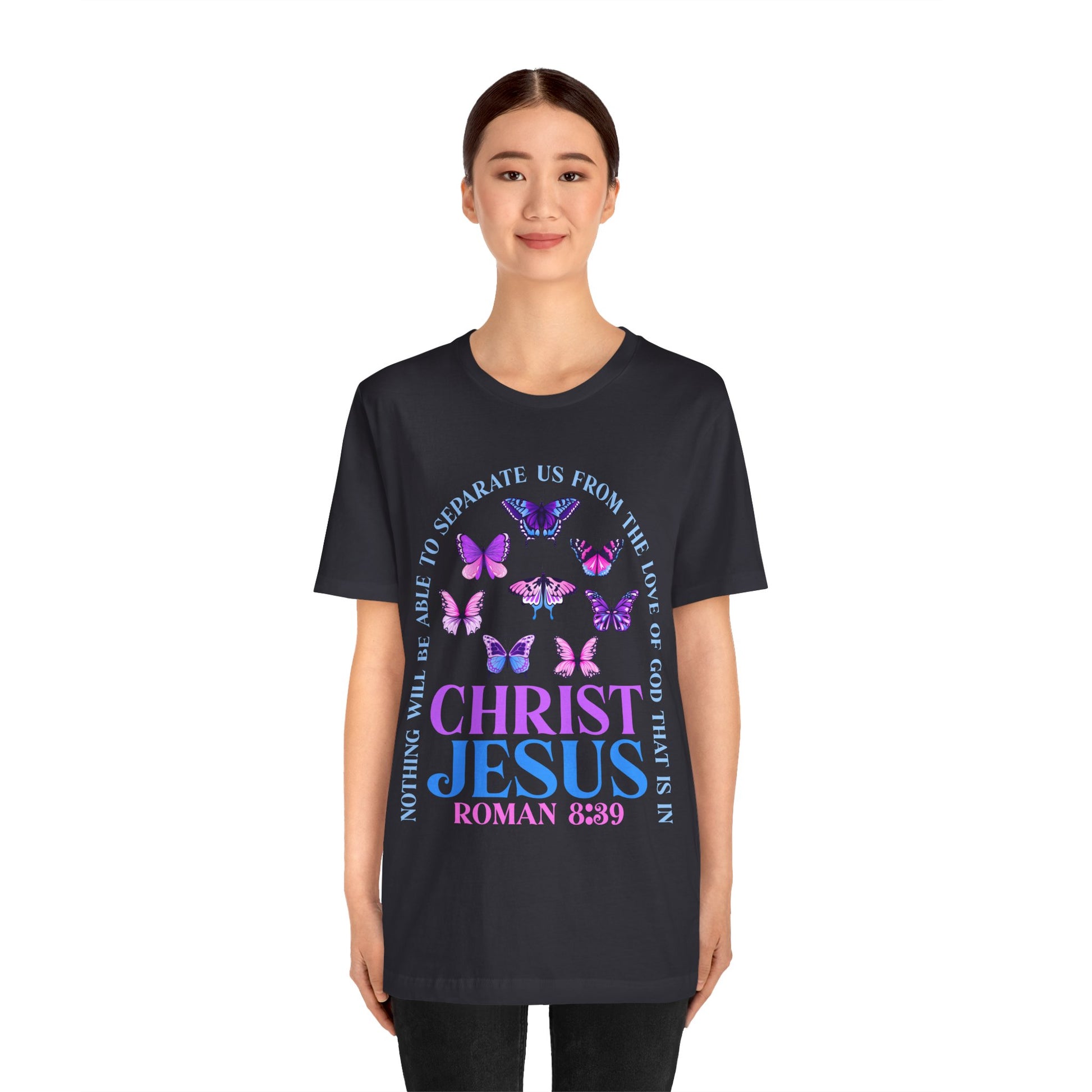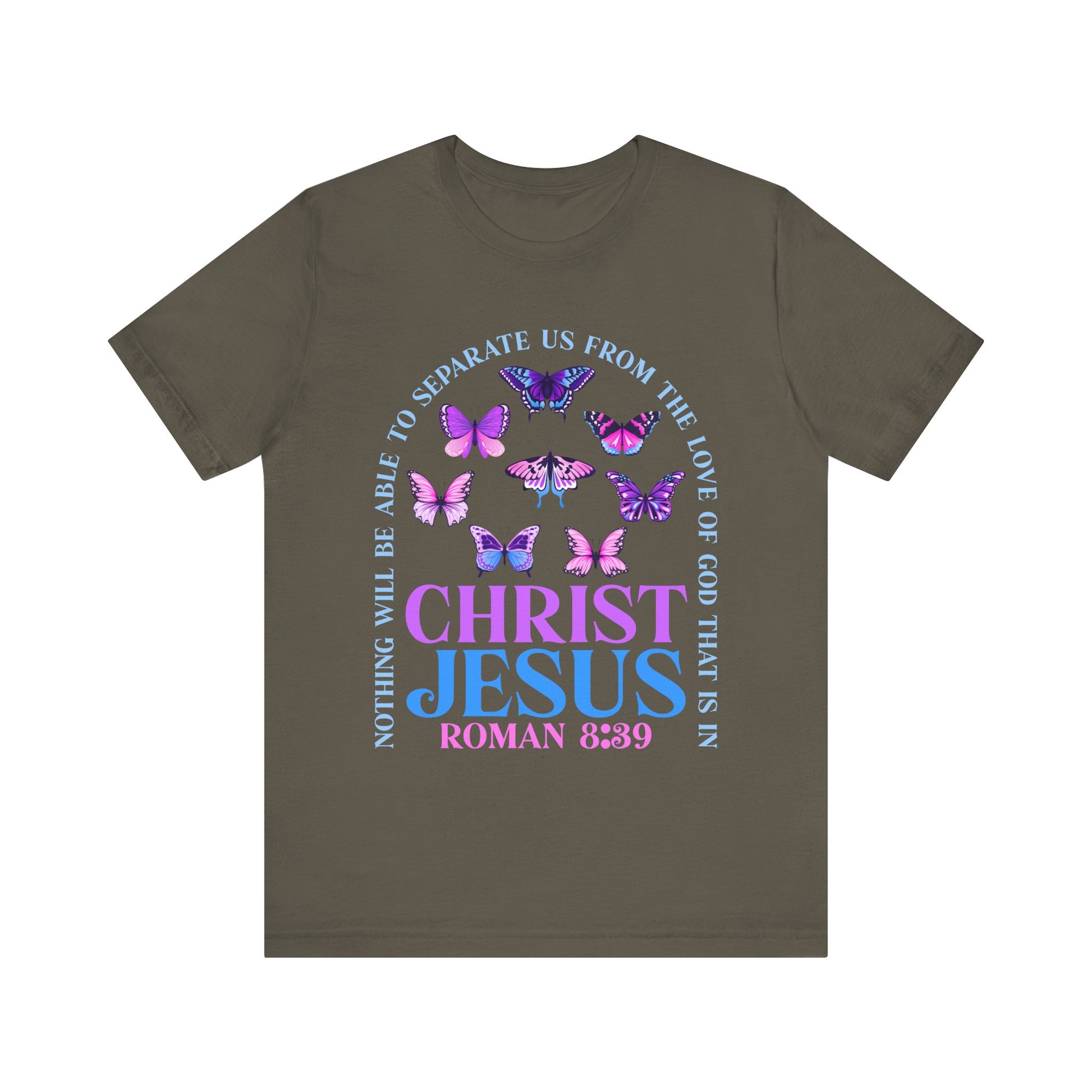 The Love of God in Christ Jesus Shirt – Boho Butterfly Romans 8:39 Faith Tee