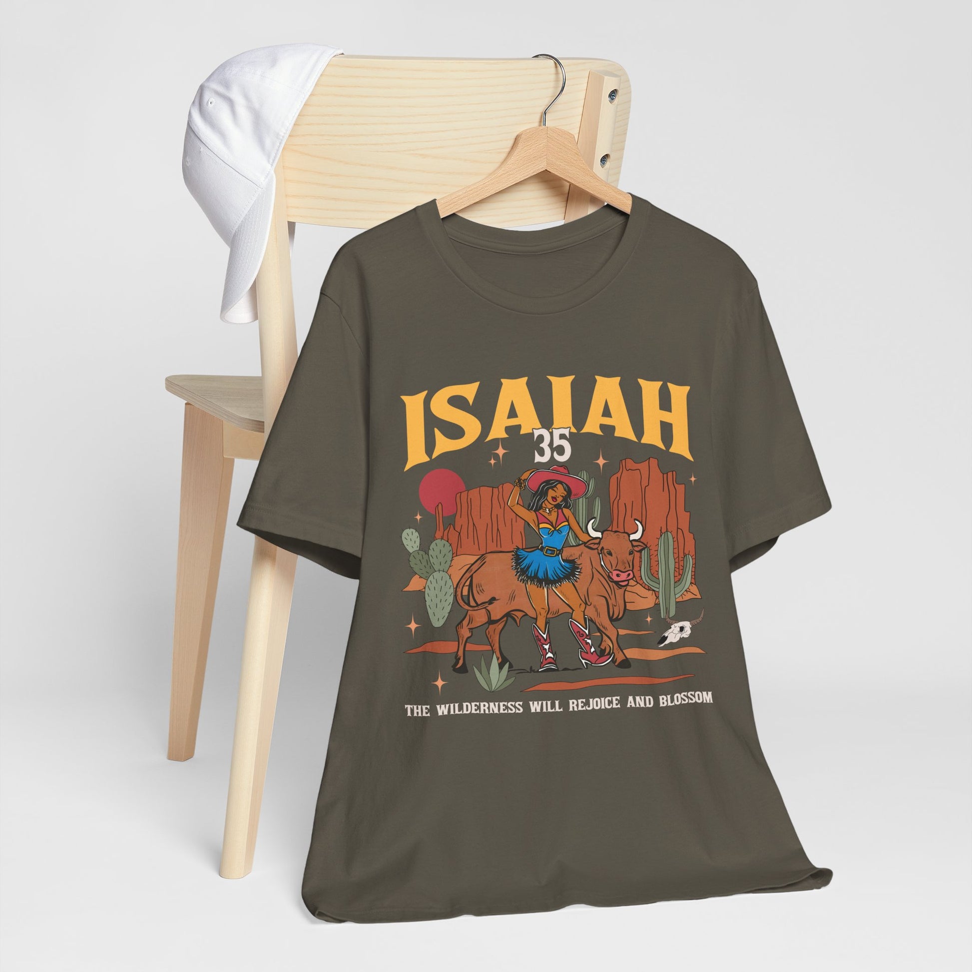 Celebrate faith and renewal with the The Wilderness Will Rejoice and Blossom Christian Shirt. Featuring a rustic Western design inspired by Scripture, this tee is perfect for believers who love cowboy style, rodeo life, and Christ-centered encouragement. Great for church, Bible study, or casual everyday wear.