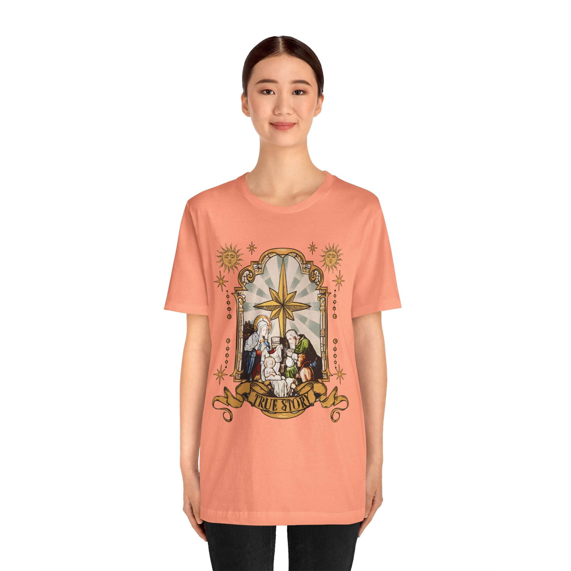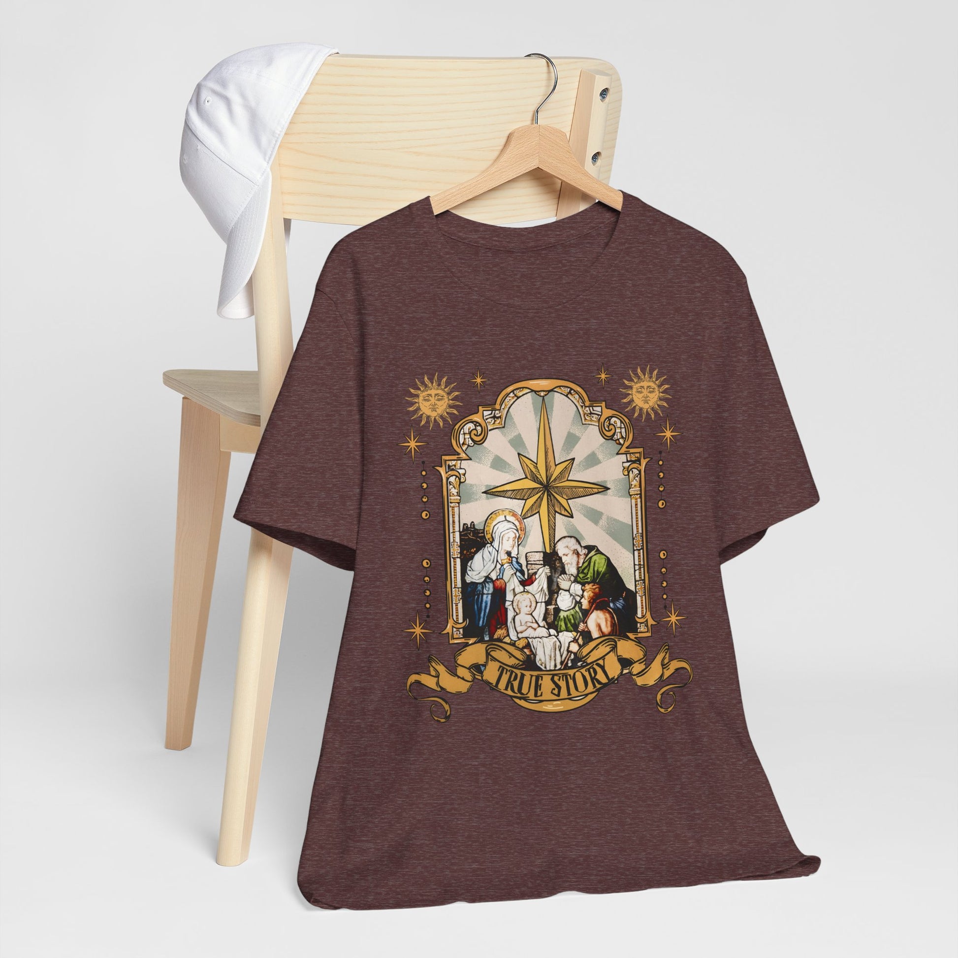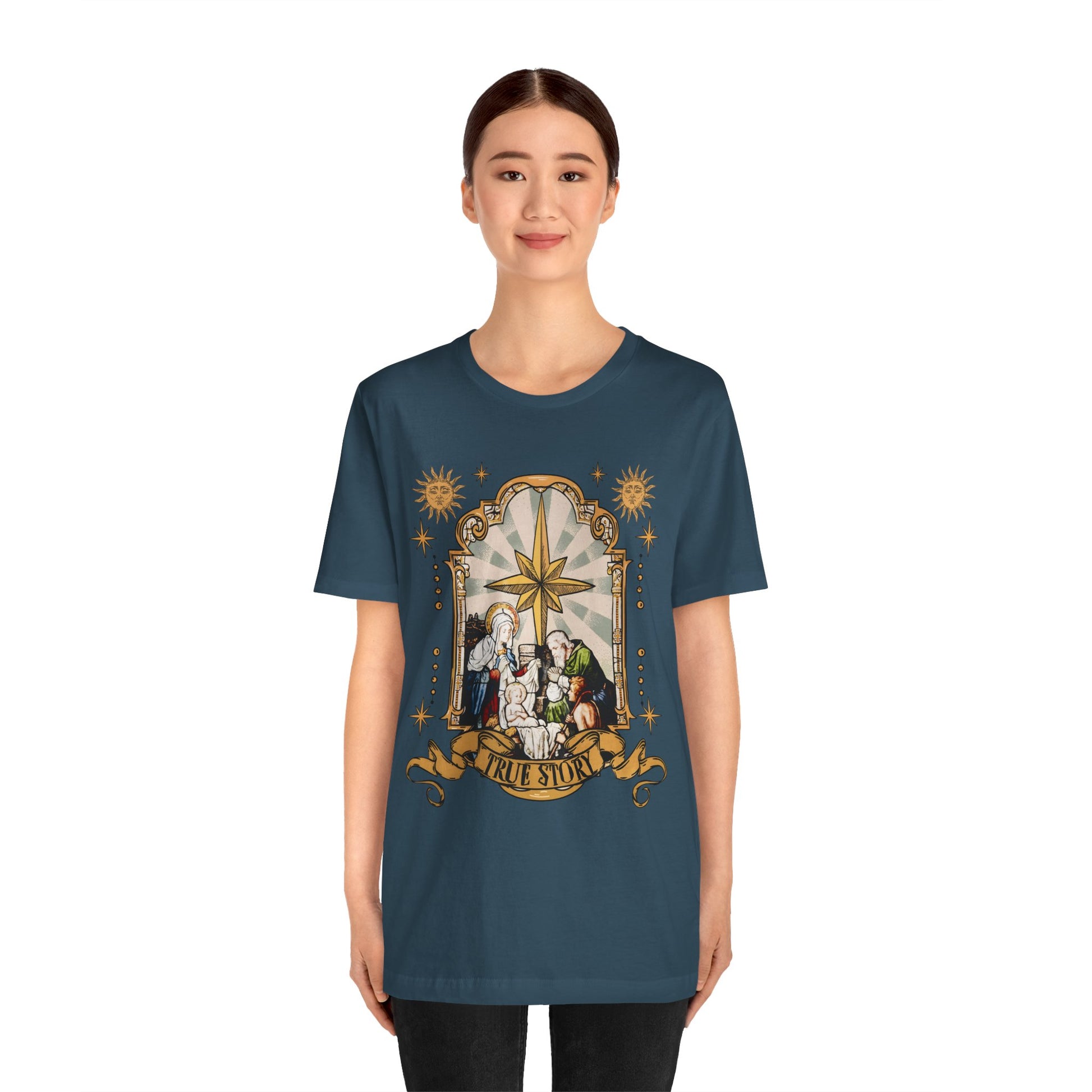 Celebrate the real meaning of Christmas with our True Story Jesus Shirt. Featuring a Nativity-inspired design with the message “True Story”, this Christian tee is a cute and faith-filled way to honor Christ’s birth during the holiday season. Perfect for Christmas pajamas or casual festive wear.