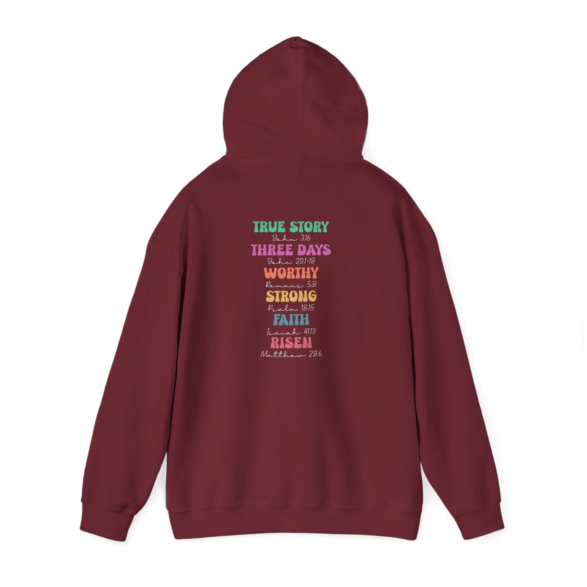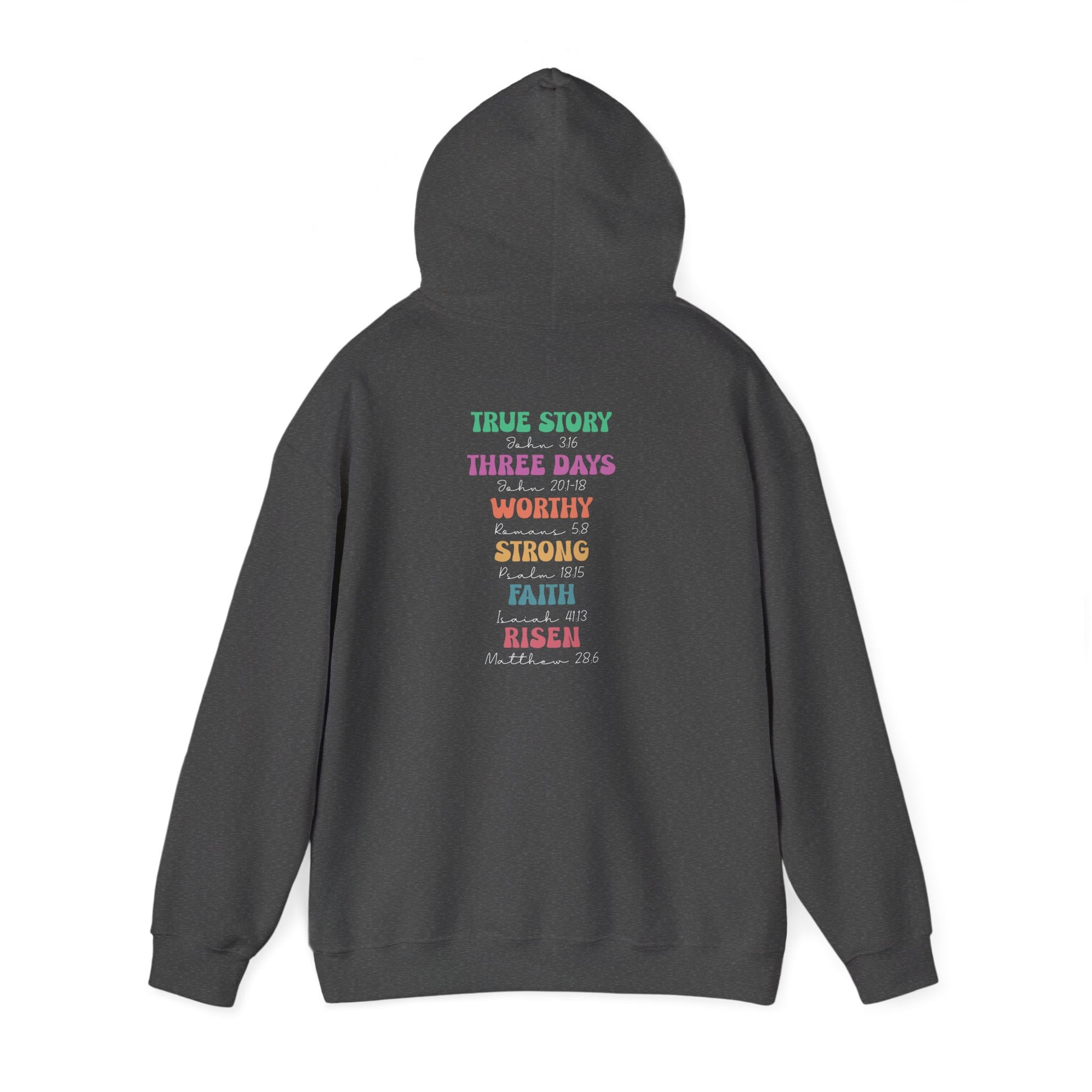 Wear Scripture boldly with the True Story Three Days Worthy Strong Faith Risen T-Shirt. Featuring a colorful word-art design paired with powerful Bible verses, this Christian tee is perfect for believers who want to share their faith through everyday fashion. Great for church, Bible study, or casual wear.