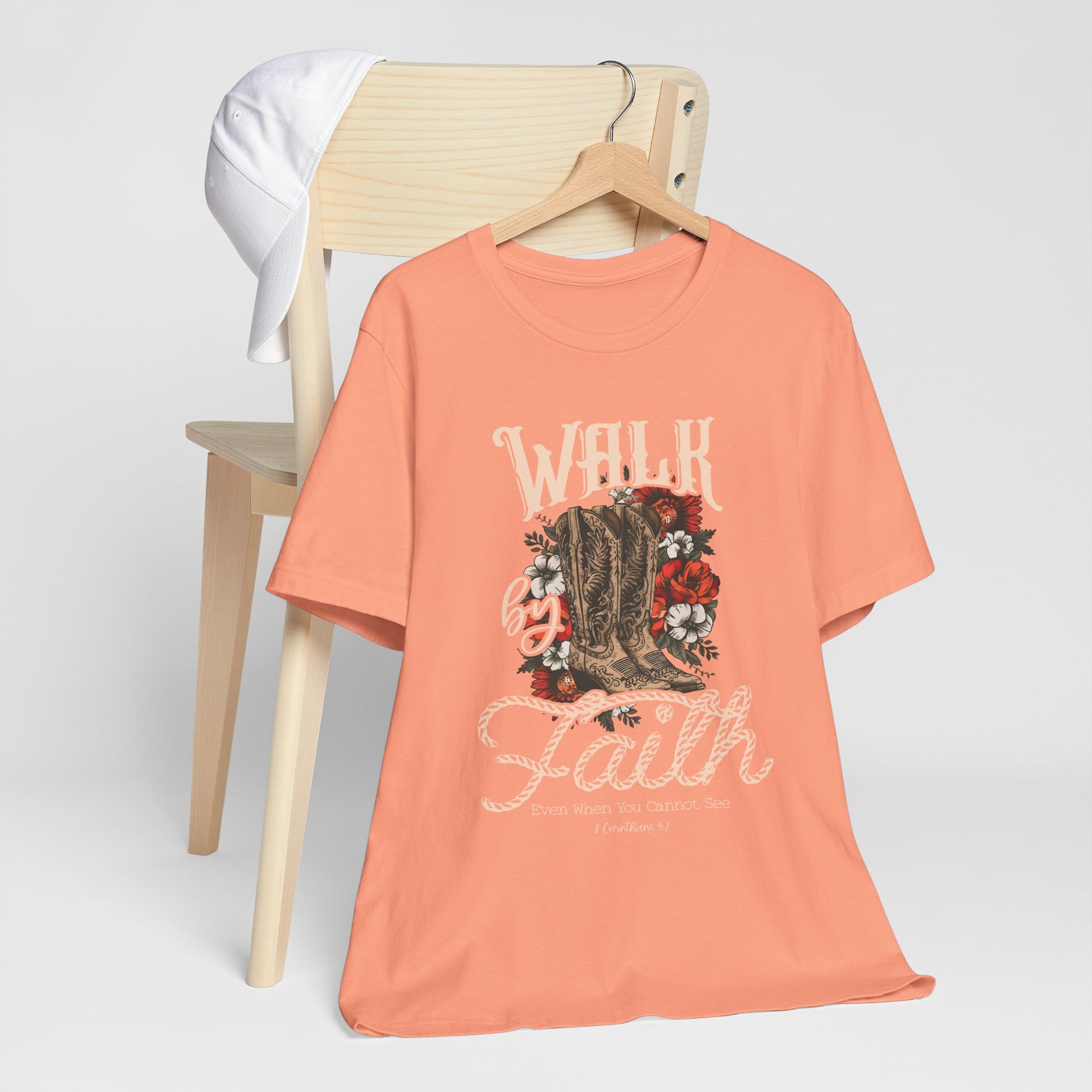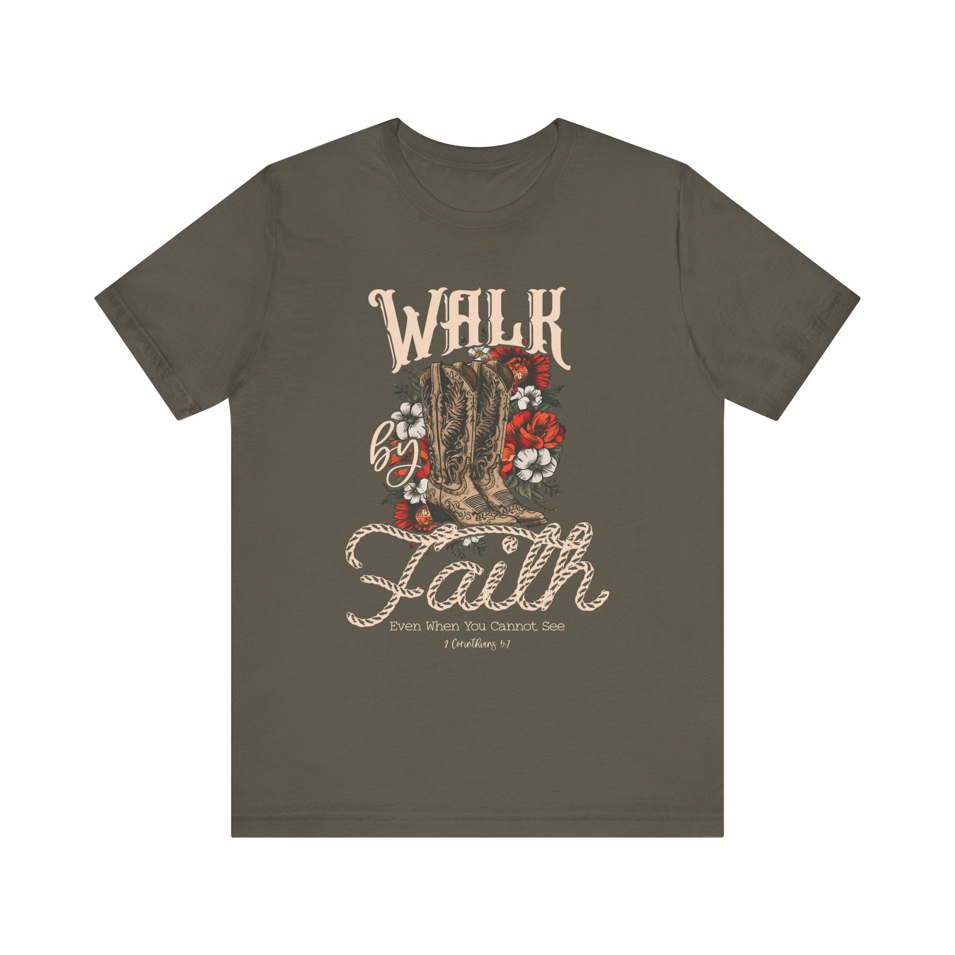 Walk by Faith Shirt – 2 Corinthians 5:7 Christian Jesus Bible Verse Tee