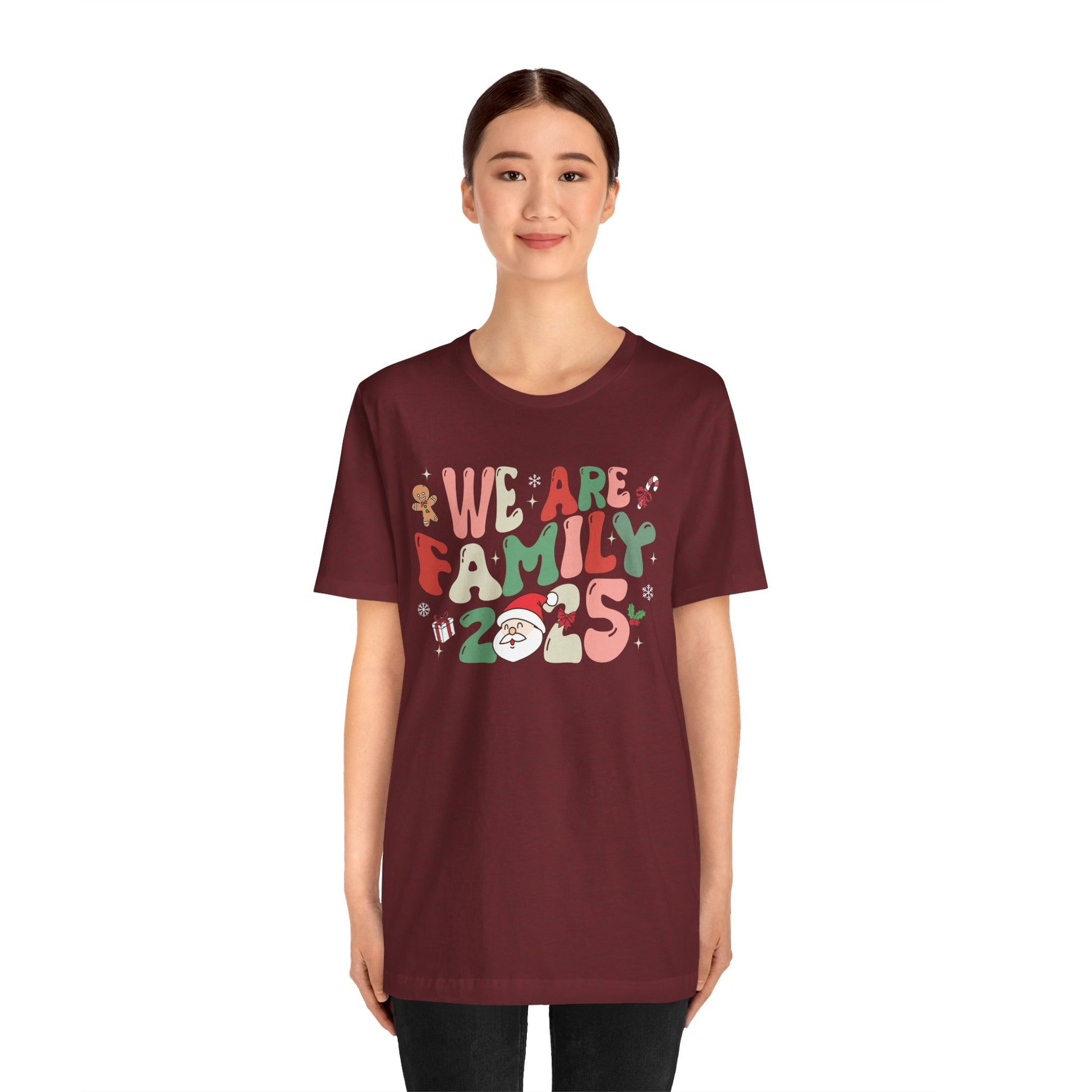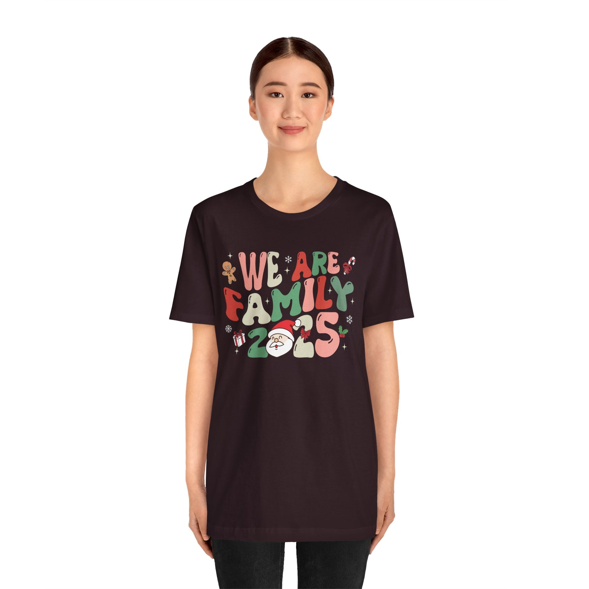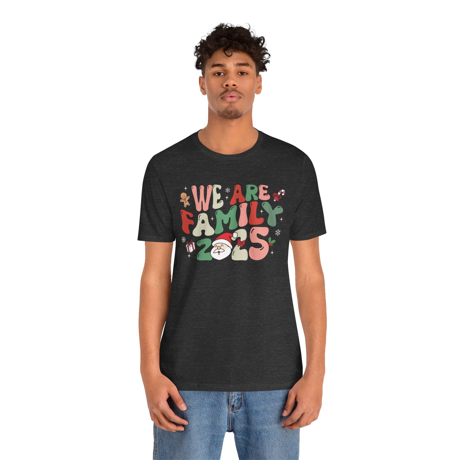 Celebrate love and togetherness with our We Are Family 2025 Shirt. Featuring a festive Santa and Christmas tree design, this matching tee is perfect for family pajama parties, holiday photos, and joyful Christmas gatherings.