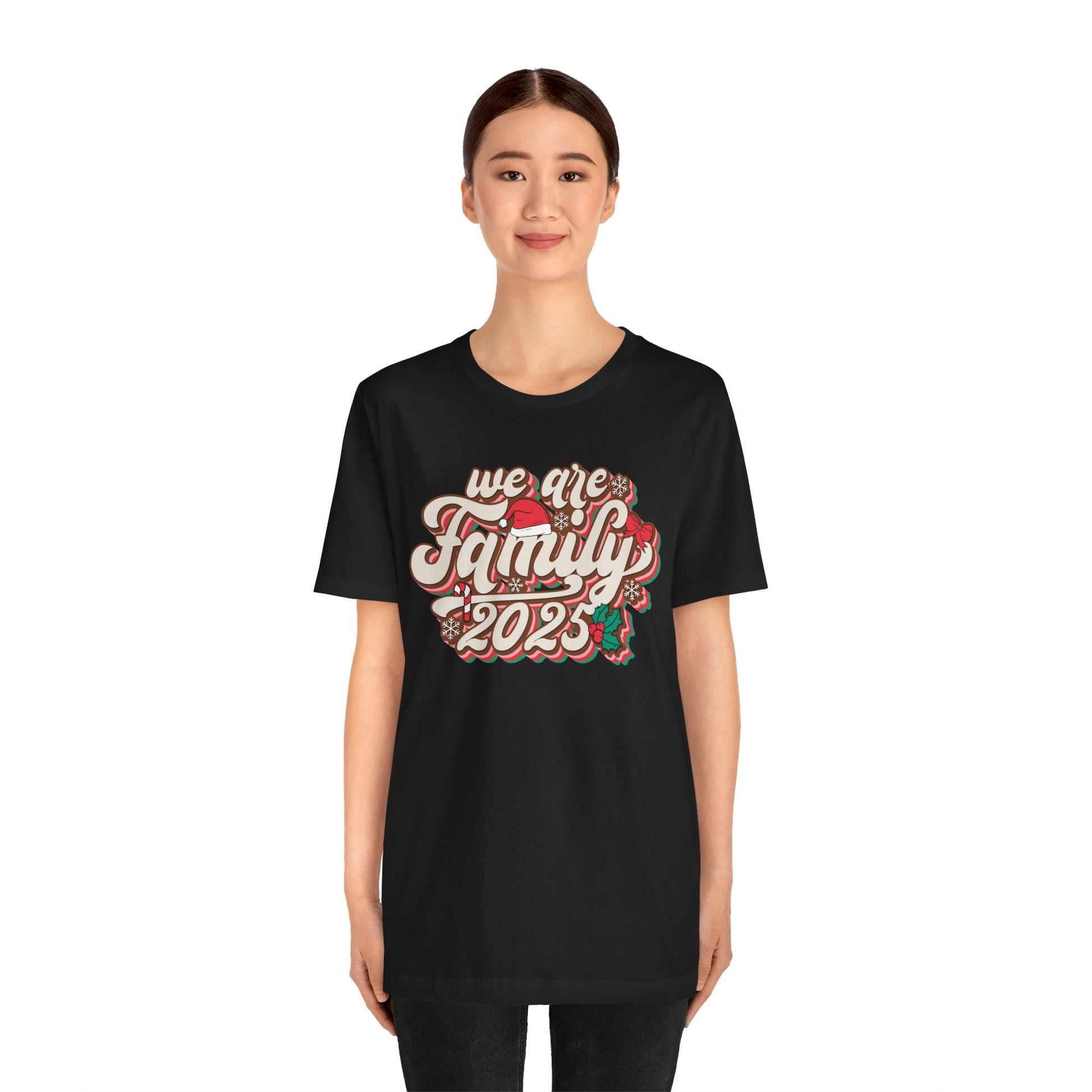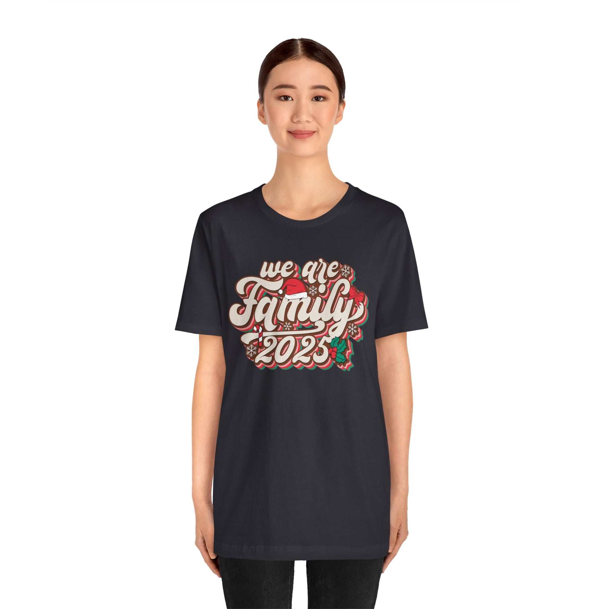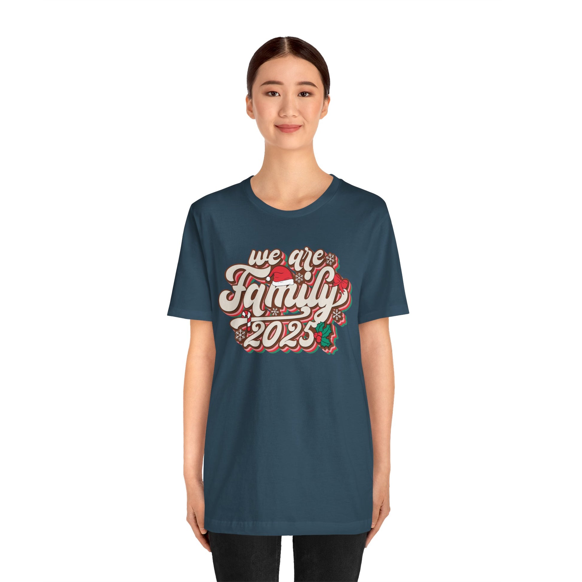 Celebrate unity and joy with our We Are Family Christmas Shirt. Featuring a funky retro 80s groovy design, this festive tee is perfect for matching family outfits, holiday group photos, and cheerful Christmas gatherings.