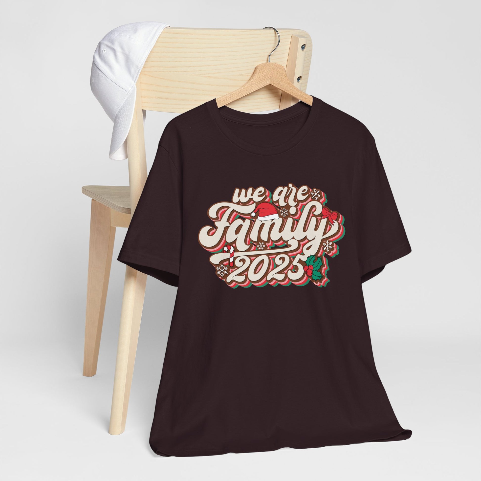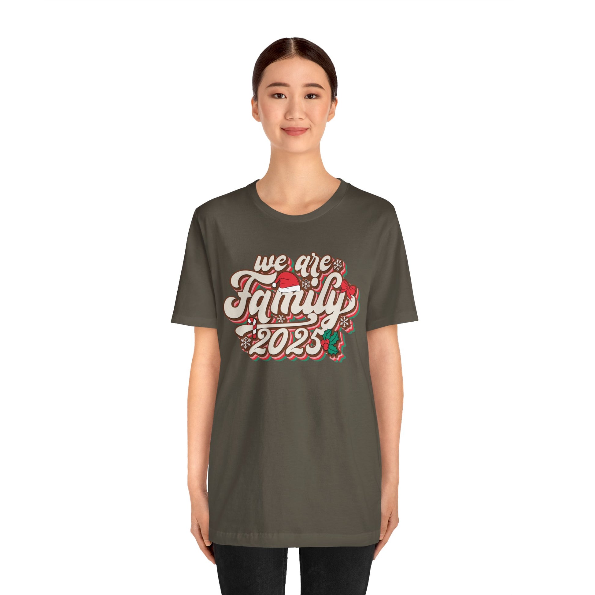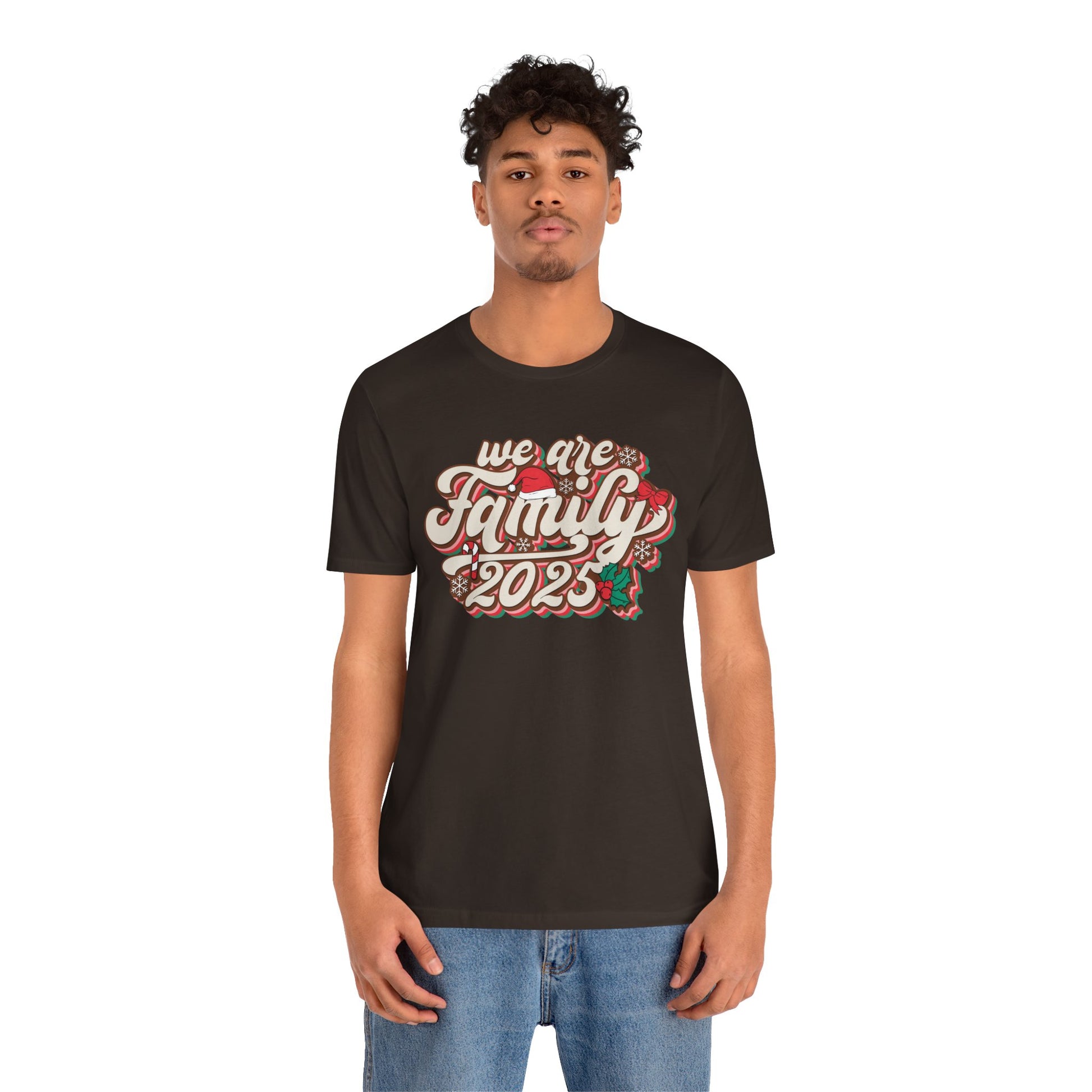 Celebrate unity and joy with our We Are Family Christmas Shirt. Featuring a funky retro 80s groovy design, this festive tee is perfect for matching family outfits, holiday group photos, and cheerful Christmas gatherings.