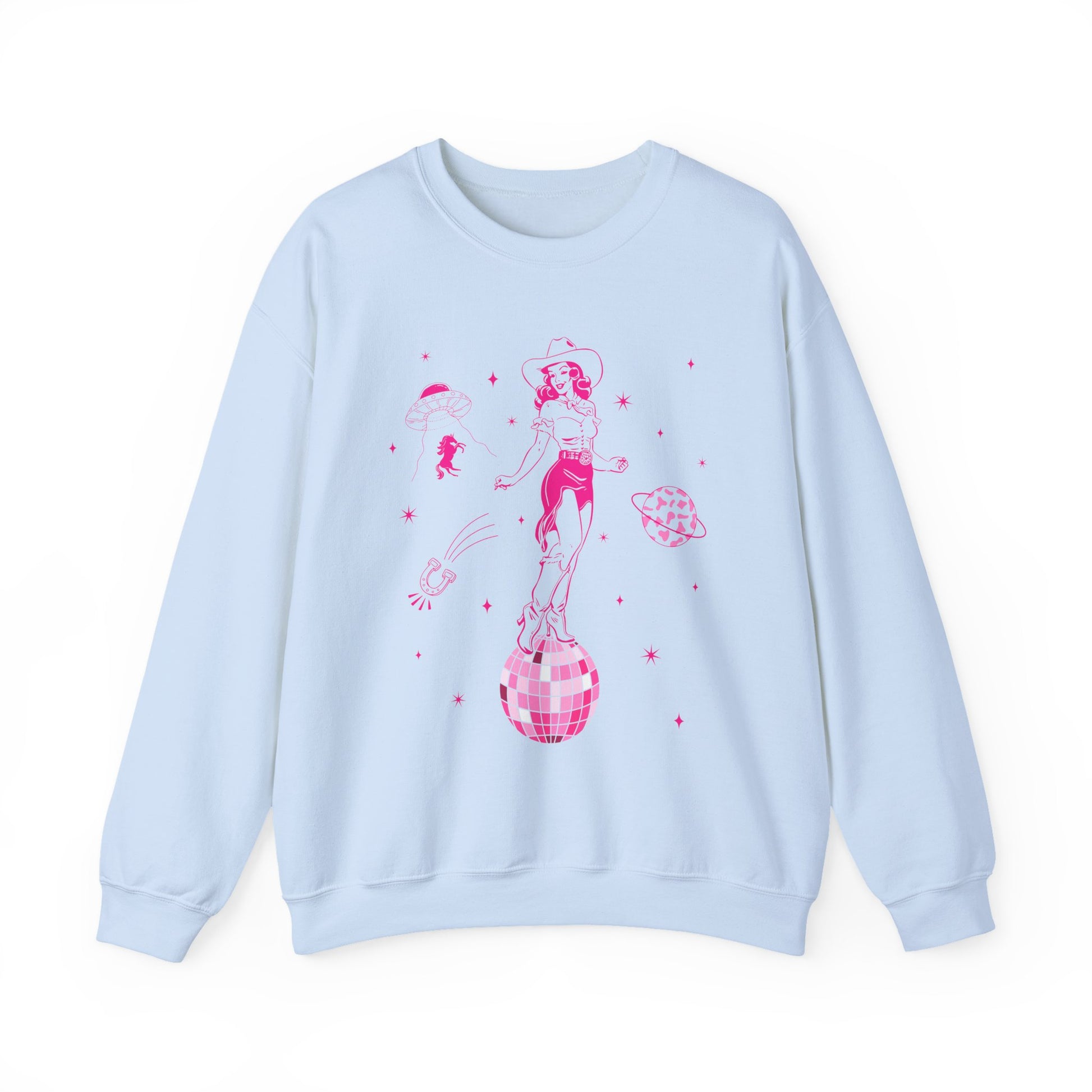 Made from soft, warm fabric with a relaxed unisex fit, it’s designed for cozy comfort and layering. Whether you’re celebrating with friends, enjoying country music, or showing off your disco cowgirl style, this sweatshirt keeps your look fun, trendy, and Western-inspired.