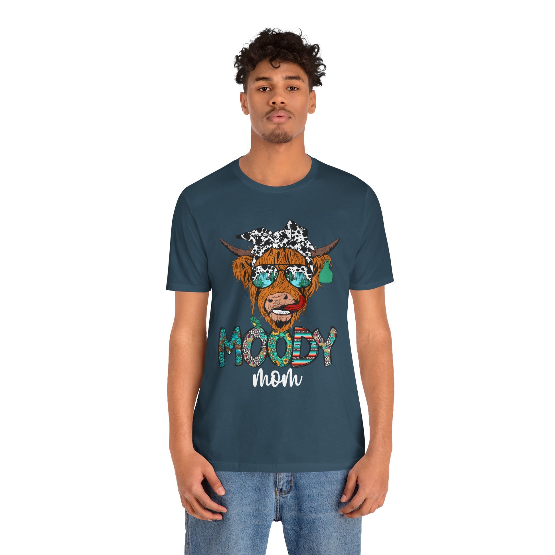 Bring the ranch vibes to your wardrobe with our Western Moody Mom Shirt. Featuring a cool Highland cow in sunglasses, this country-inspired tee is perfect for moms who love Western style, farm life, and a touch of humor. A great everyday outfit or custom gift for cow-loving families.