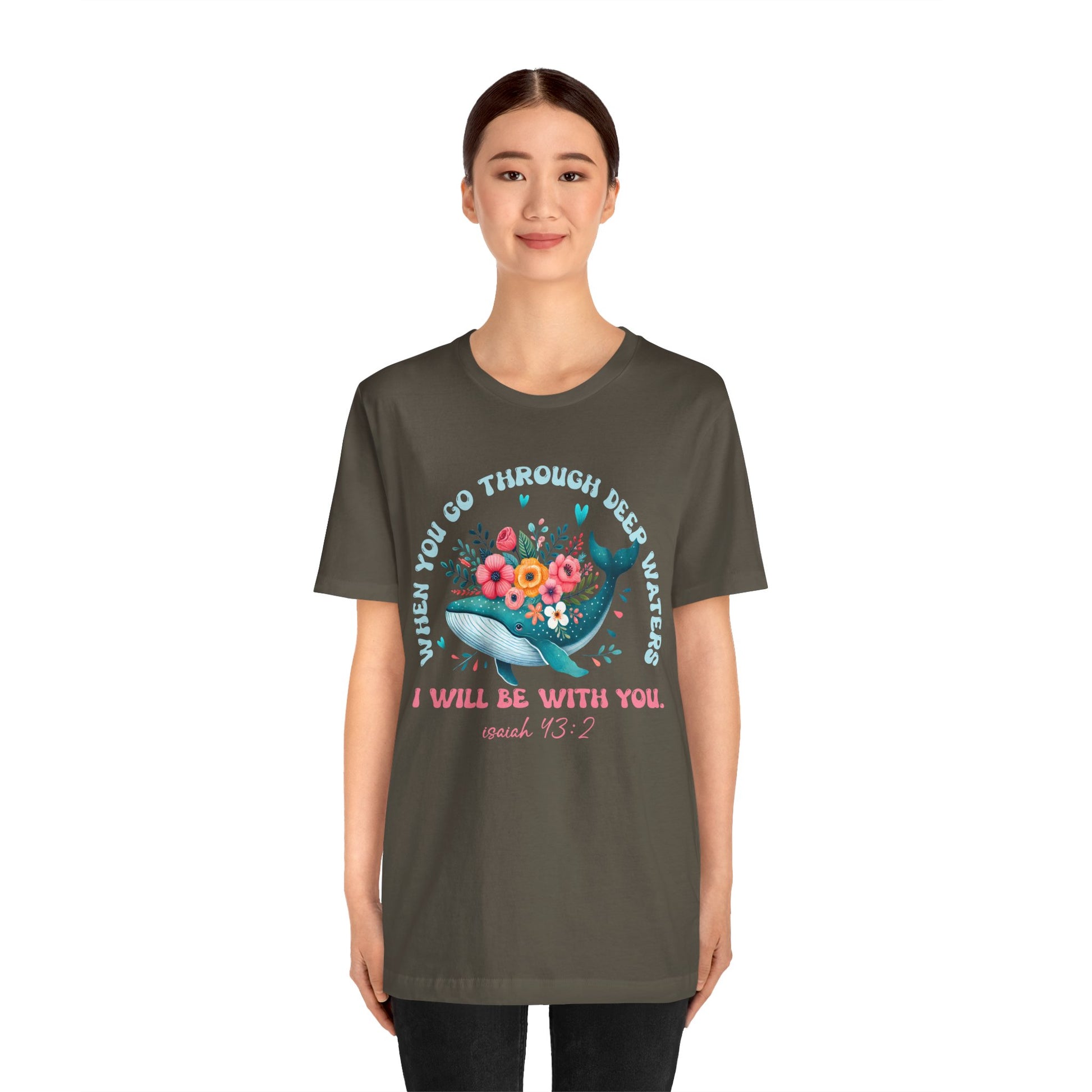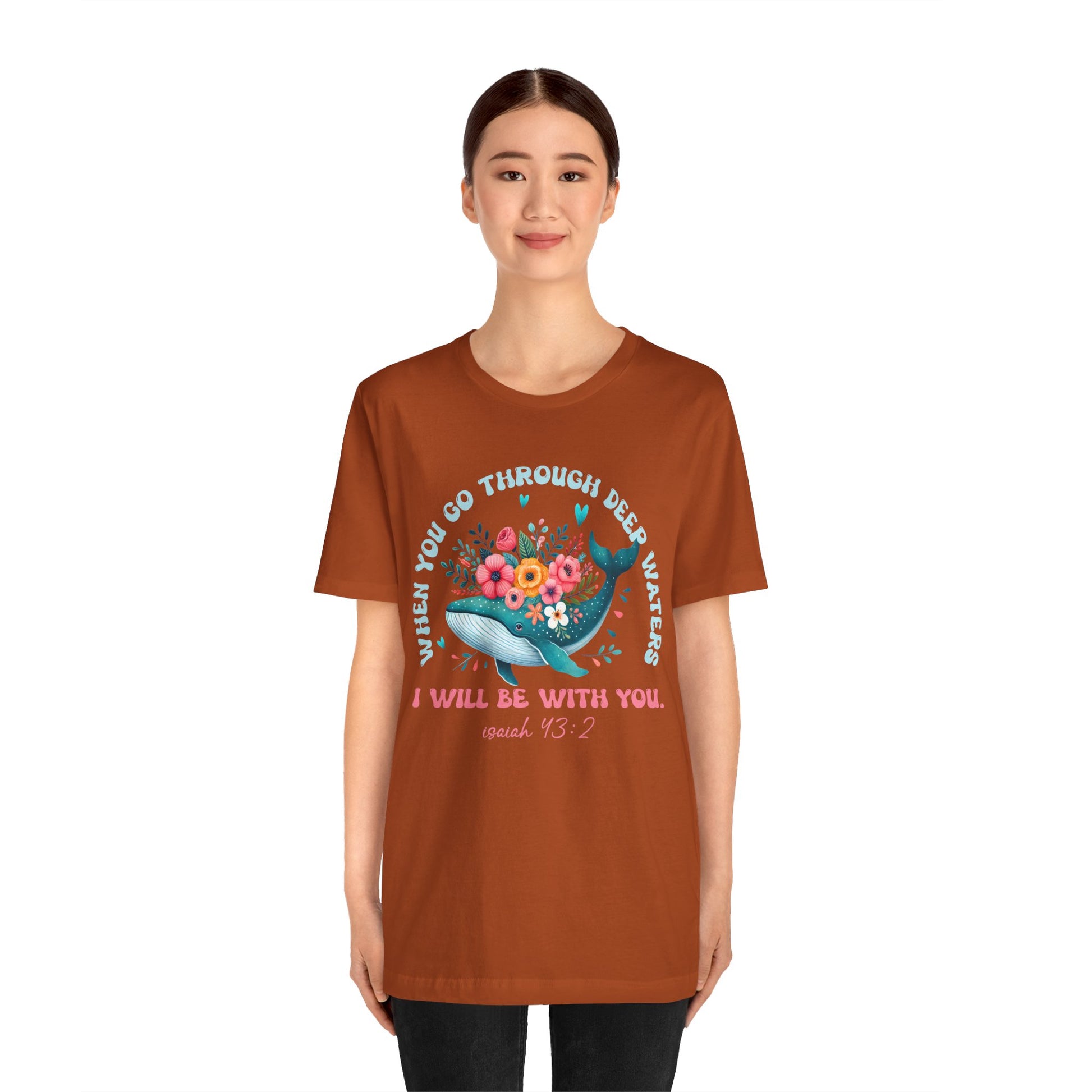 When You Go Through Deep Waters Shirt – Isaiah 43:2 Groovy Christian Faith Tee
