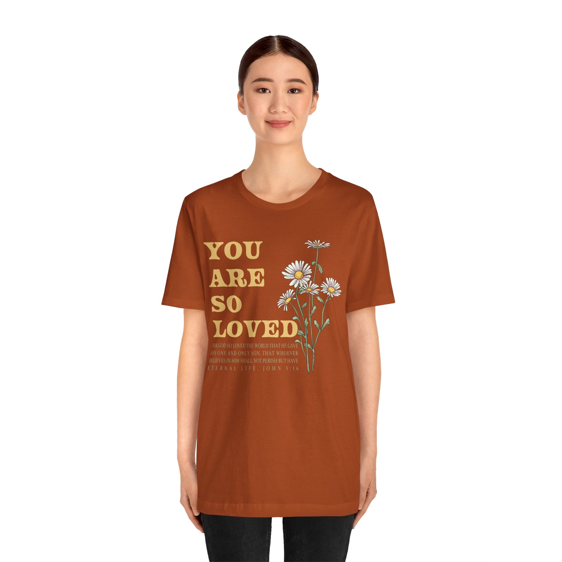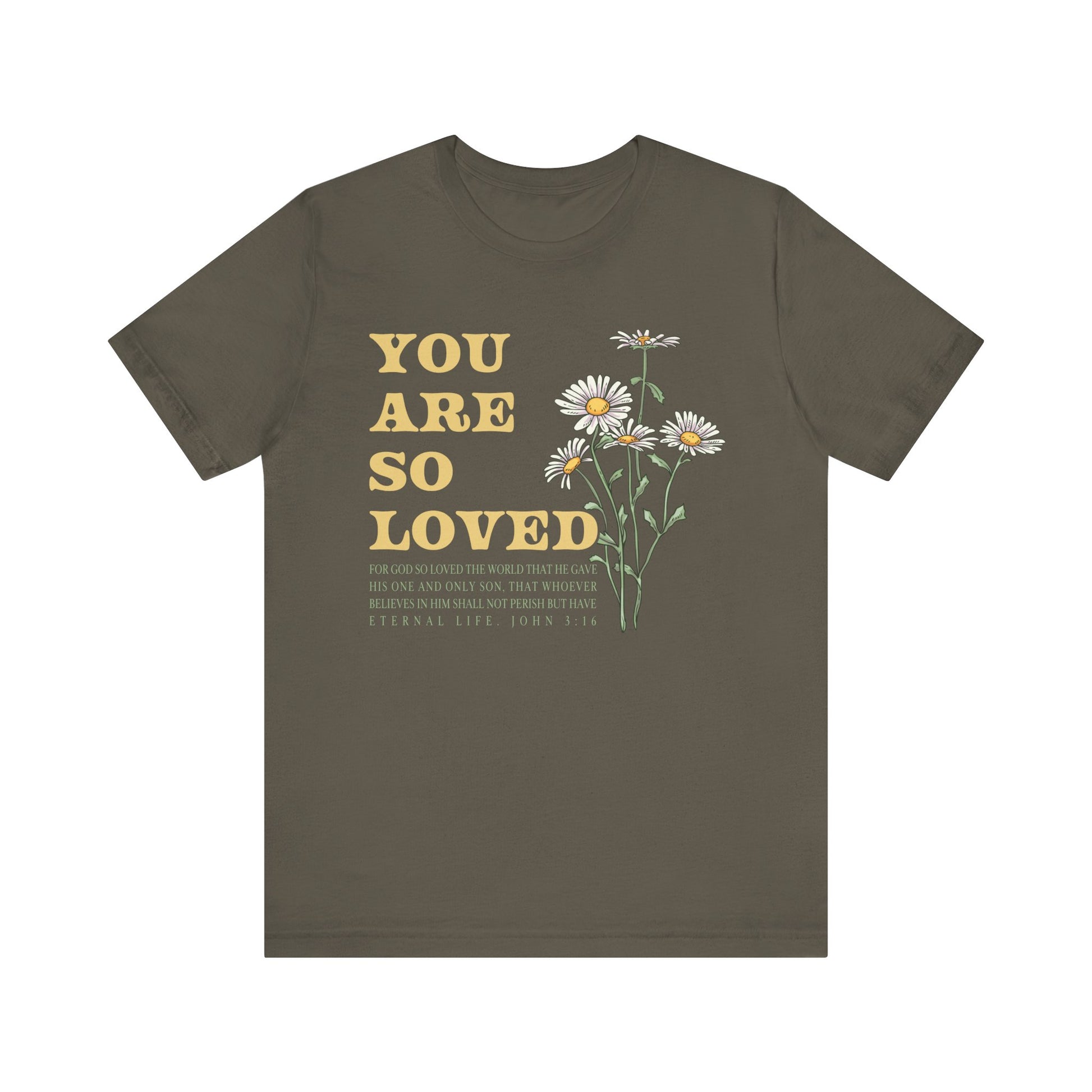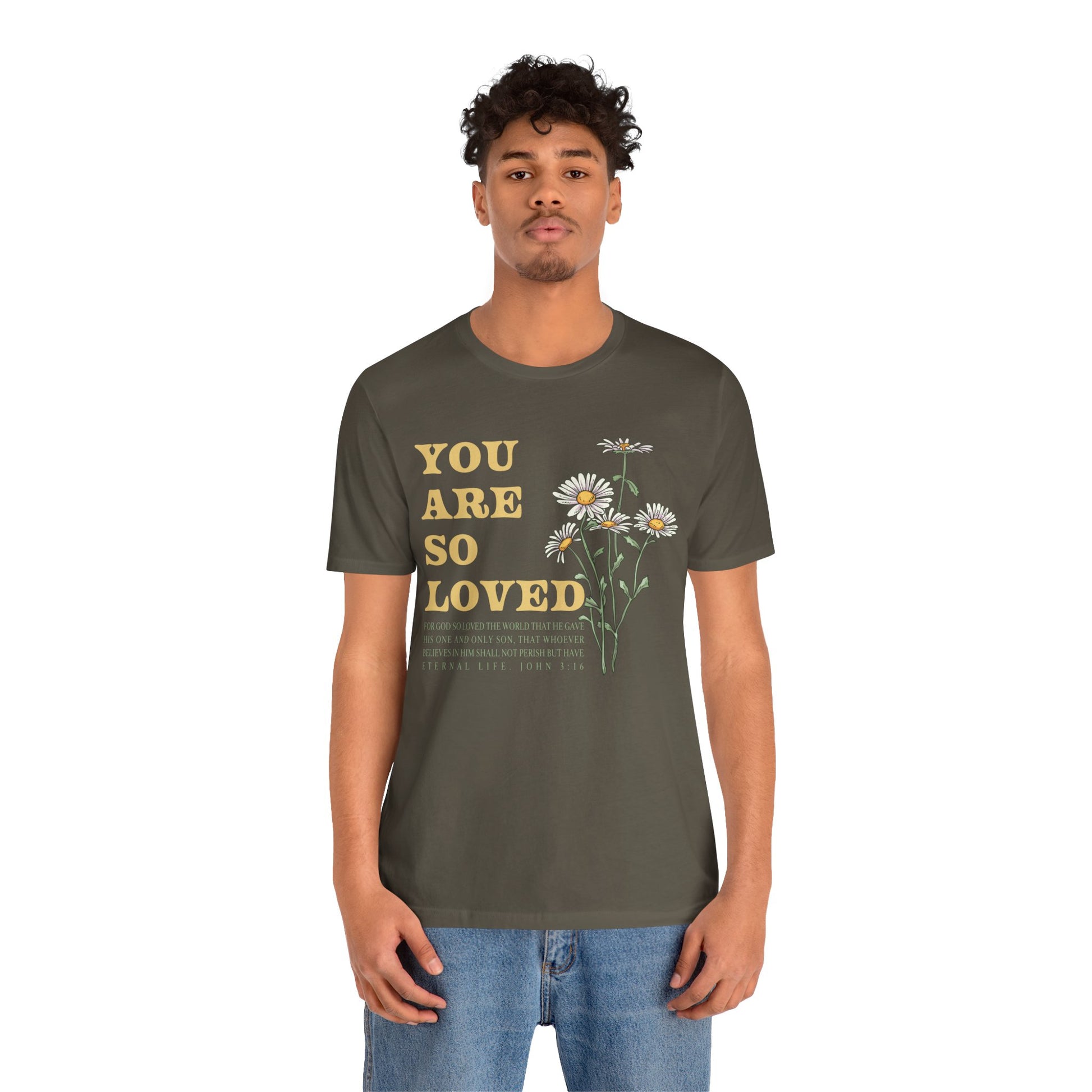 You Are So Loved Shirt – John 3:16 Daisy Flowers Christian Jesus Tee